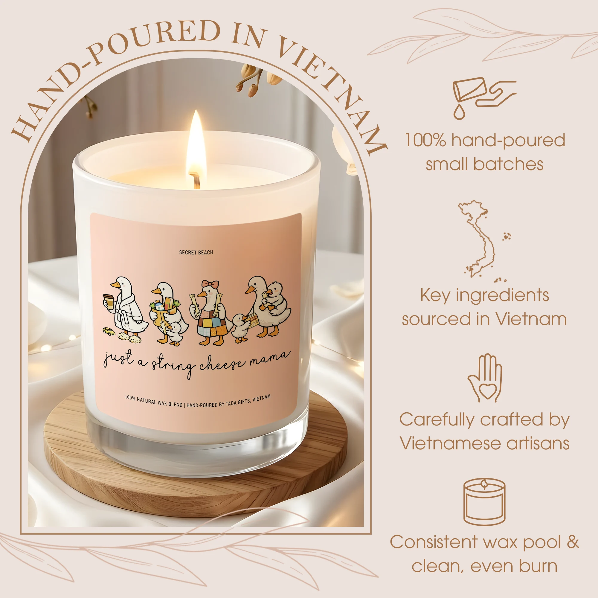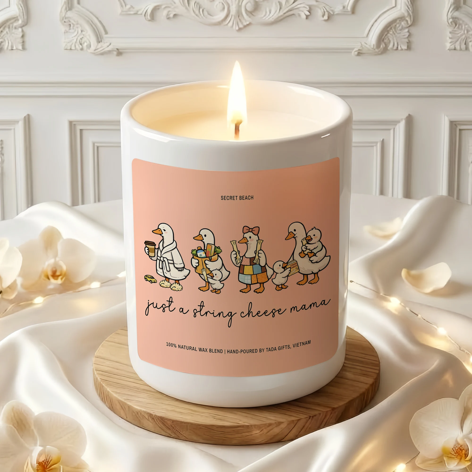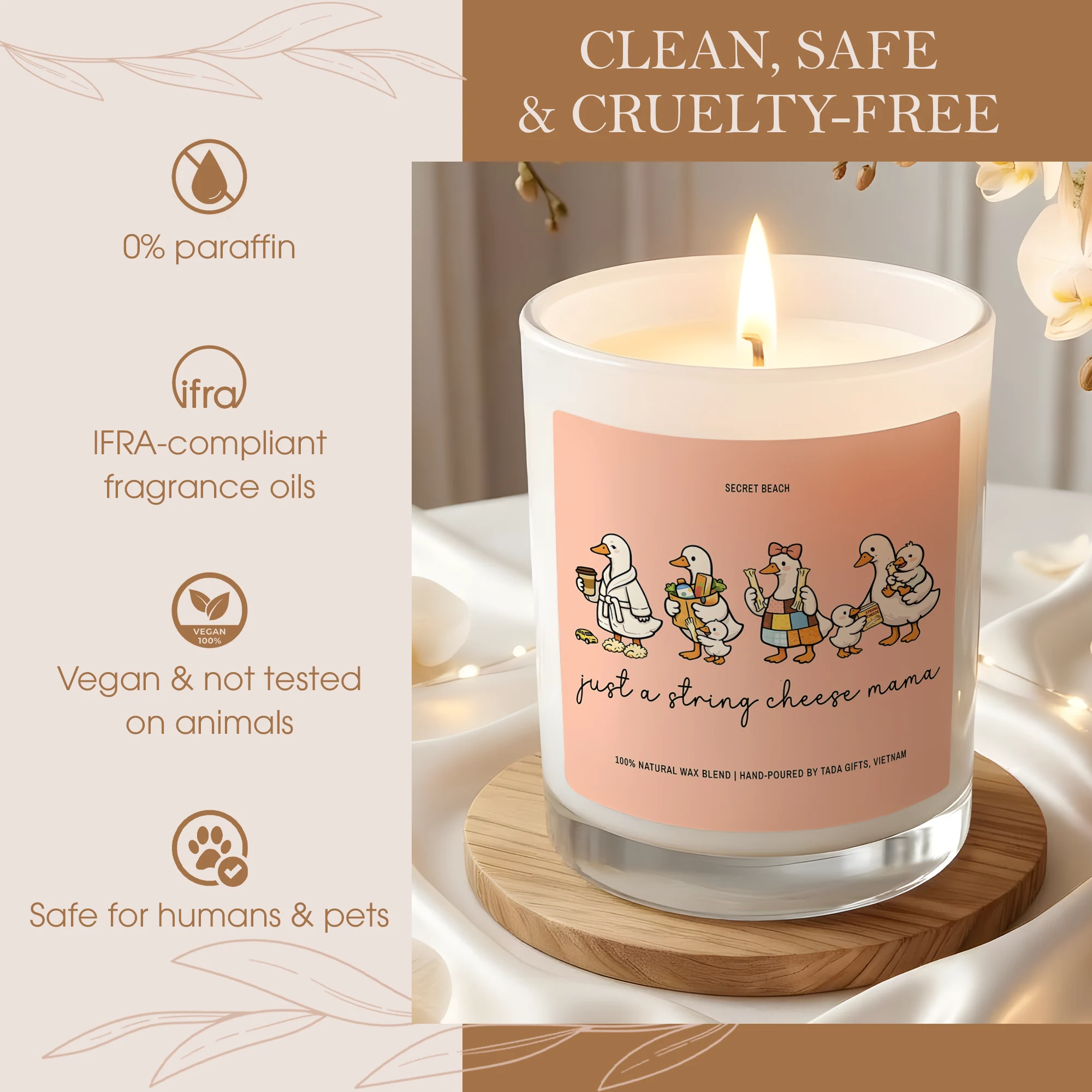 Just a String Cheese Mama Candle – Cute Duck Aesthetic Gift for Mom – Coquette Style Mama Present – Funny Motherhood Candle – Mother’s Day Gift for Her – New Mom Appreciation – Handpoured Soy Wax Decor