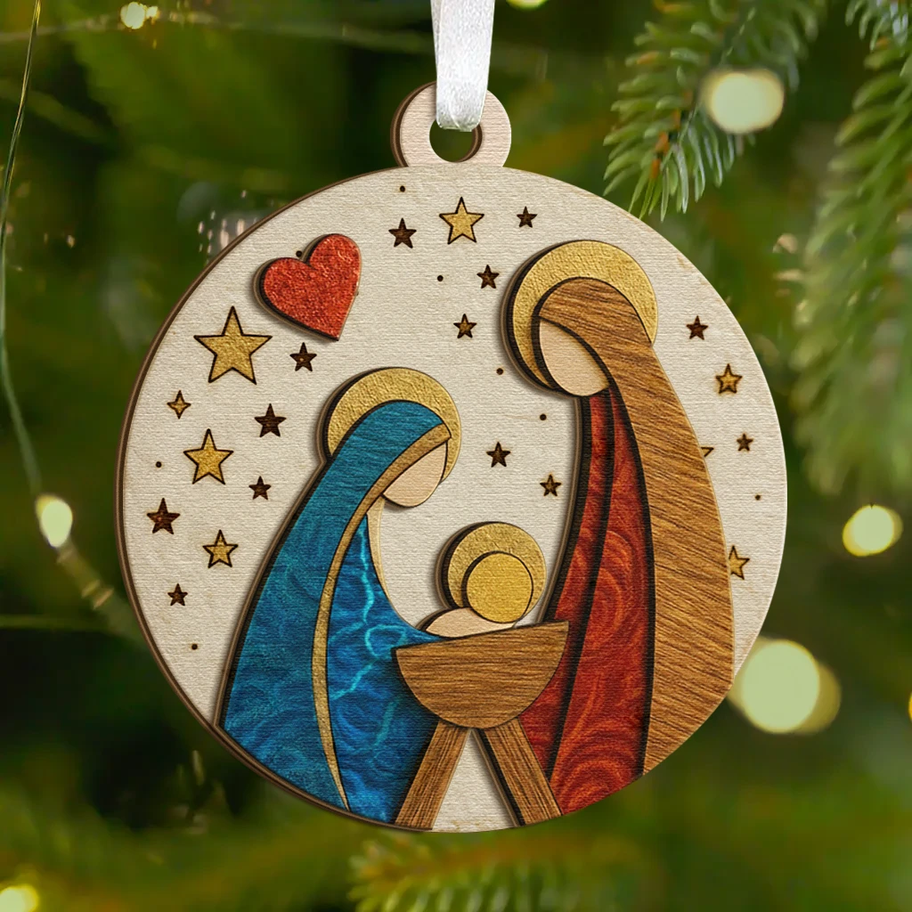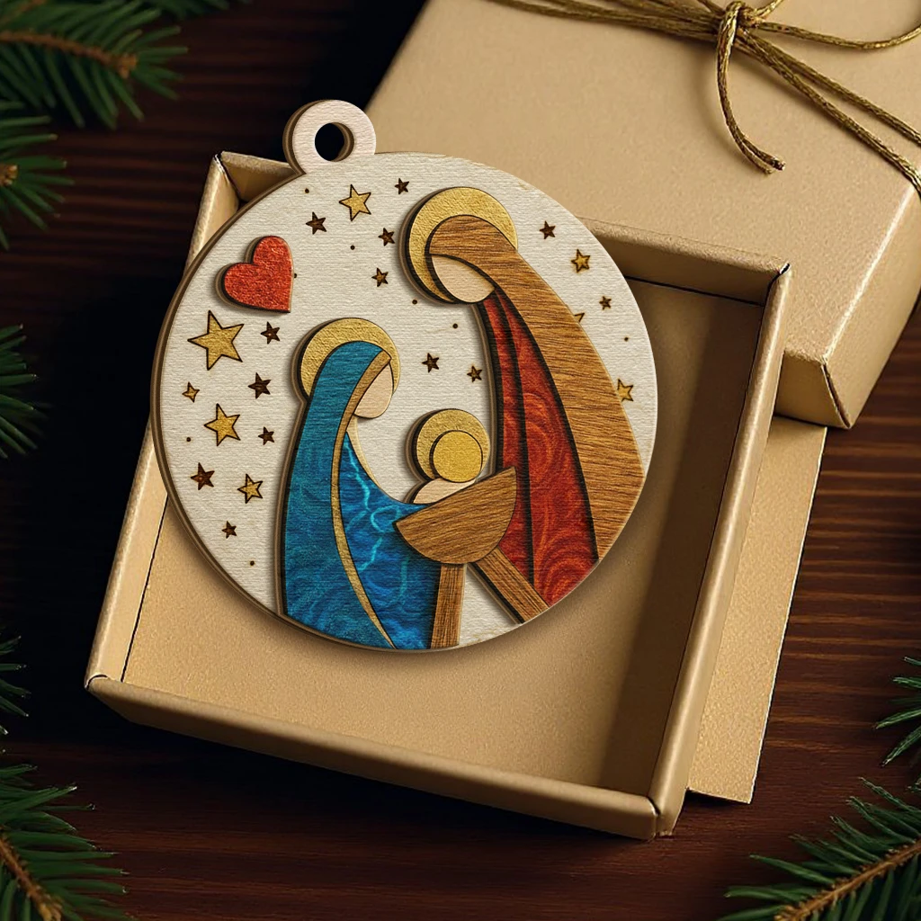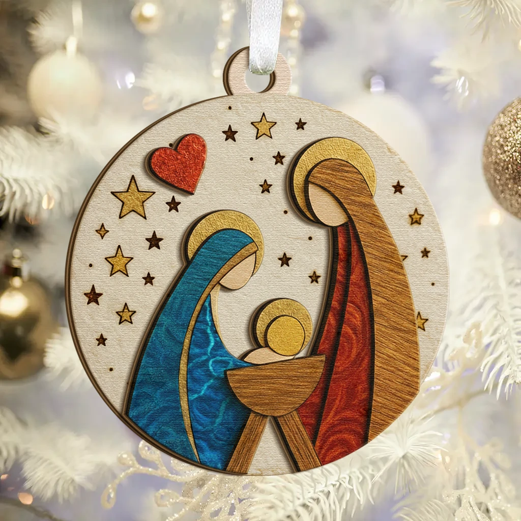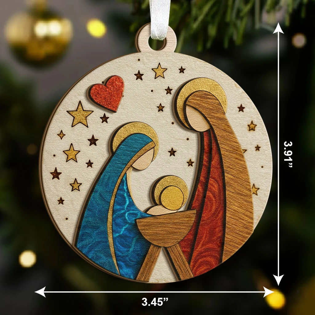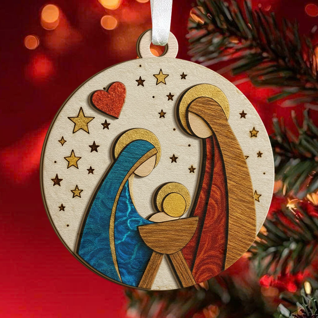 Layered Wood Nativity Scene Ornament | Artistic Handmade Christian Keepsake Honoring Faith, Family, and the Spirit of Christmas