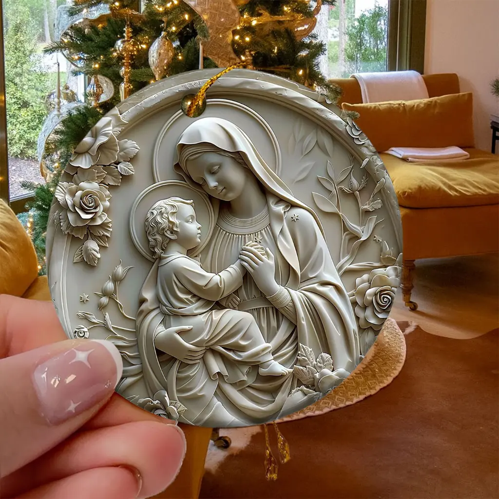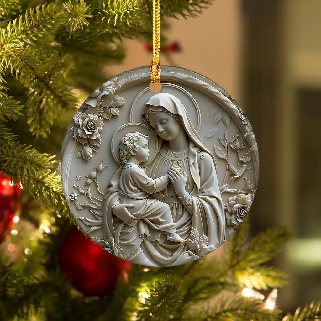 Madonna and Child Ornament | Catholic Christmas Gift, Virgin Mary Floral Ceramic, Religious Keepsake for Her