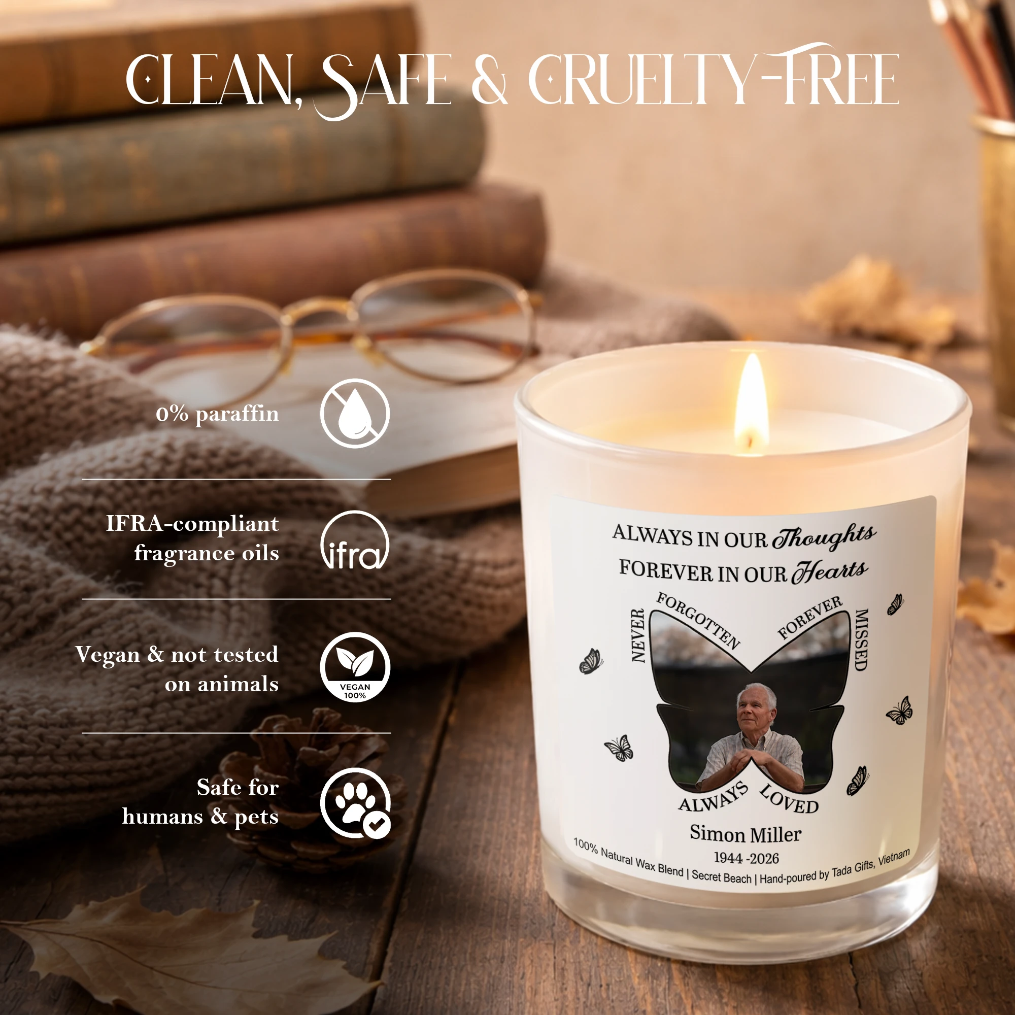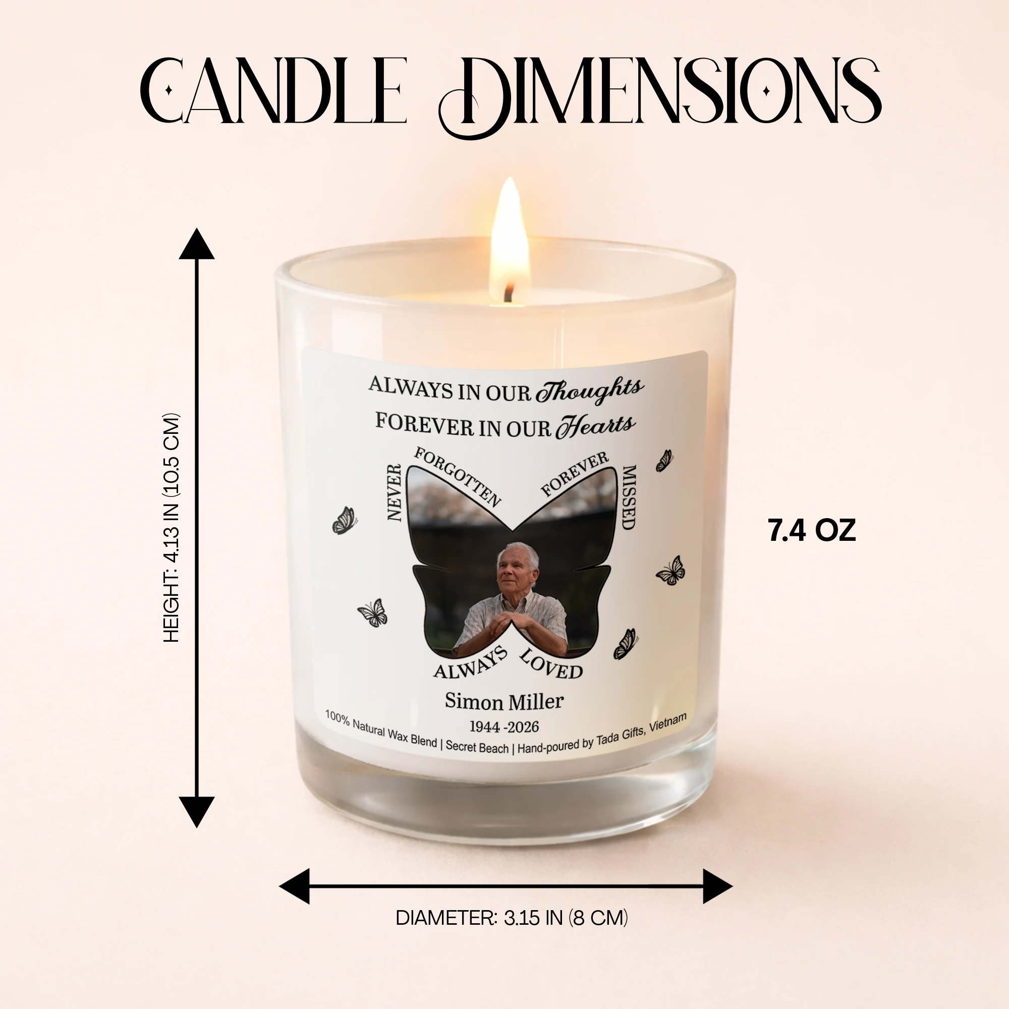 Memorial Candle Personalized Photo,Sympathy Gift,In Loving Memory Candle,Remembrance Gift Loss of Loved One,Bereavement Gift,Funeral Gift