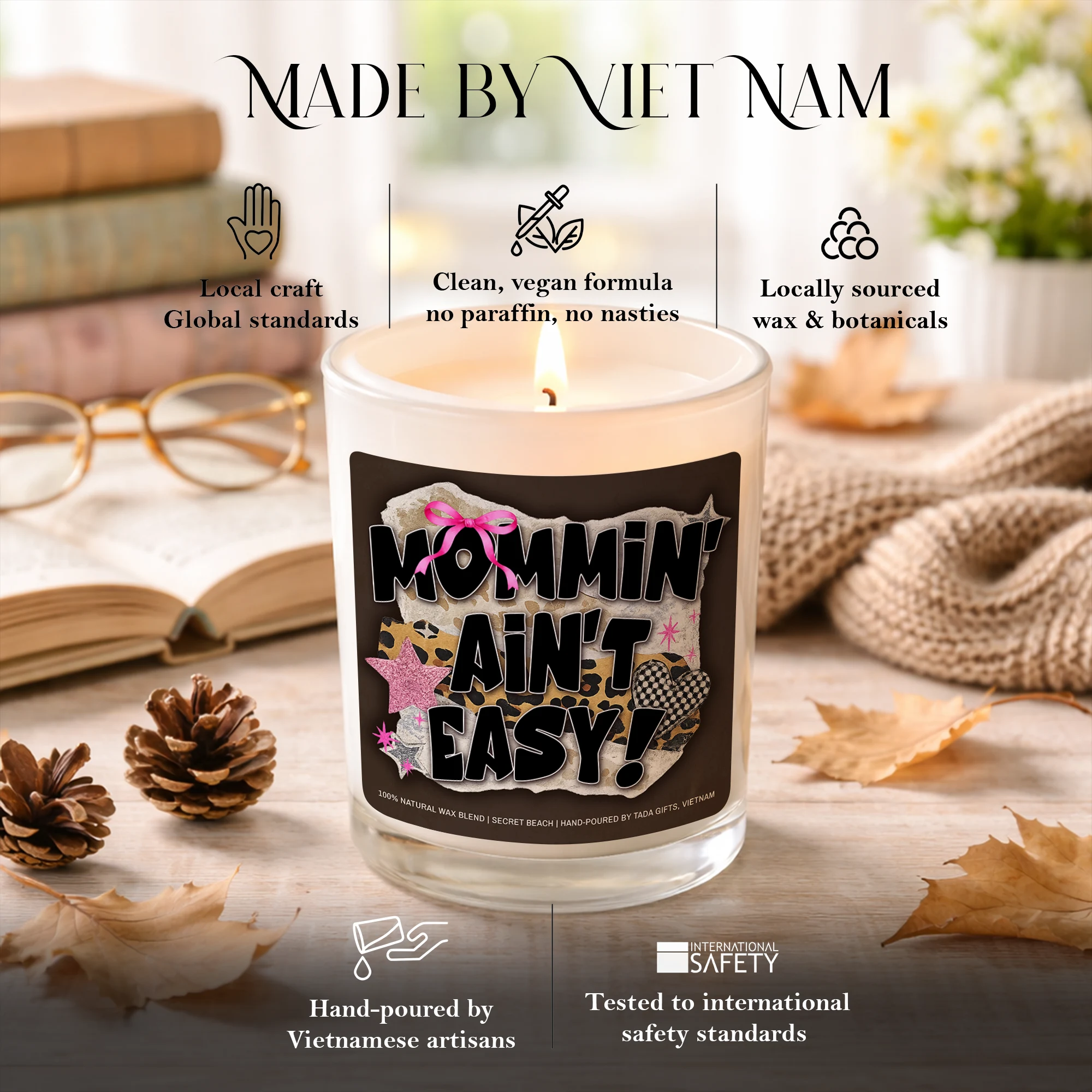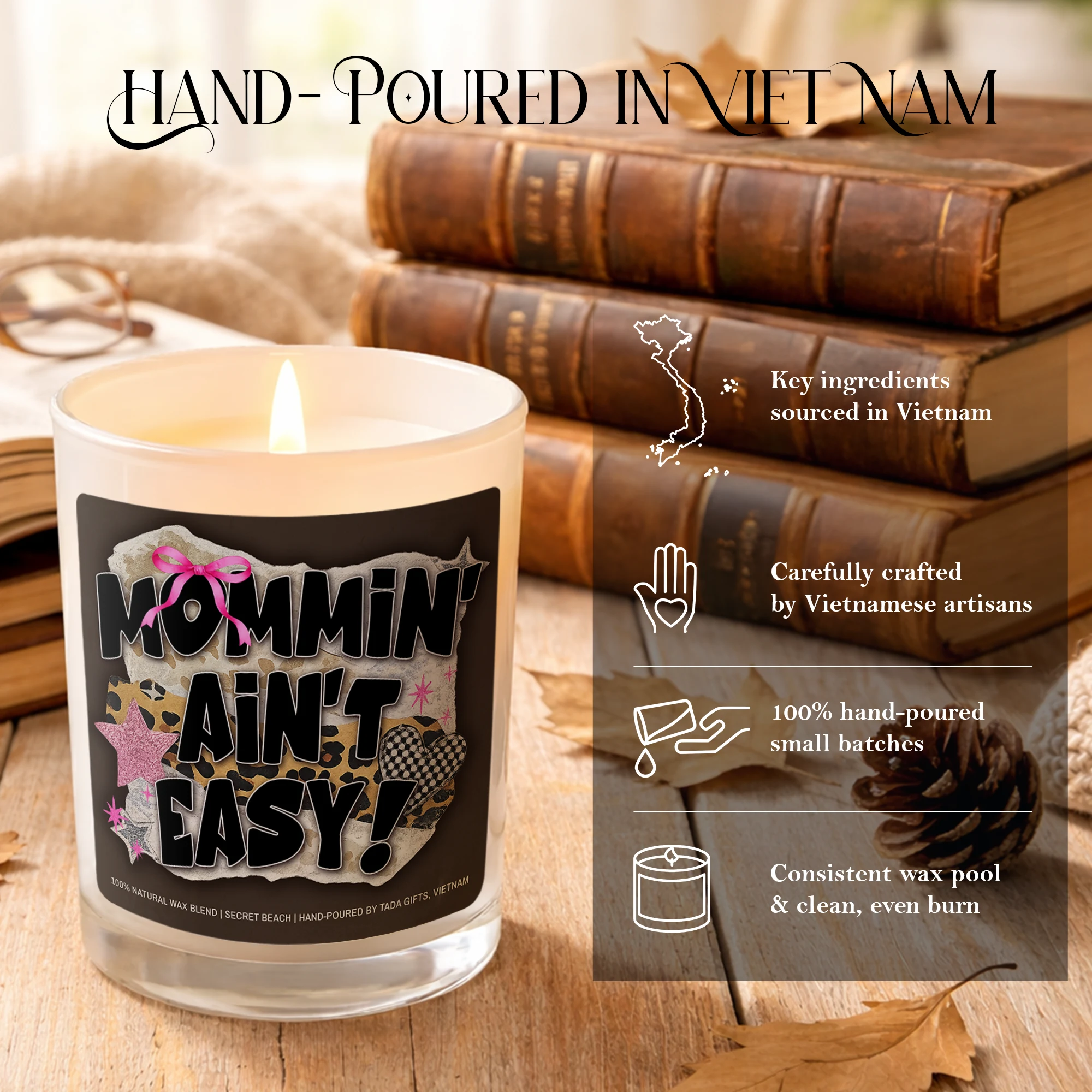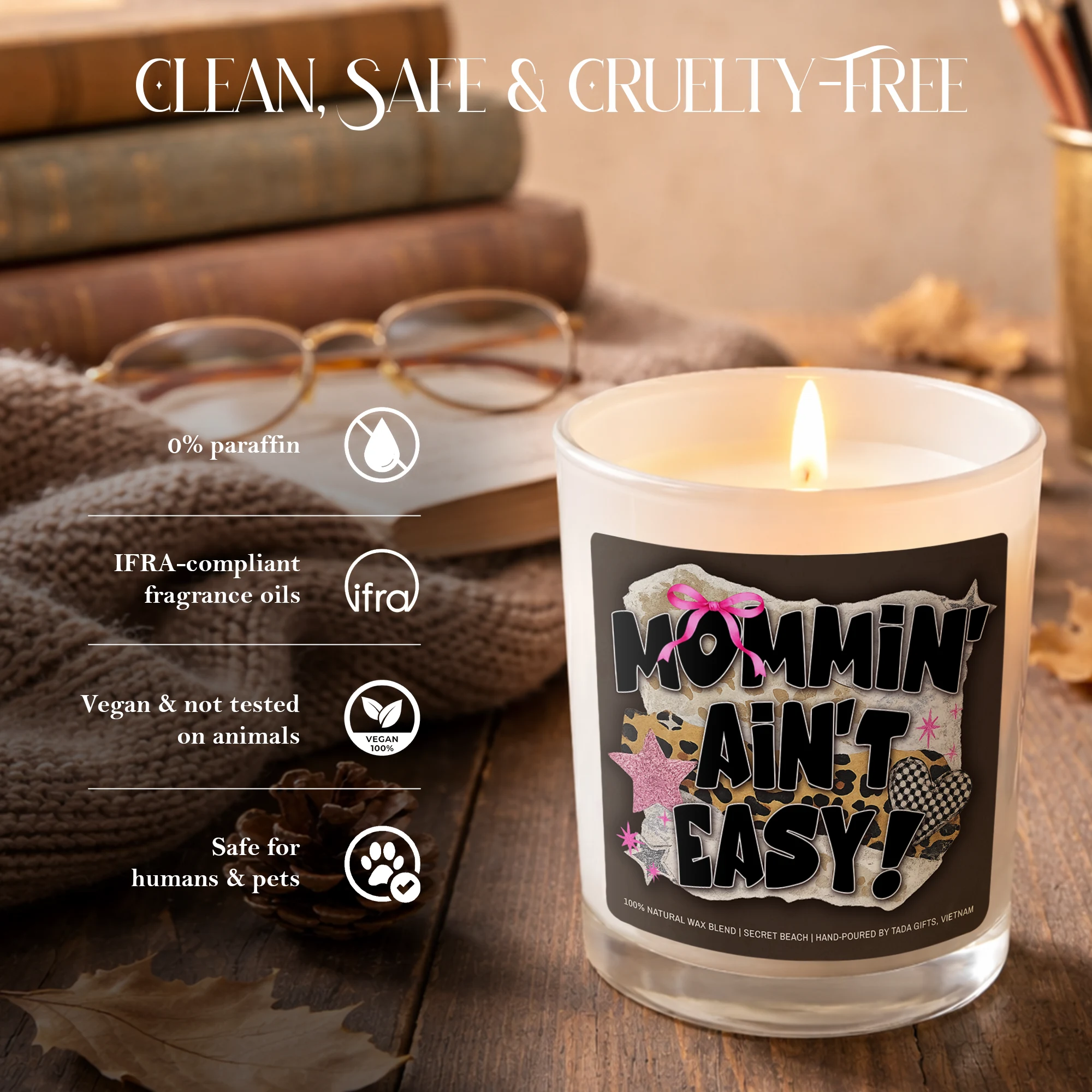 Mommin Ain’t Easy Candle Gift for Mom, Funny Mom Candle, Mother’s Day Gift, New Mom Gift, Cozy Scented Candle, Vegan Soy Wax