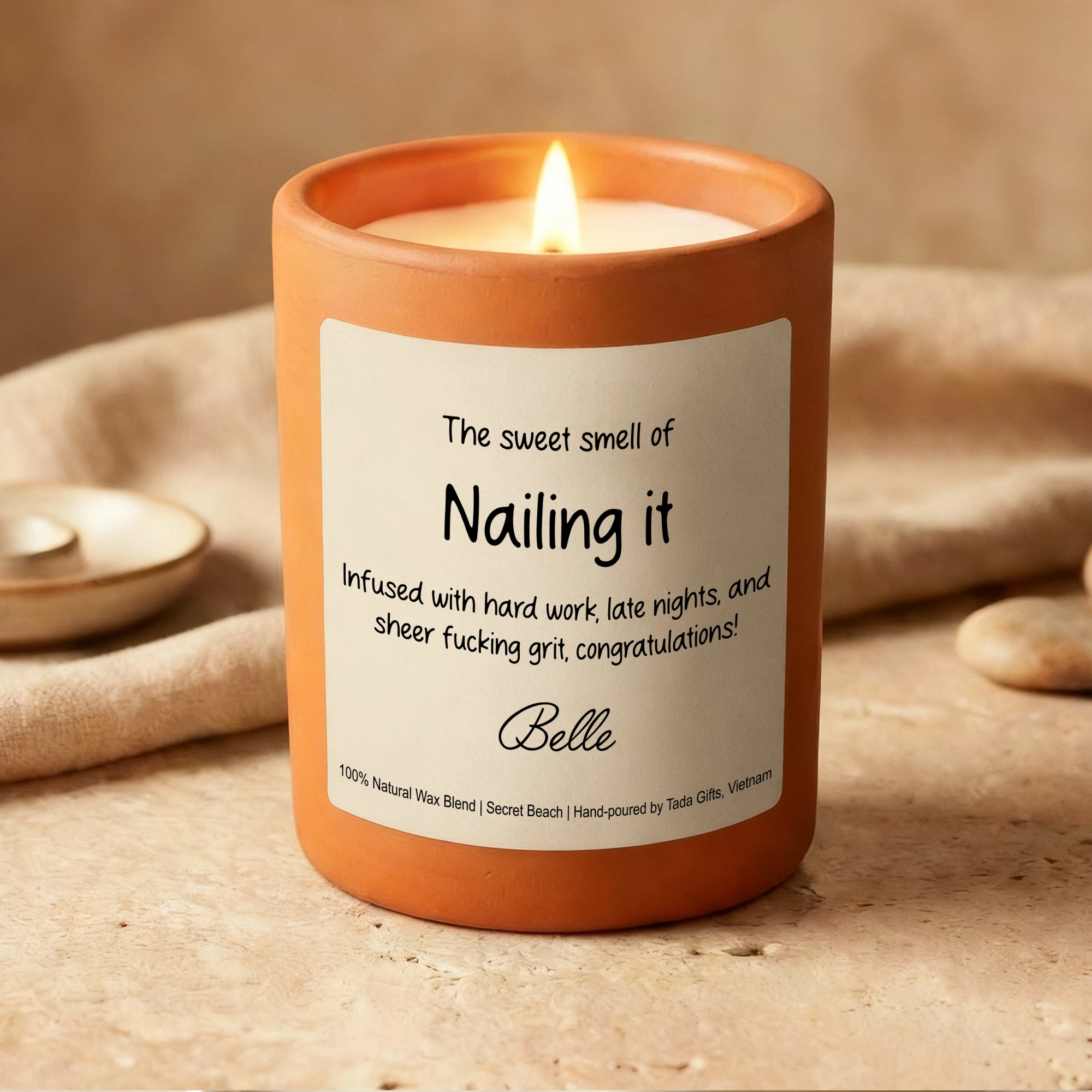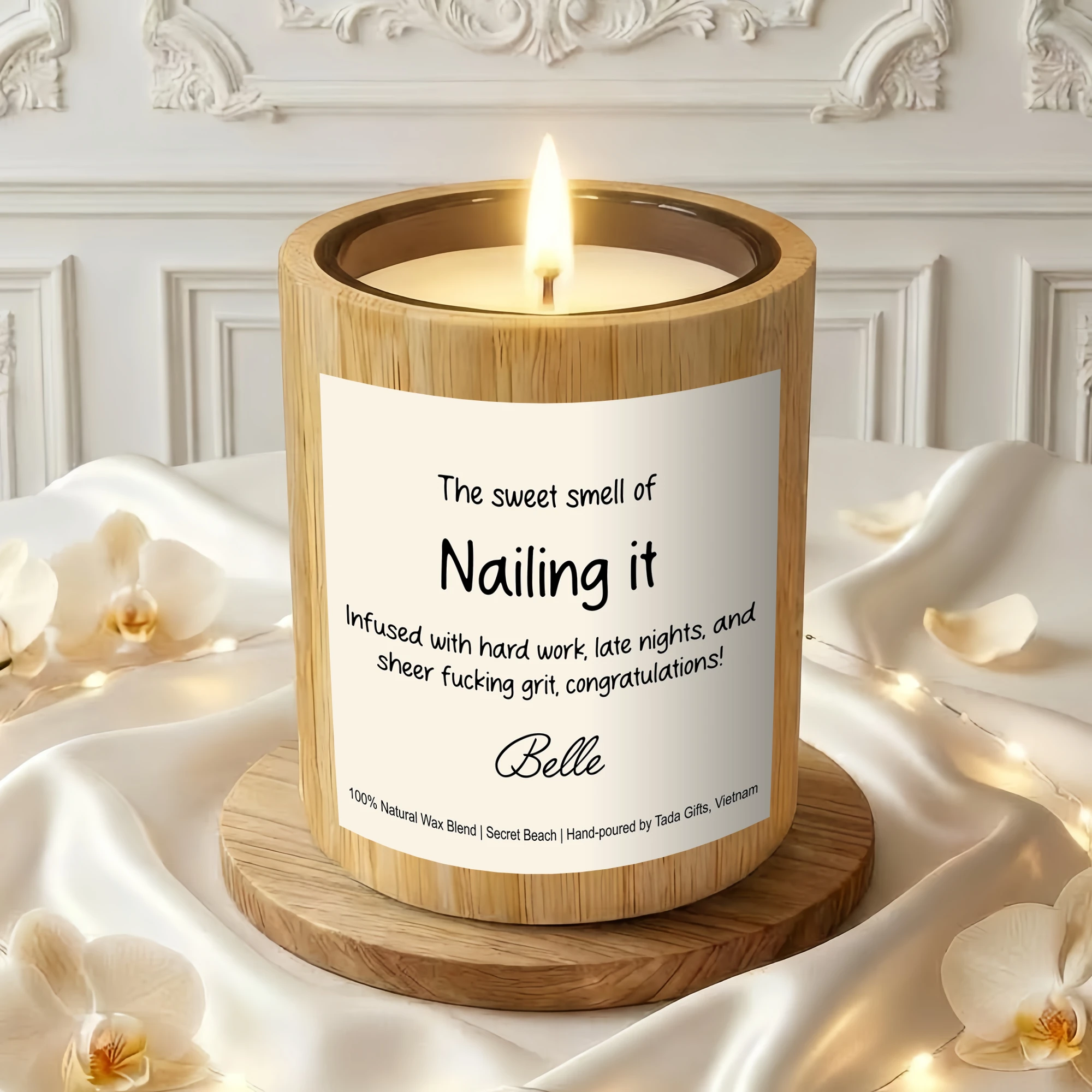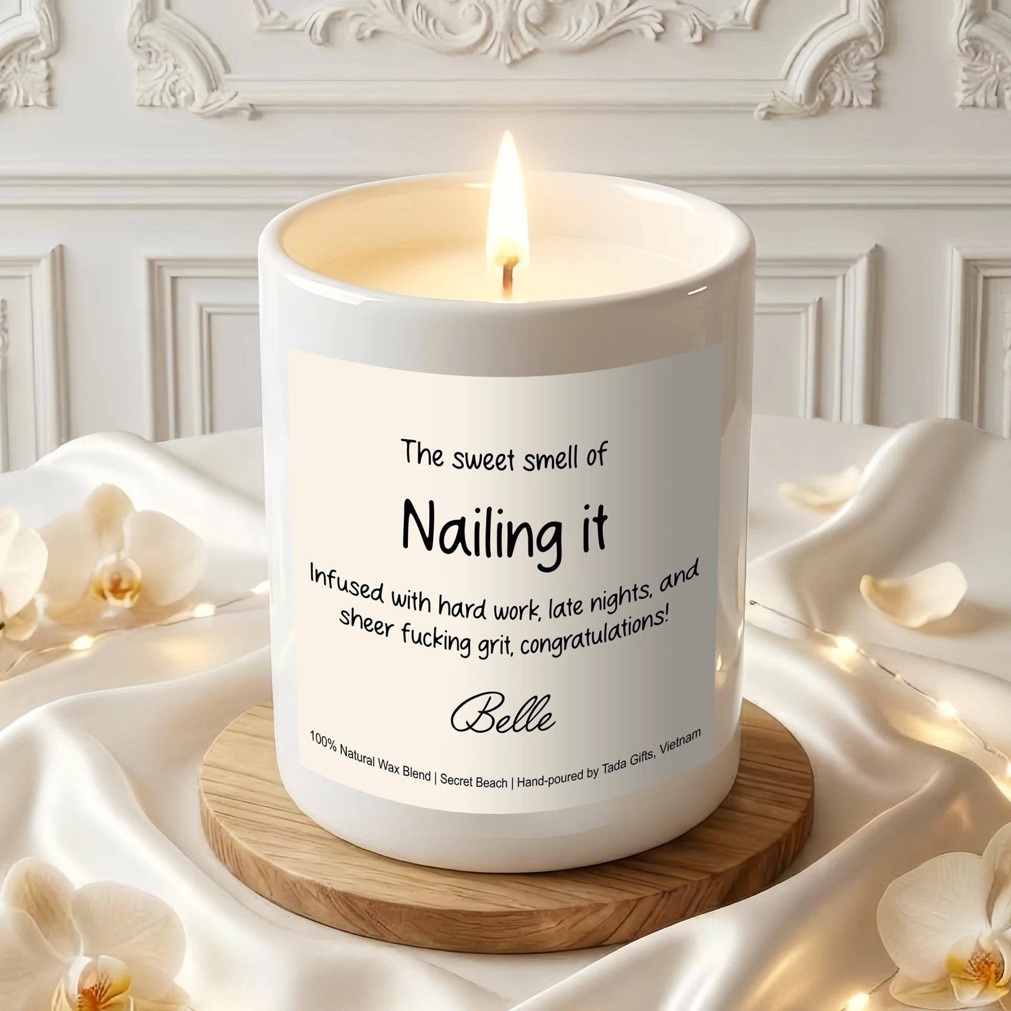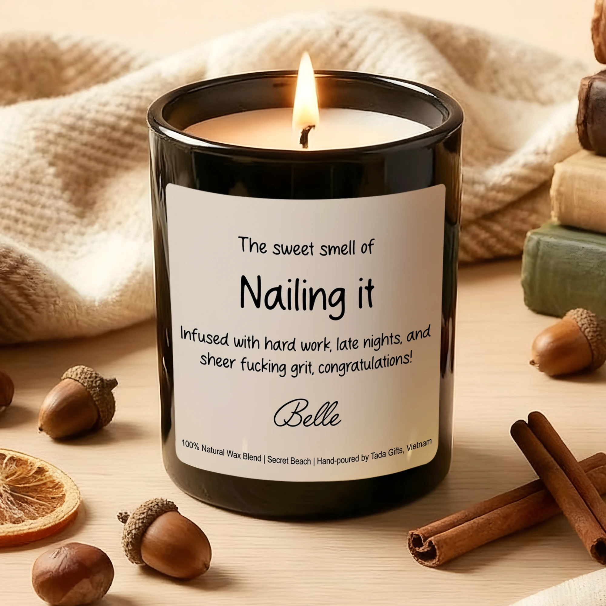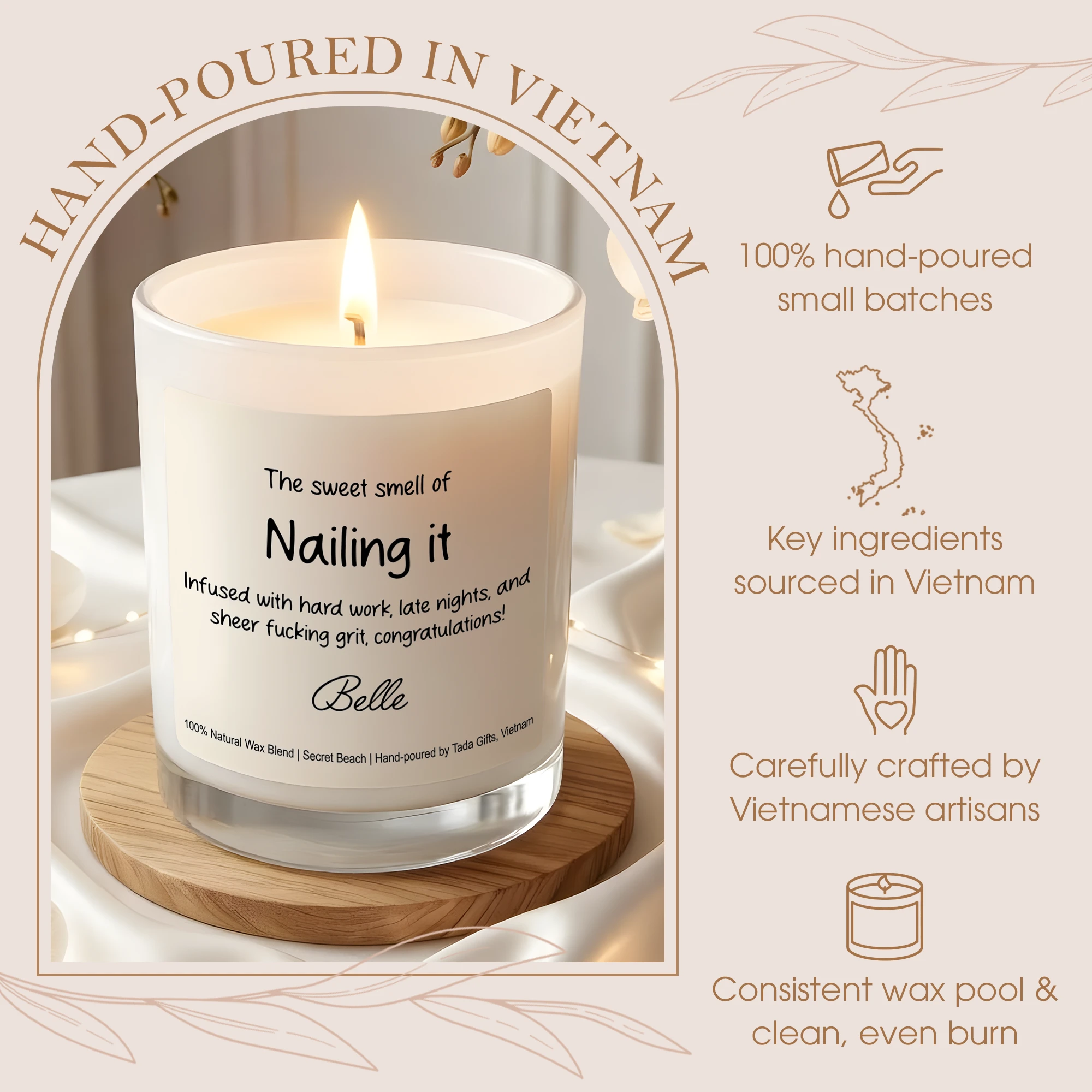 Nailing It Congratulations Candle – Funny New Job Gift – Promotion Gift for Her – Grad School Graduation – Entrepreneur Gift – Secret Beach Scented