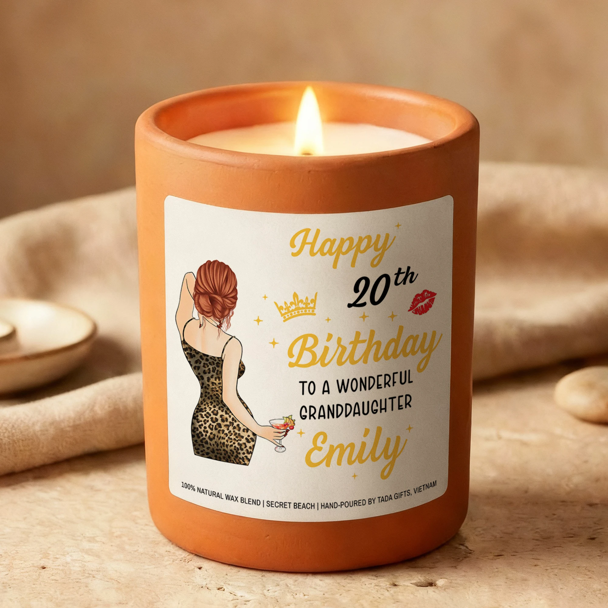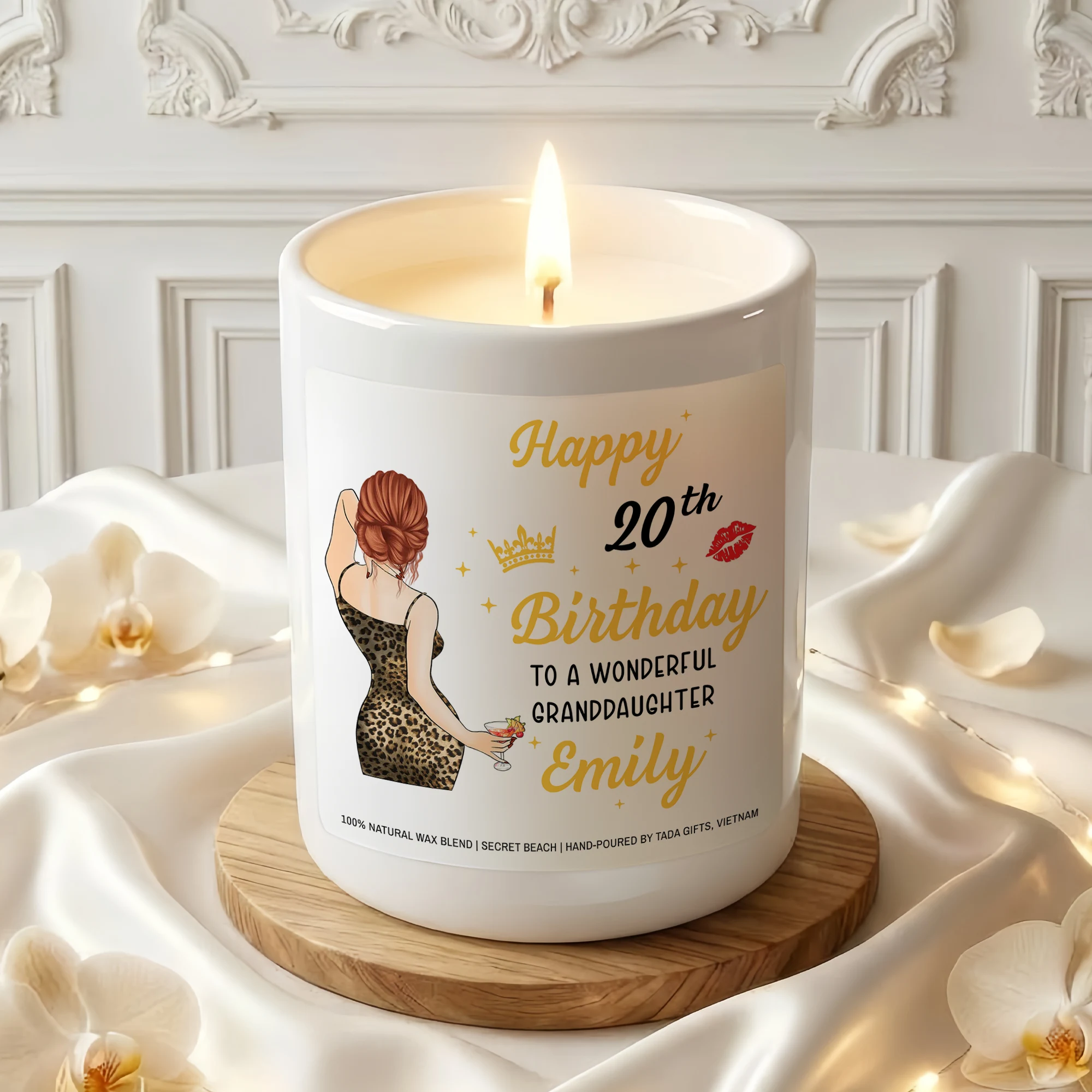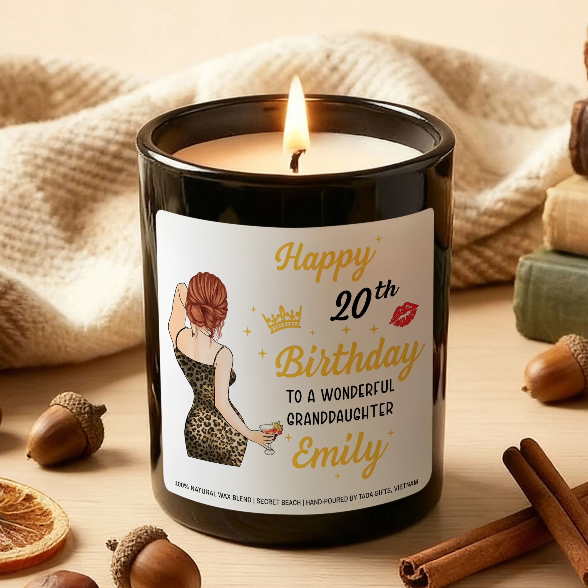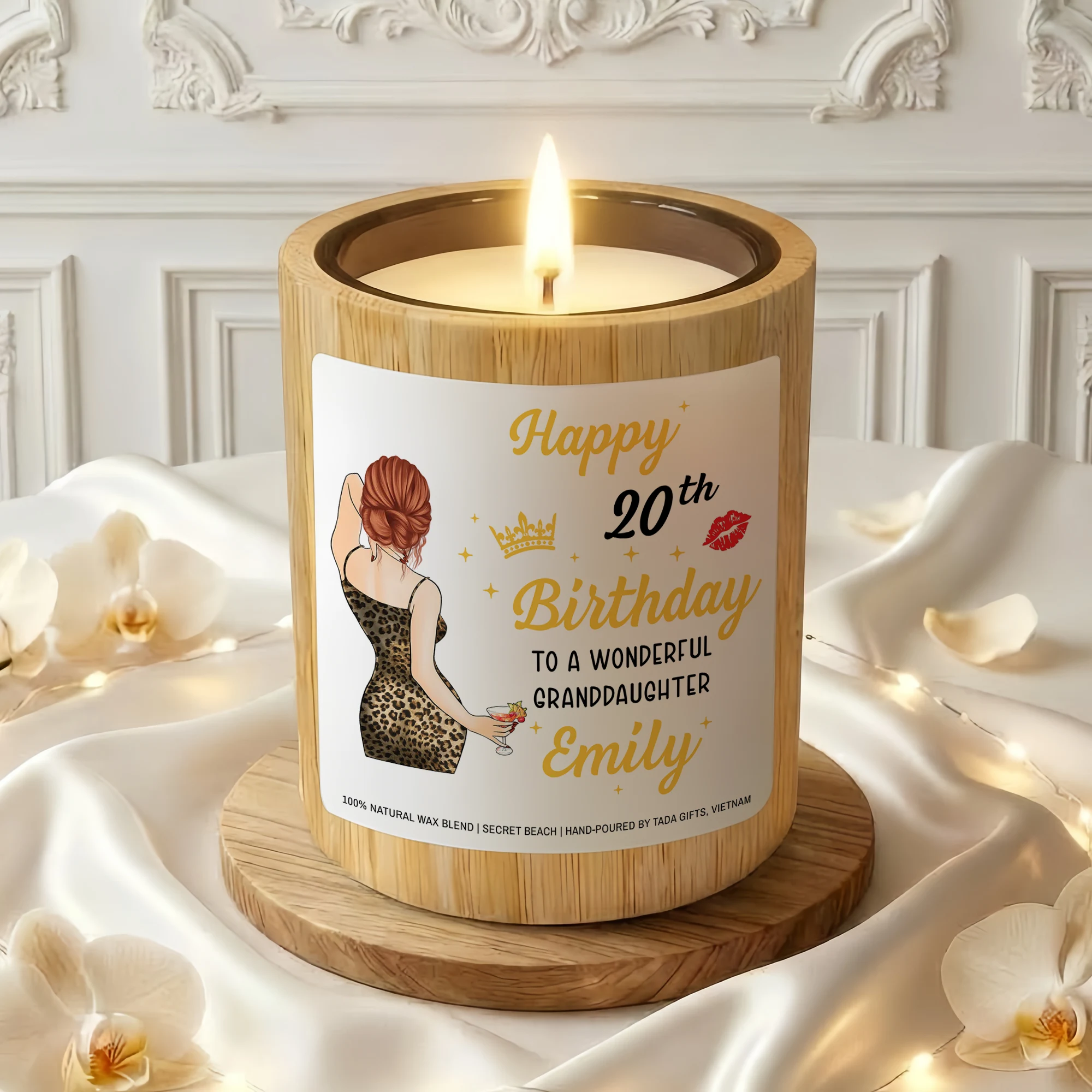 Personalized 20th Birthday Candle for Granddaughter, Custom Name Elegant Candle, 20th Birthday Gift for Her, Granddaughter Birthday
