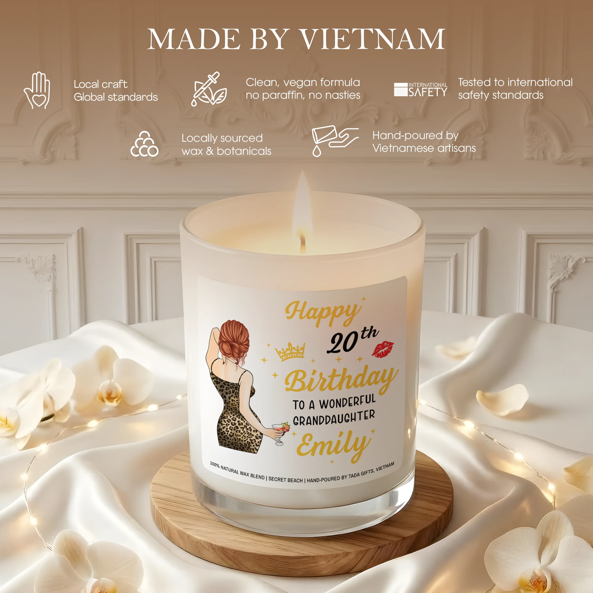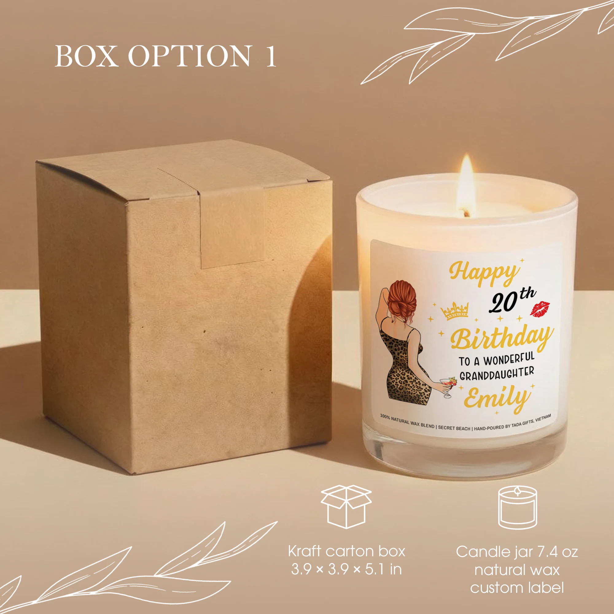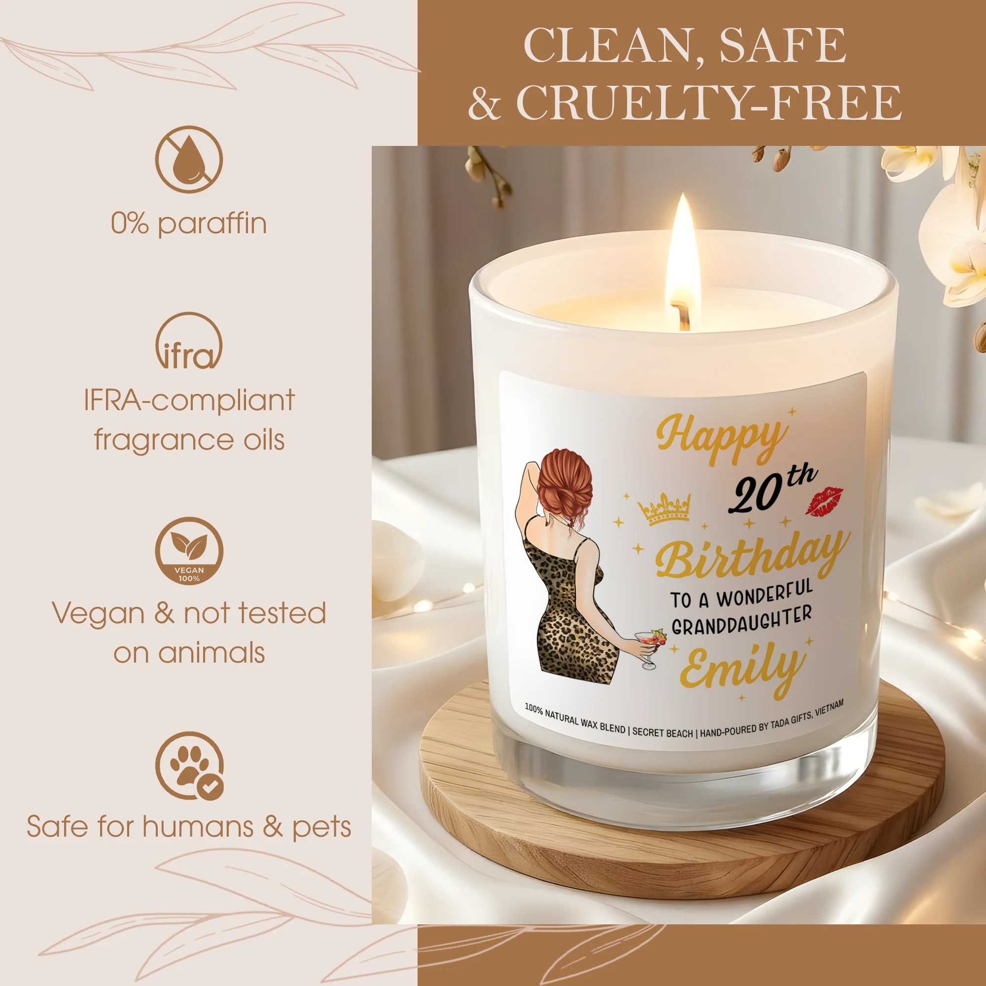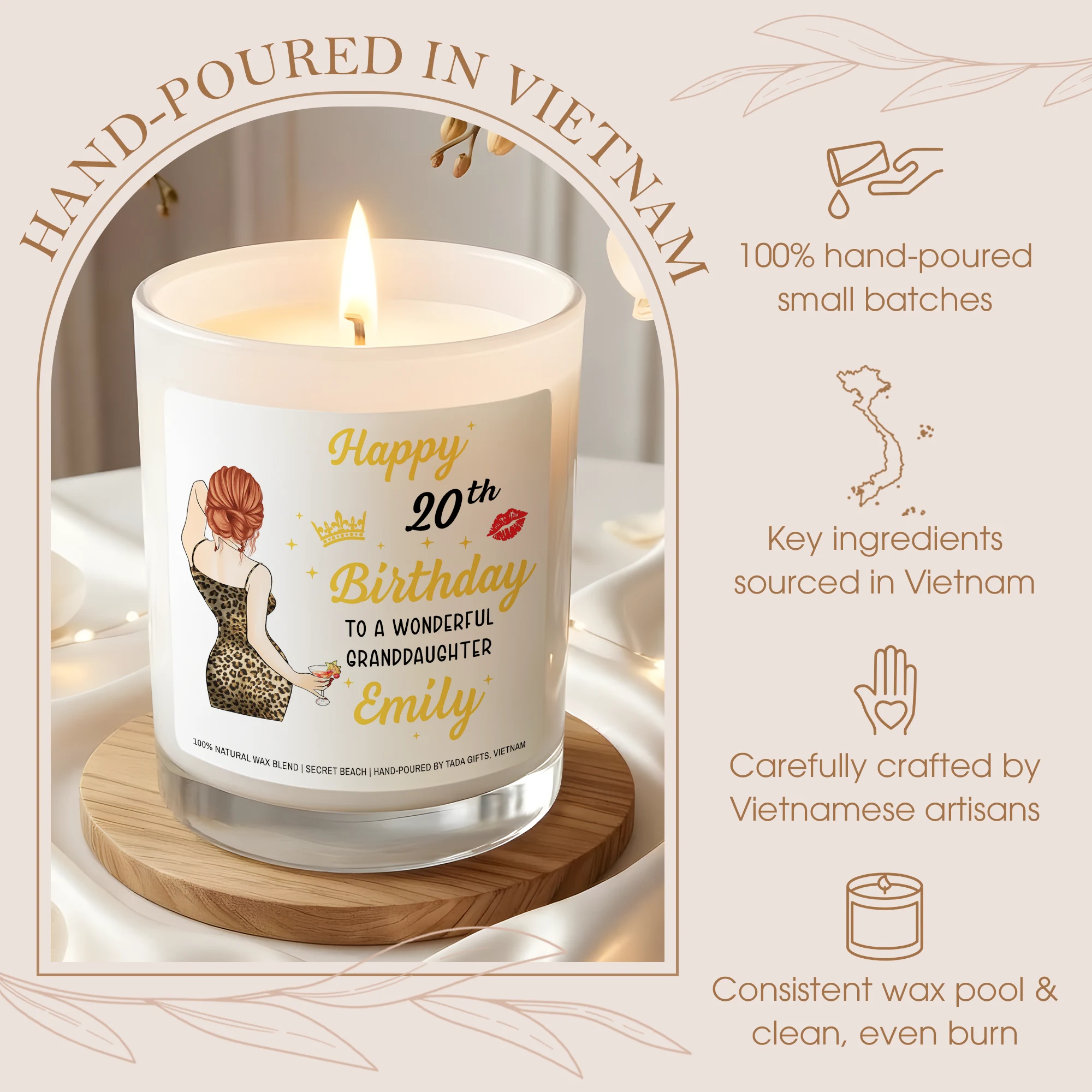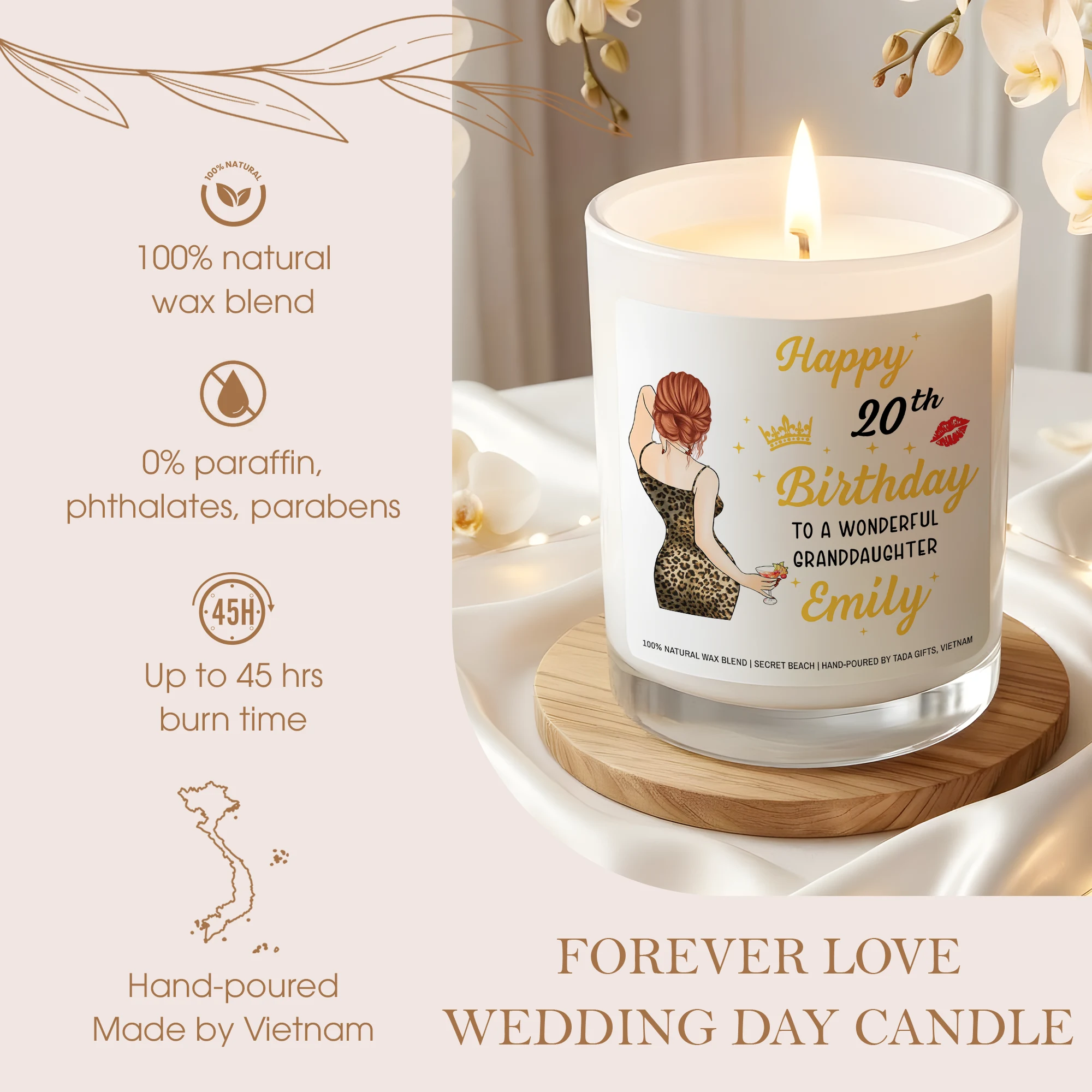 Personalized 20th Birthday Candle for Granddaughter, Custom Name Elegant Candle, 20th Birthday Gift for Her, Granddaughter Birthday