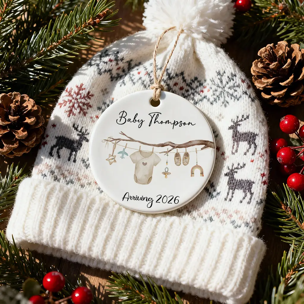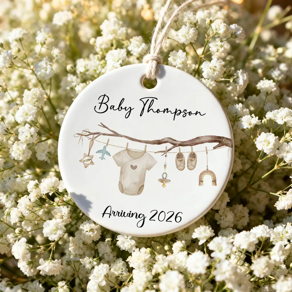 Personalized Baby Clothesline Ornament 2026, Pregnancy Announcement Keepsake, Custom Name Baby On The Way Gift, Ceramic Nursery Decor
