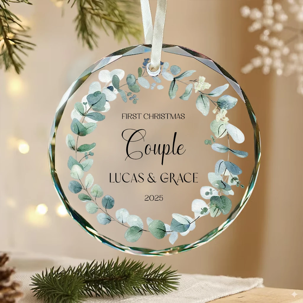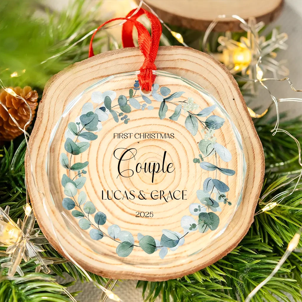 Personalized Couple Name Christmas Ornament 2025 | Custom Engraved Names Gift for Him & Her