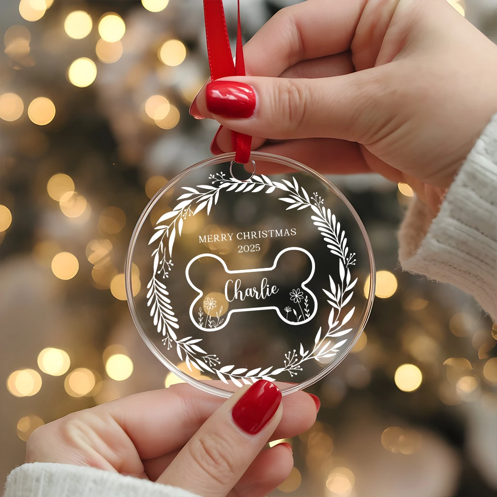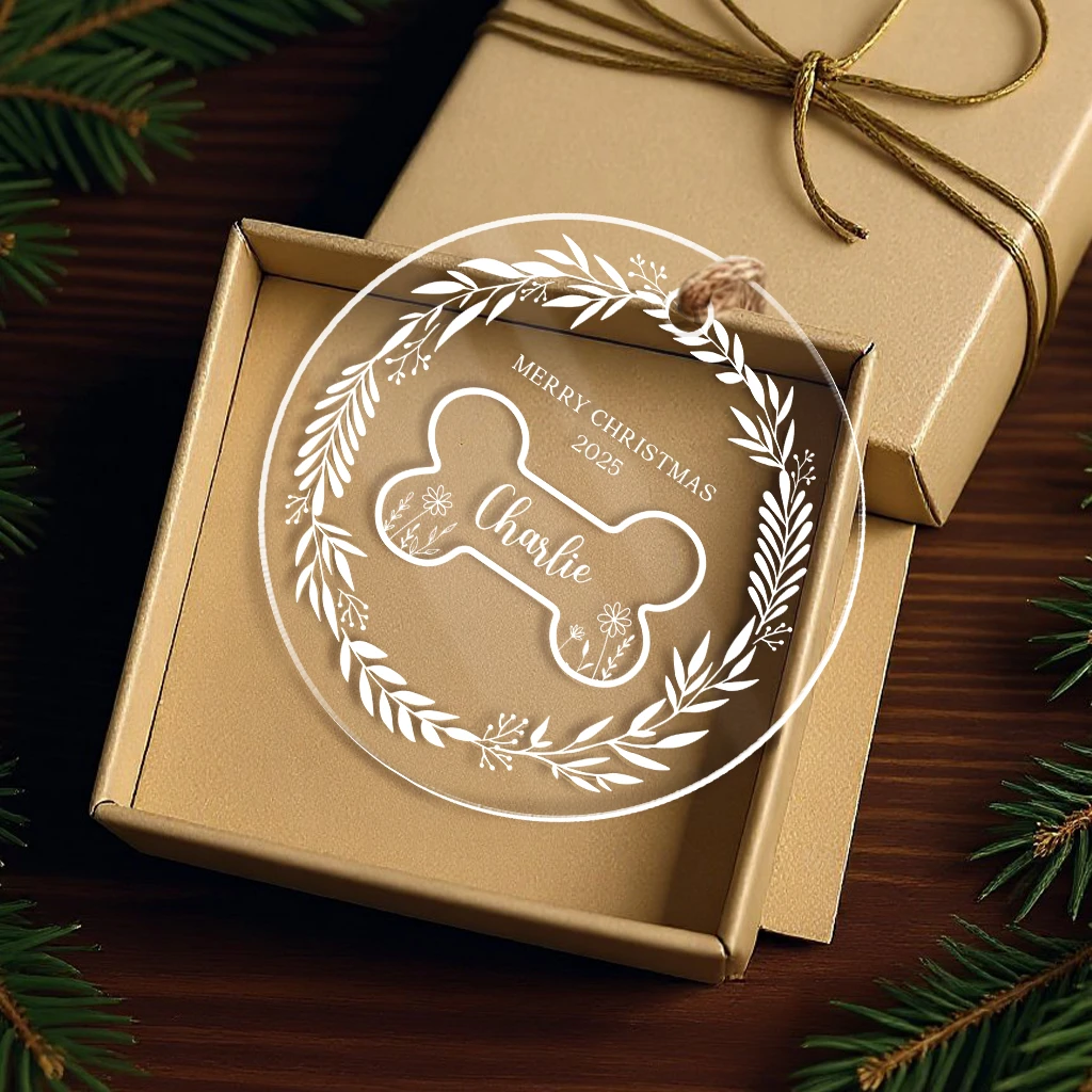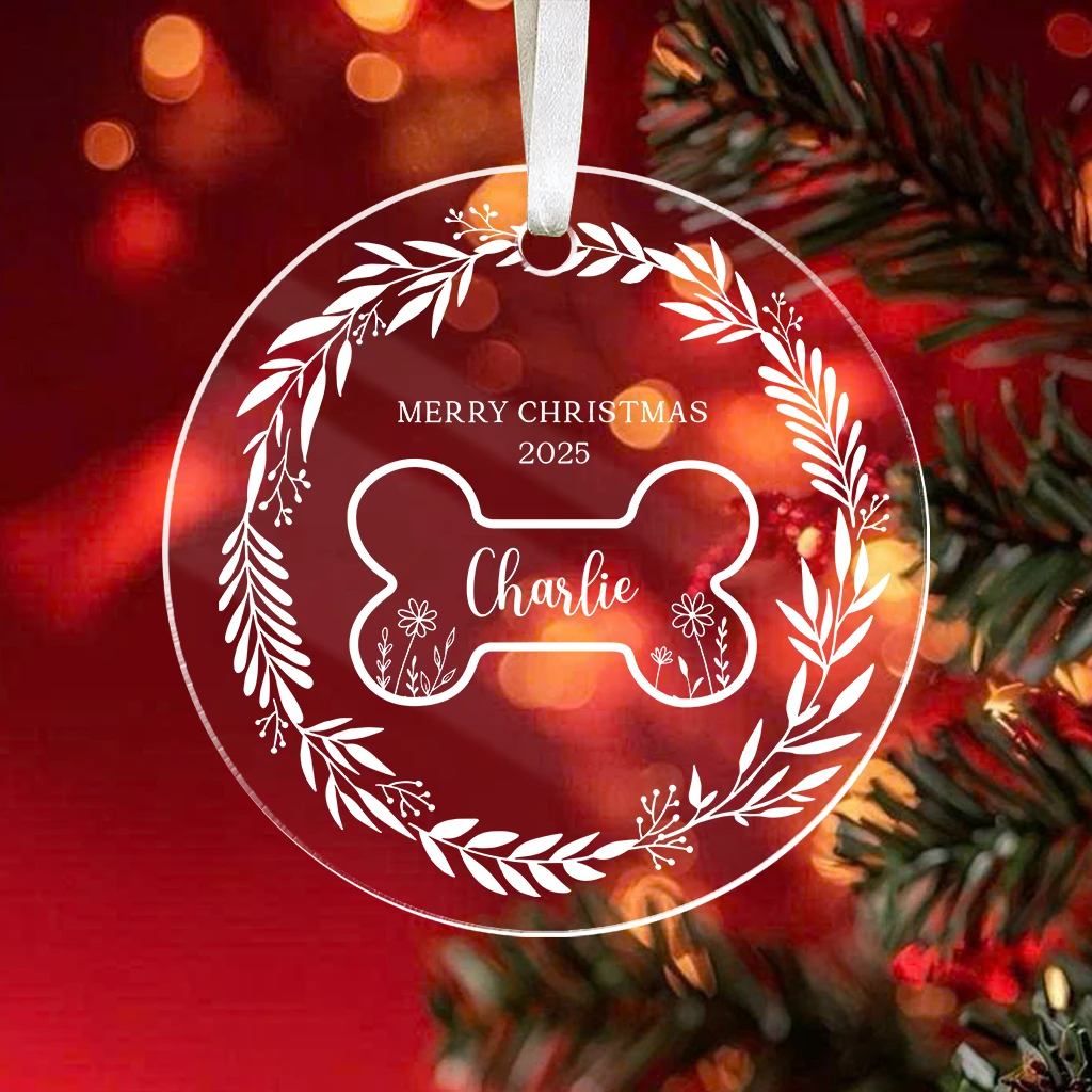 Personalized Dog Bone Acrylic Ornament | Classic Bone Shape with Custom Pup Name 2025