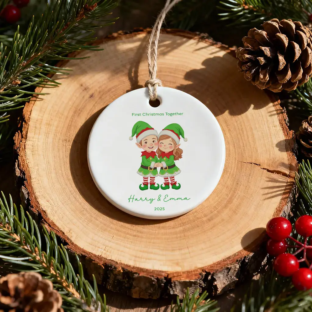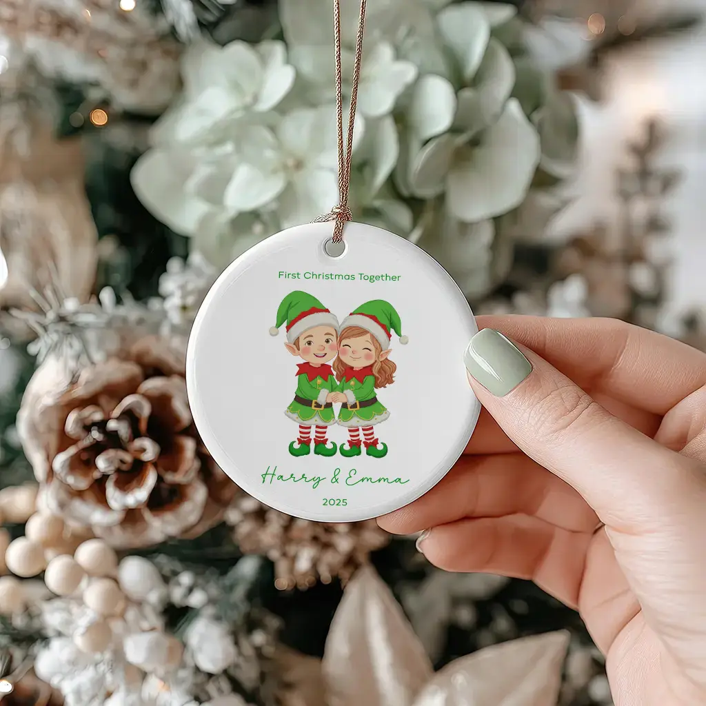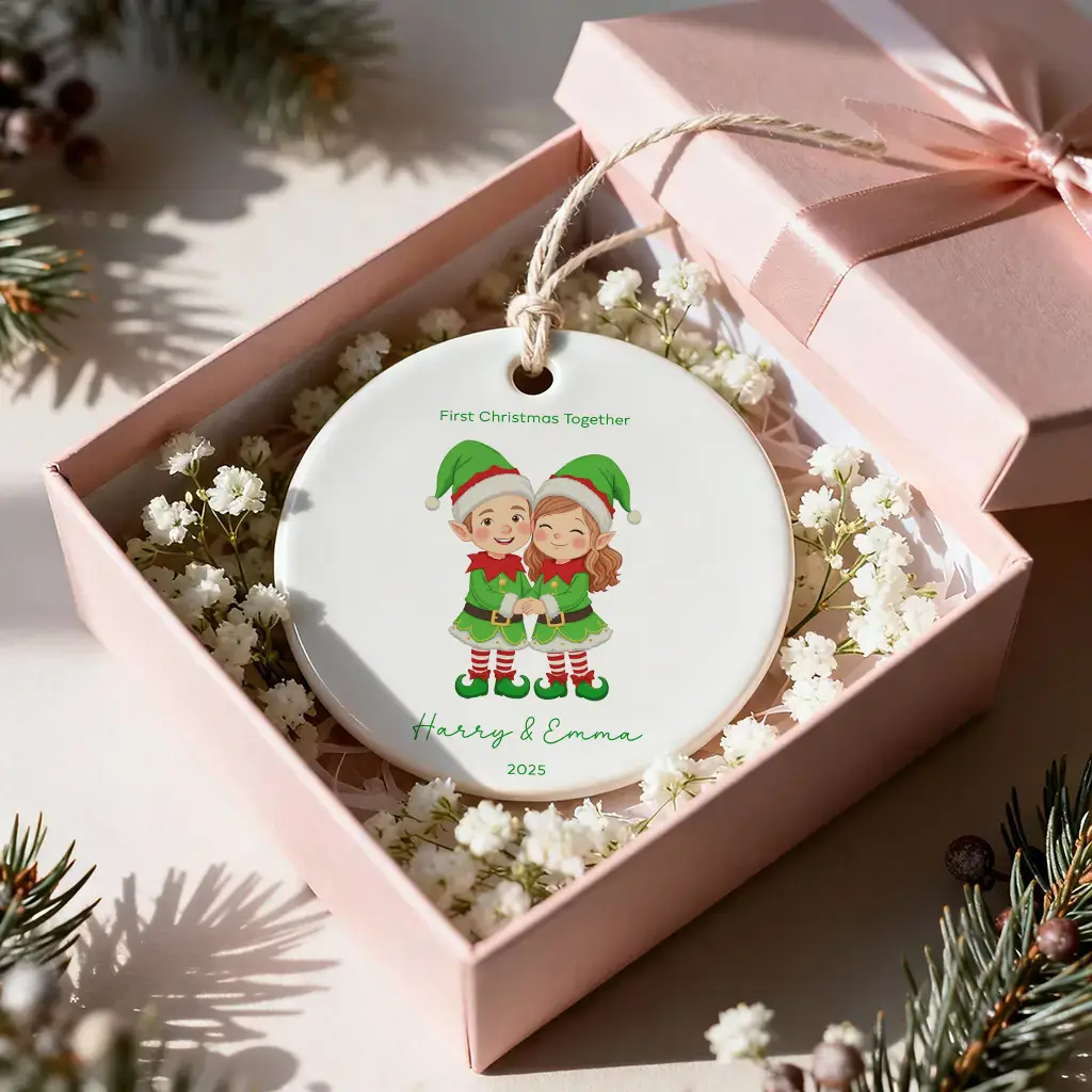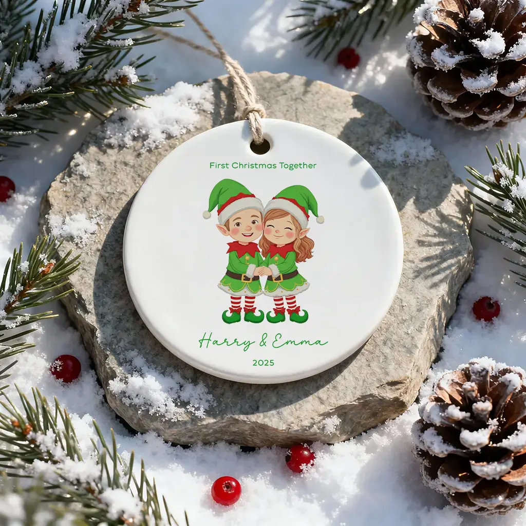 Personalized Elf Couple Ornament 2025, Our First Christmas Together Keepsake, Custom Elf Figurine Gift, Funny Couple Christmas Ornament