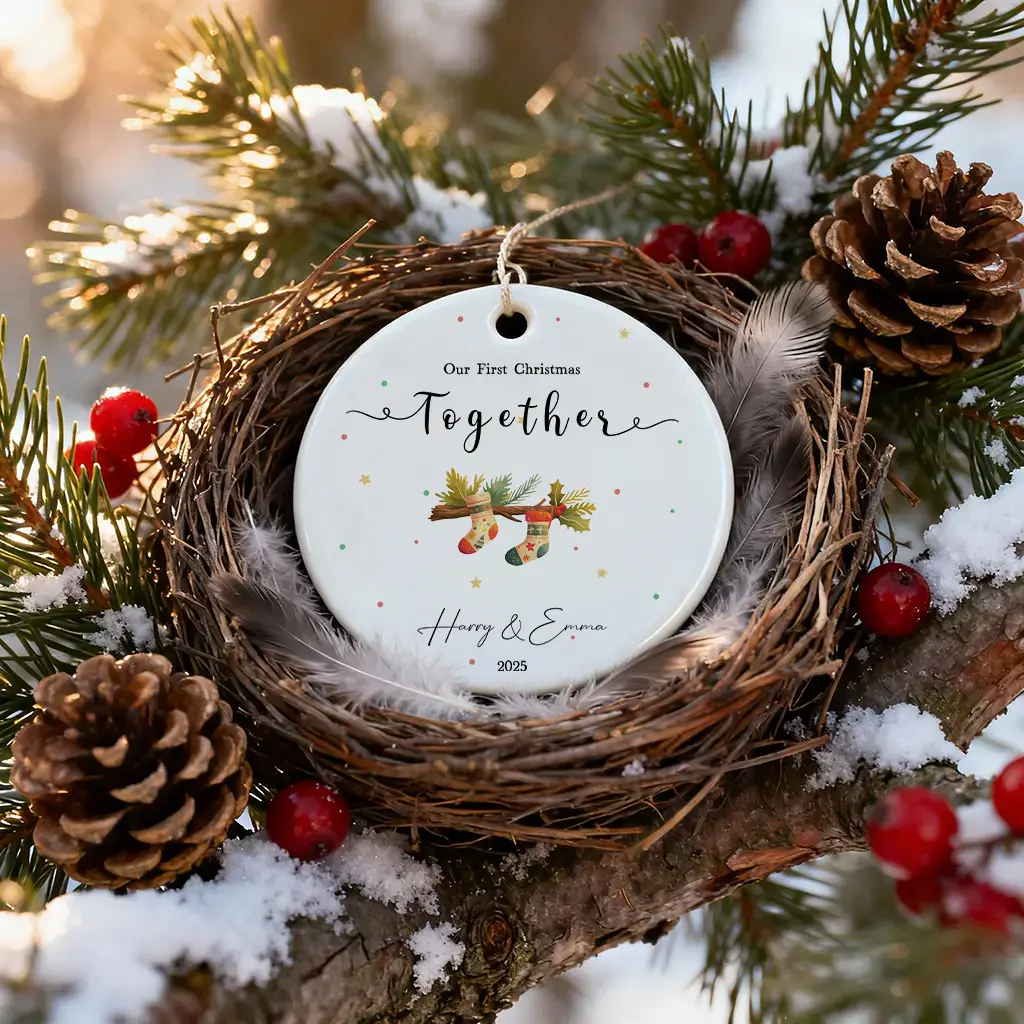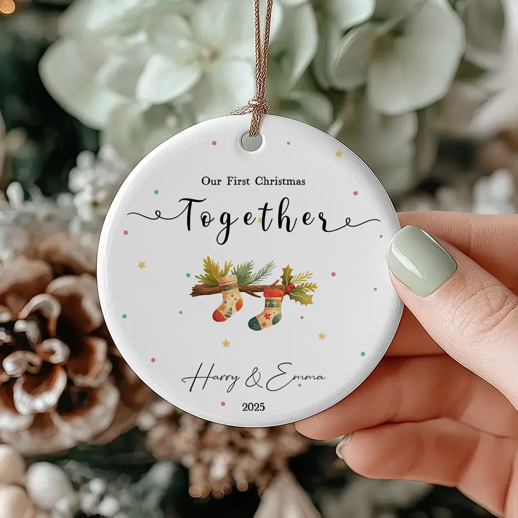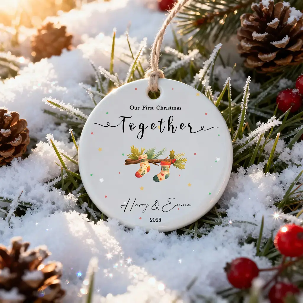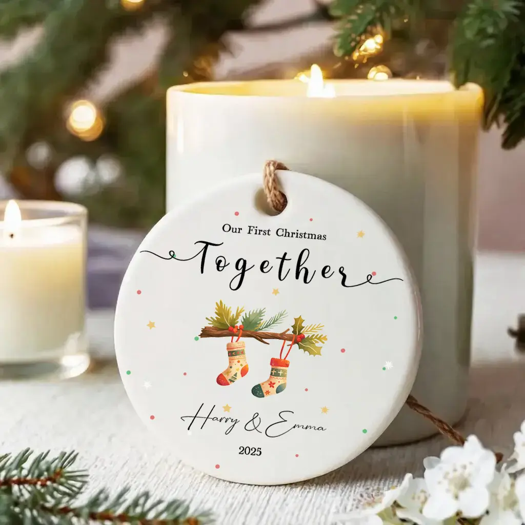 Personalized Engaged Couple Ornament | Fiance Christmas Keepsake Gift | Custom Name & Year Ceramic Tag
