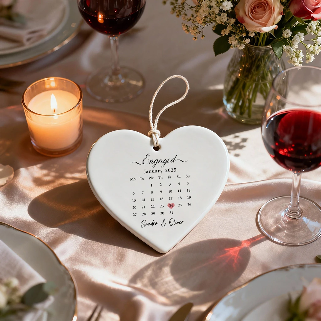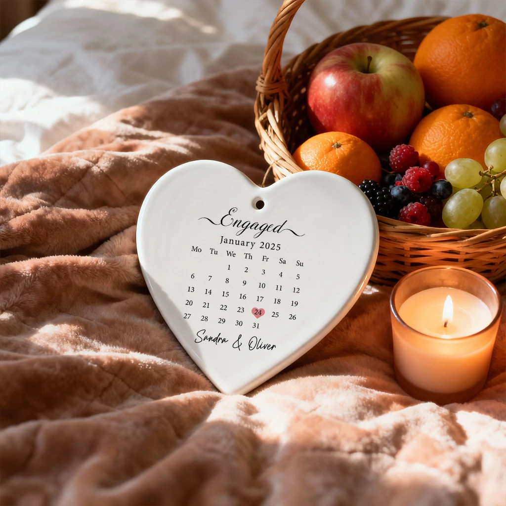Personalized Engagement Date Heart Ornament | Custom Couple Gift 2025 | Unique Christmas Decoration