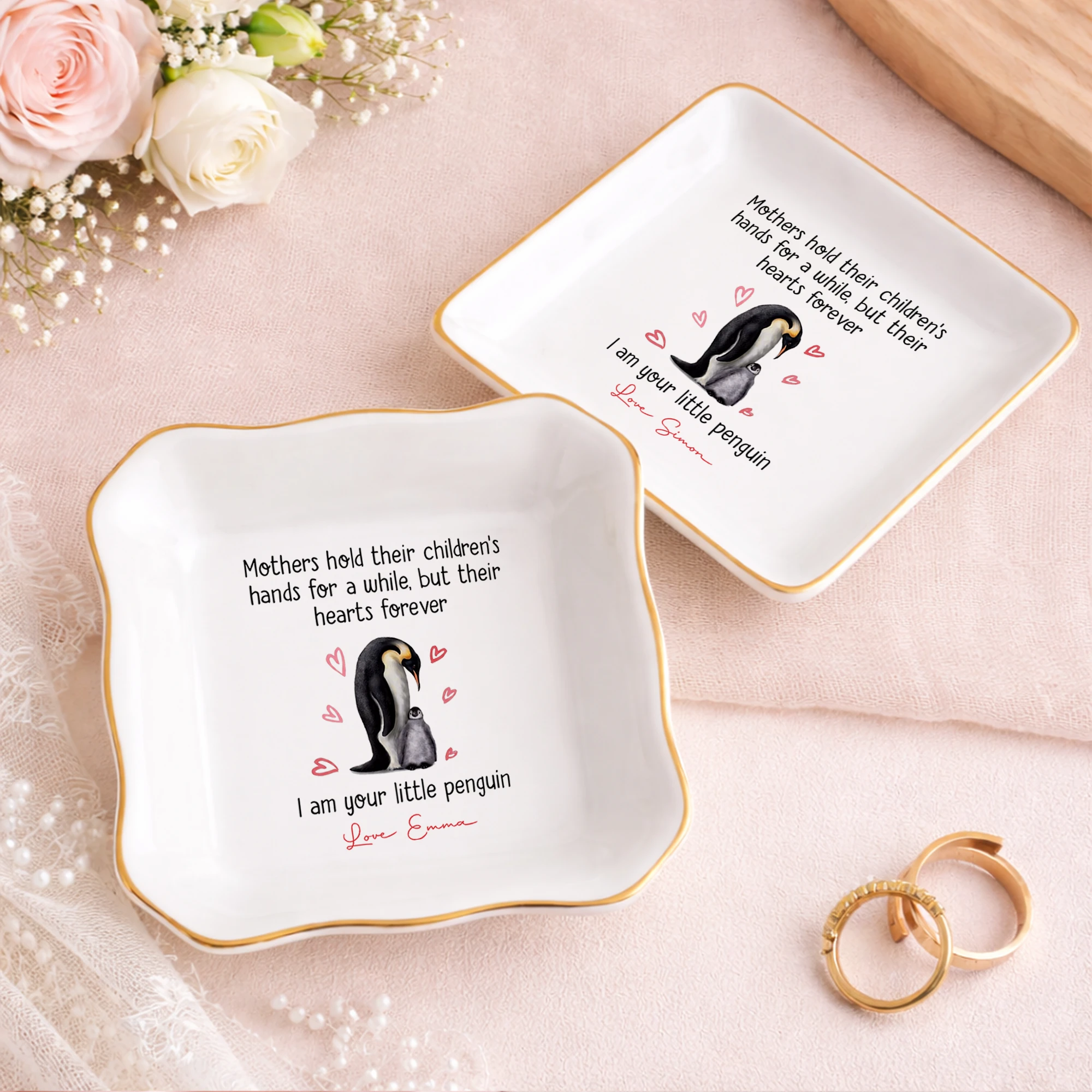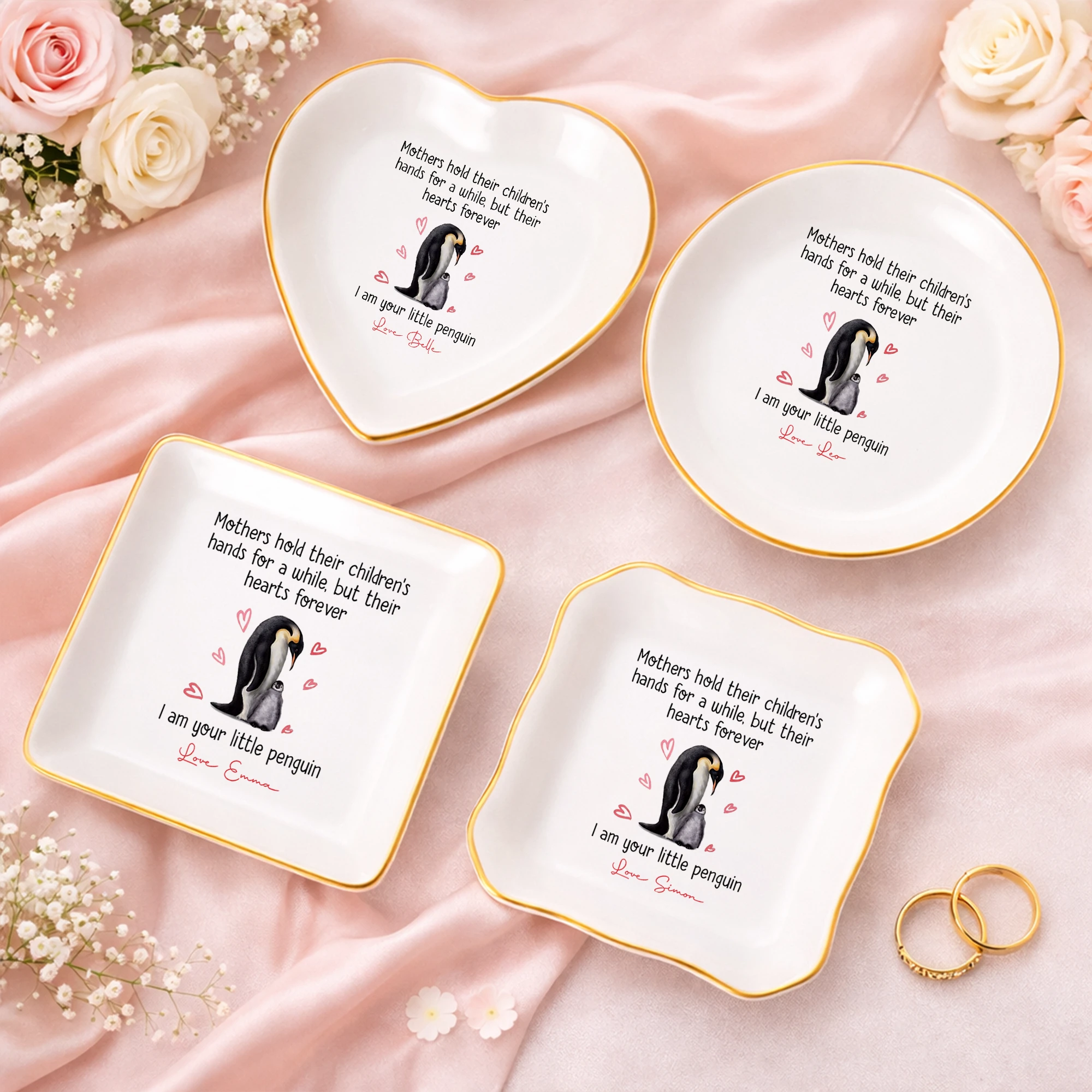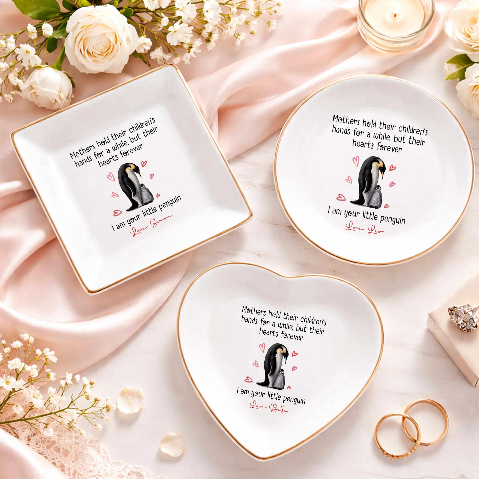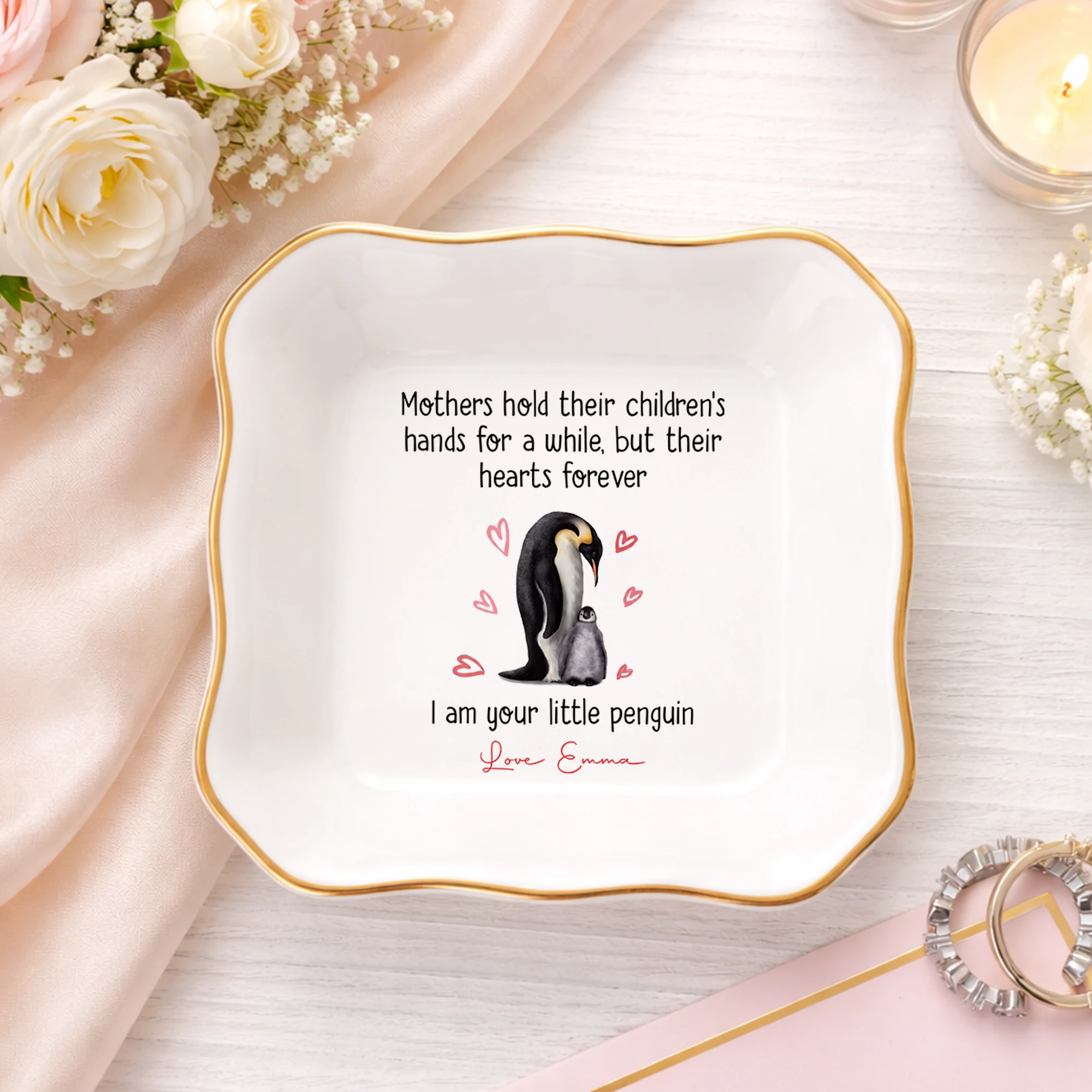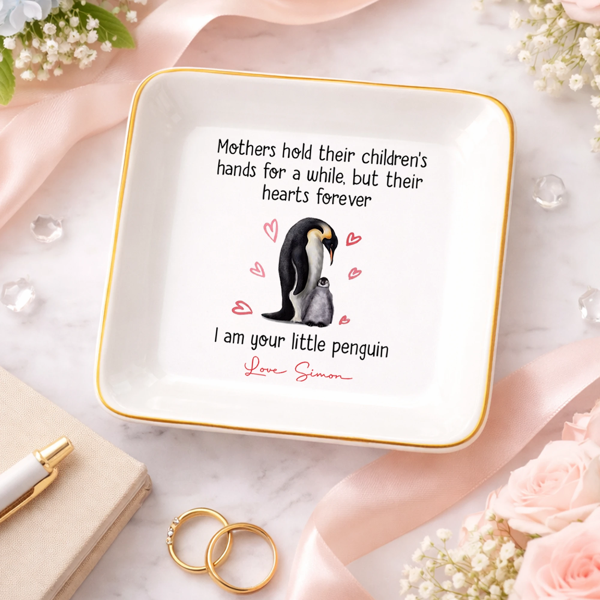 Personalized Jewelry Dish for Mom, Mother’s Day Gift, Custom Name Ring Dish, Penguin Mom Gift, Sentimental Gift
