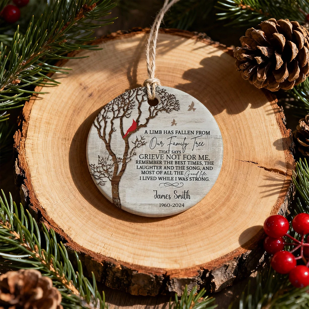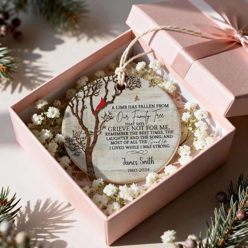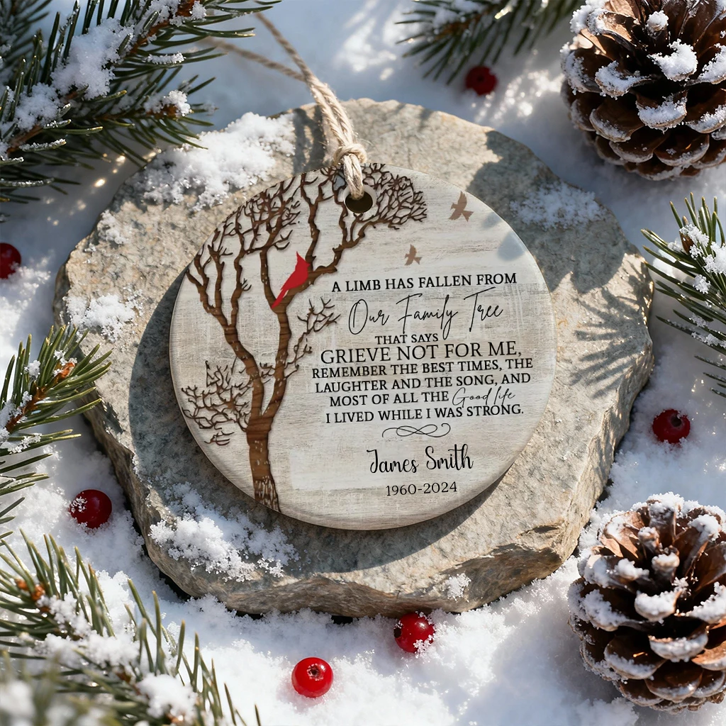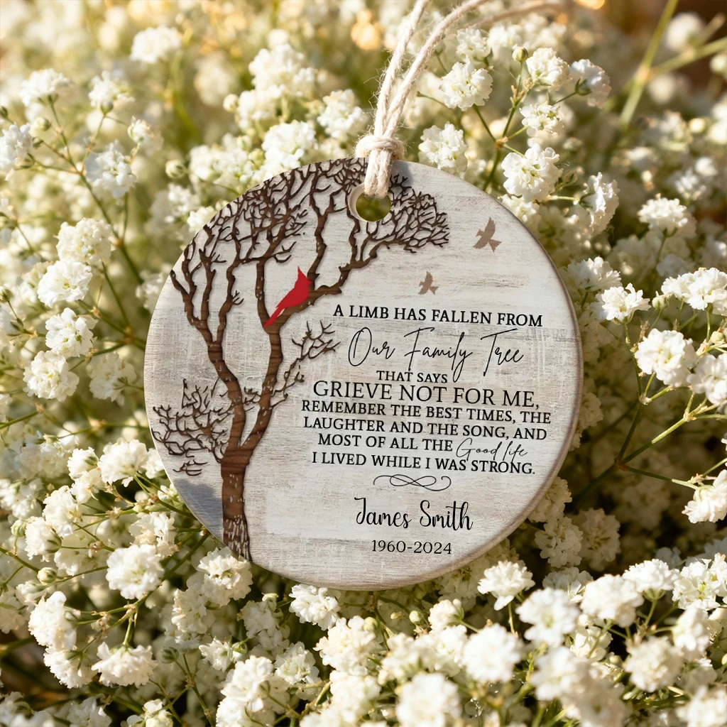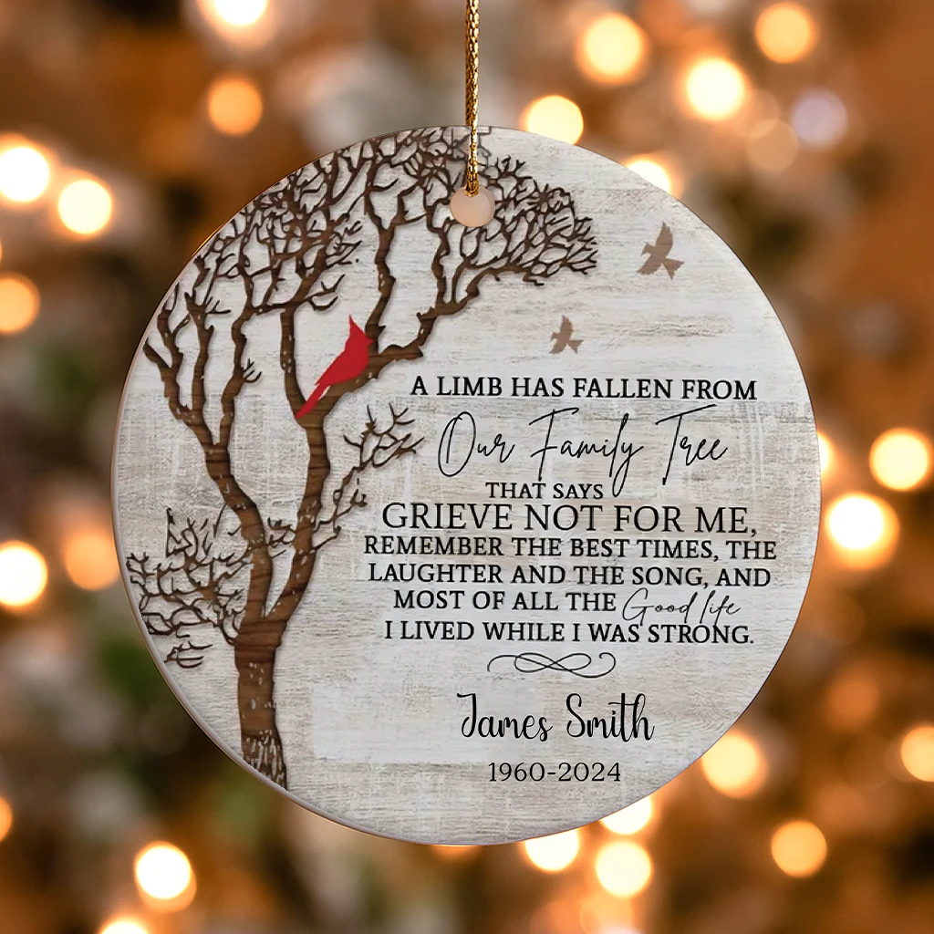 Personalized Memorial Ornament Cardinal Bird, Grieve Not For Me Family Tree Keepsake, Custom Date Name Loss Sympathy Gift, Bereavement Gift