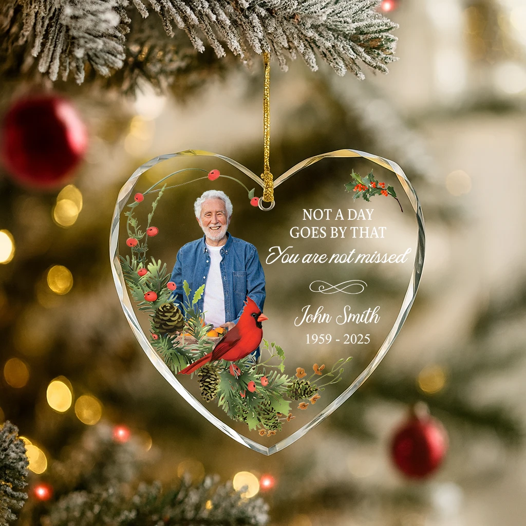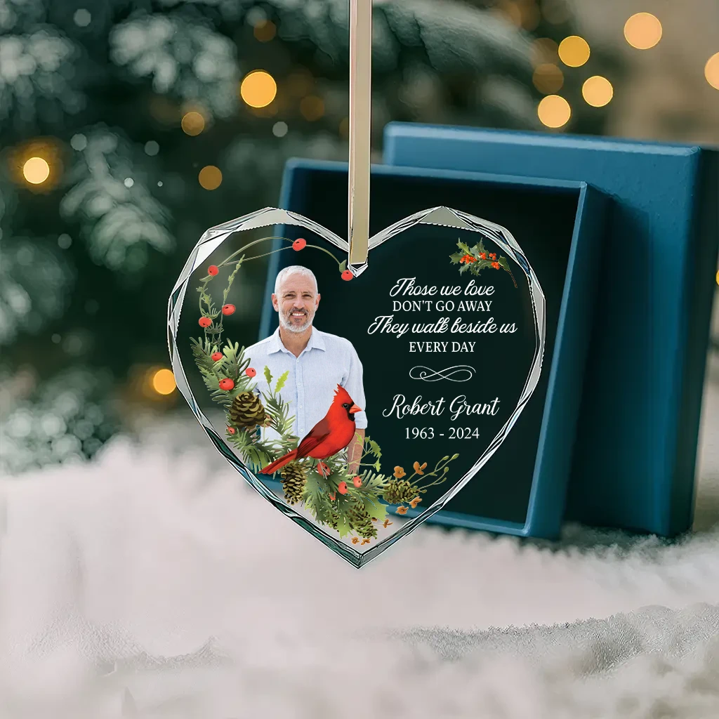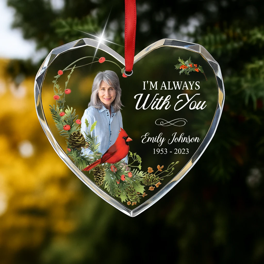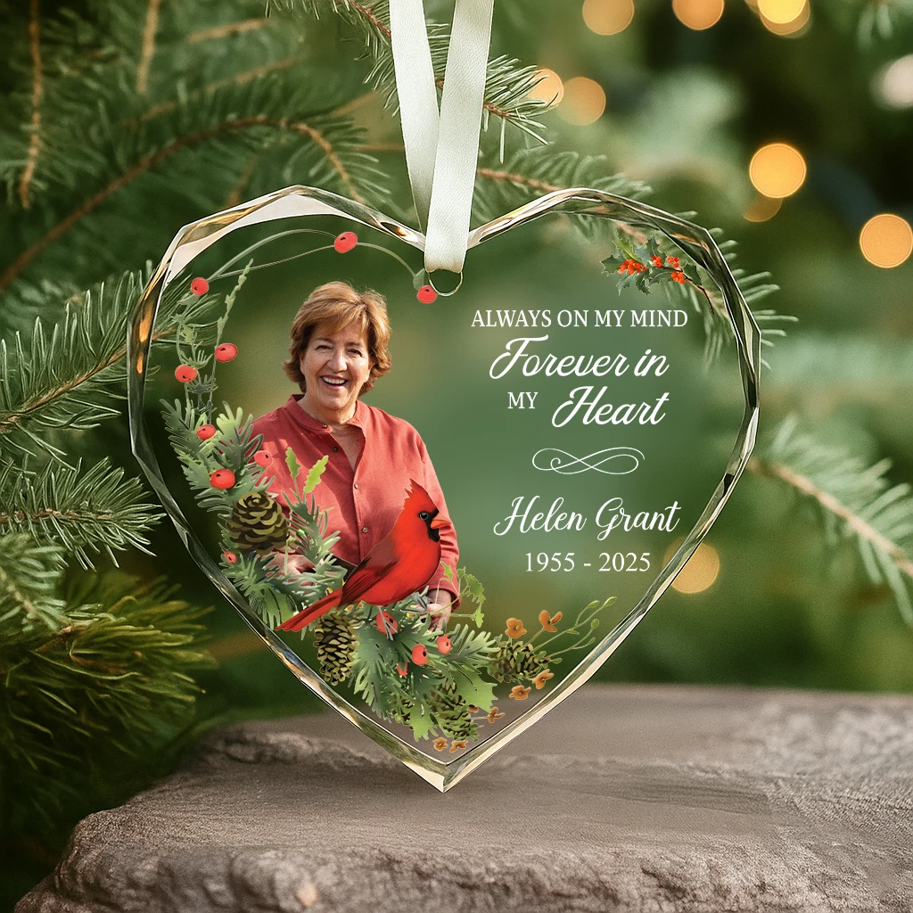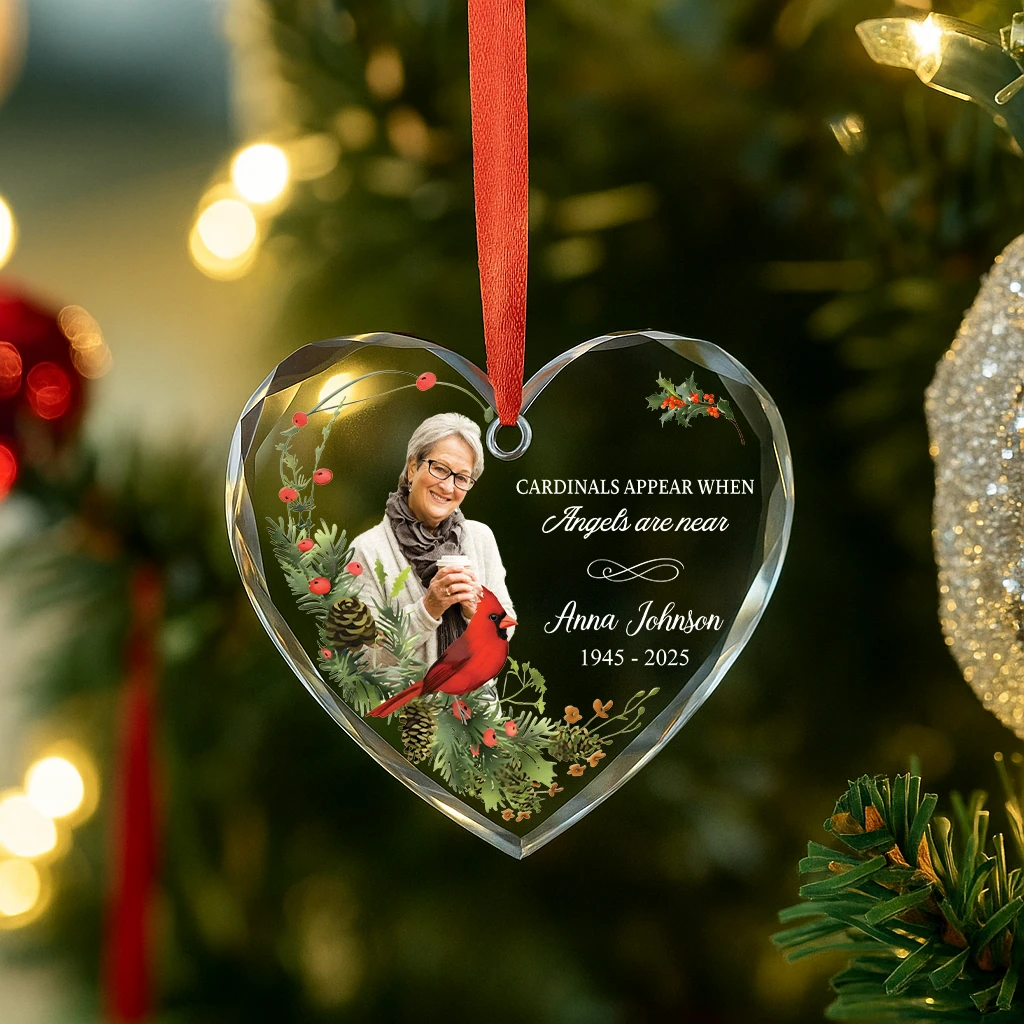 Personalized Photo Memorial Ornament | Custom Name & Year Heart Keepsake | Cardinal Sympathy Gift