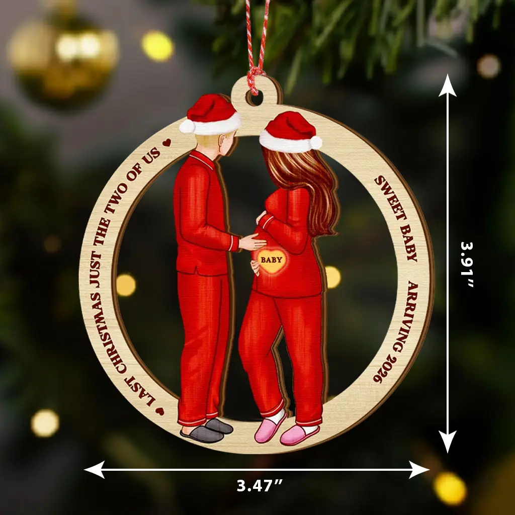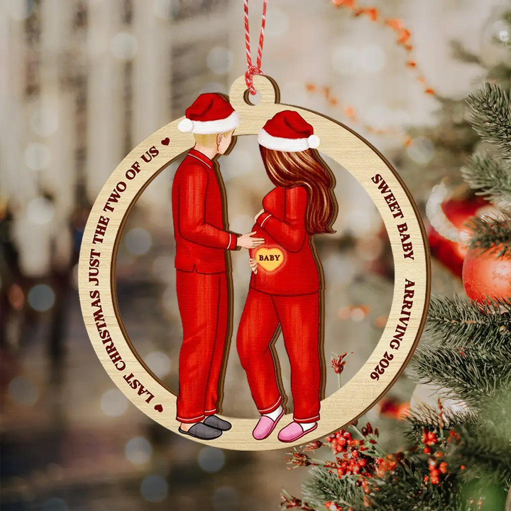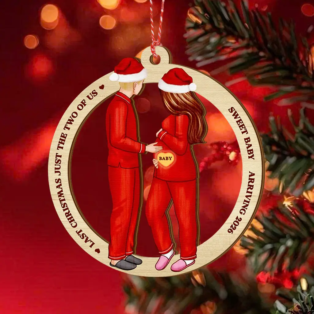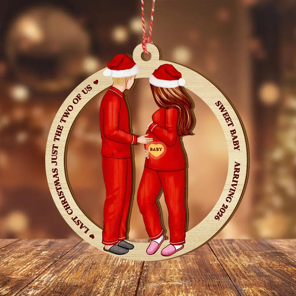 Personalized Pregnancy Announcement Ornament 2025, First Christmas Pregnant Couple Keepsake, Custom PJs Baby Reveal Gift, Expecting Parents