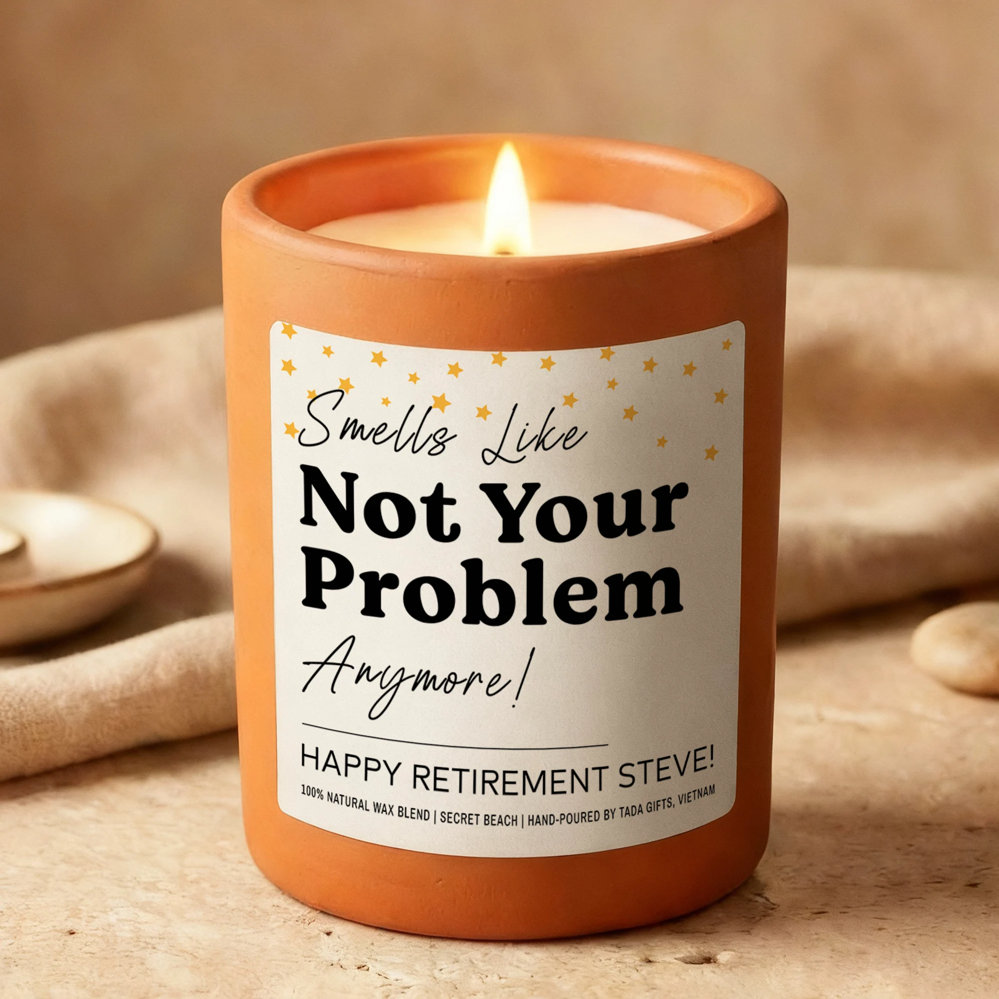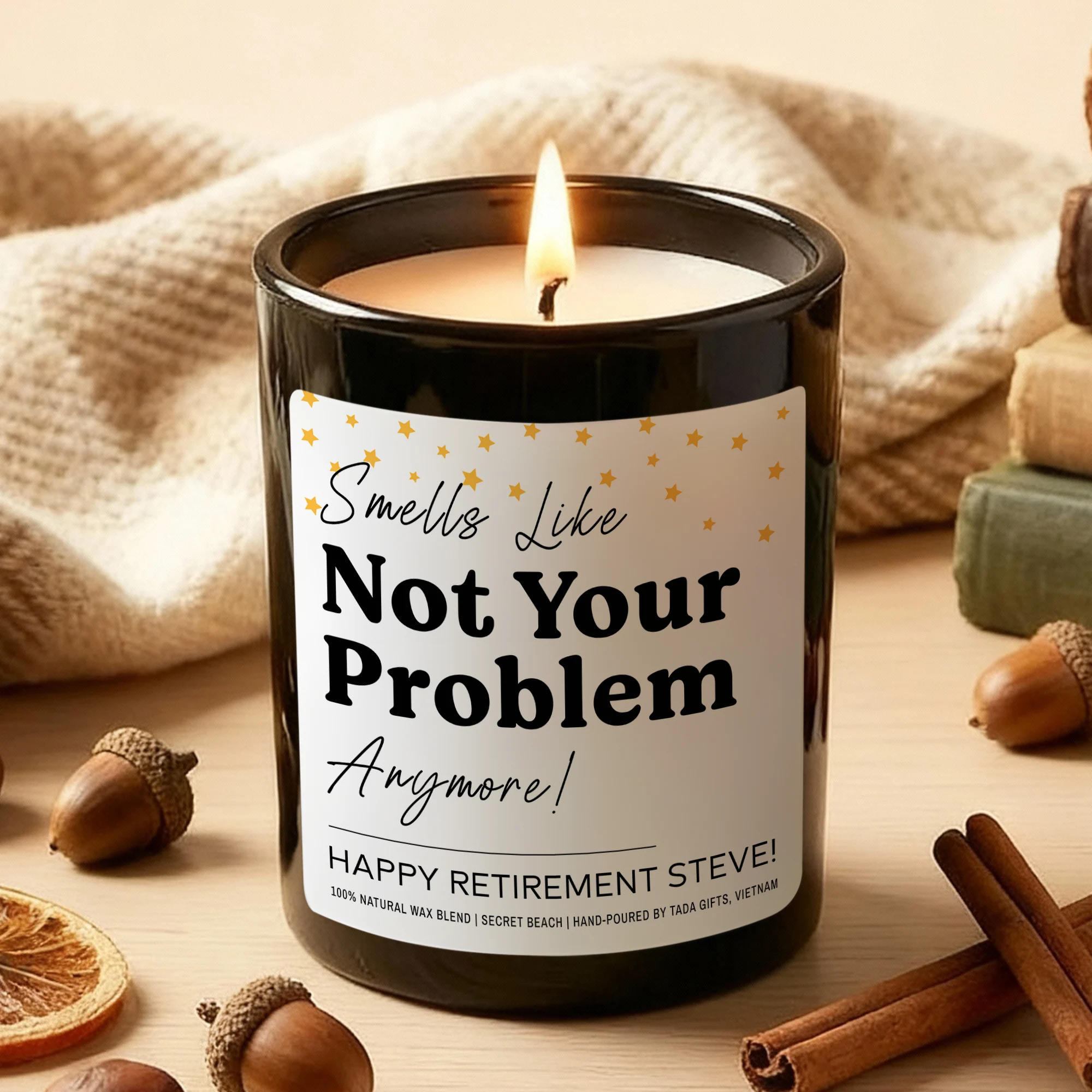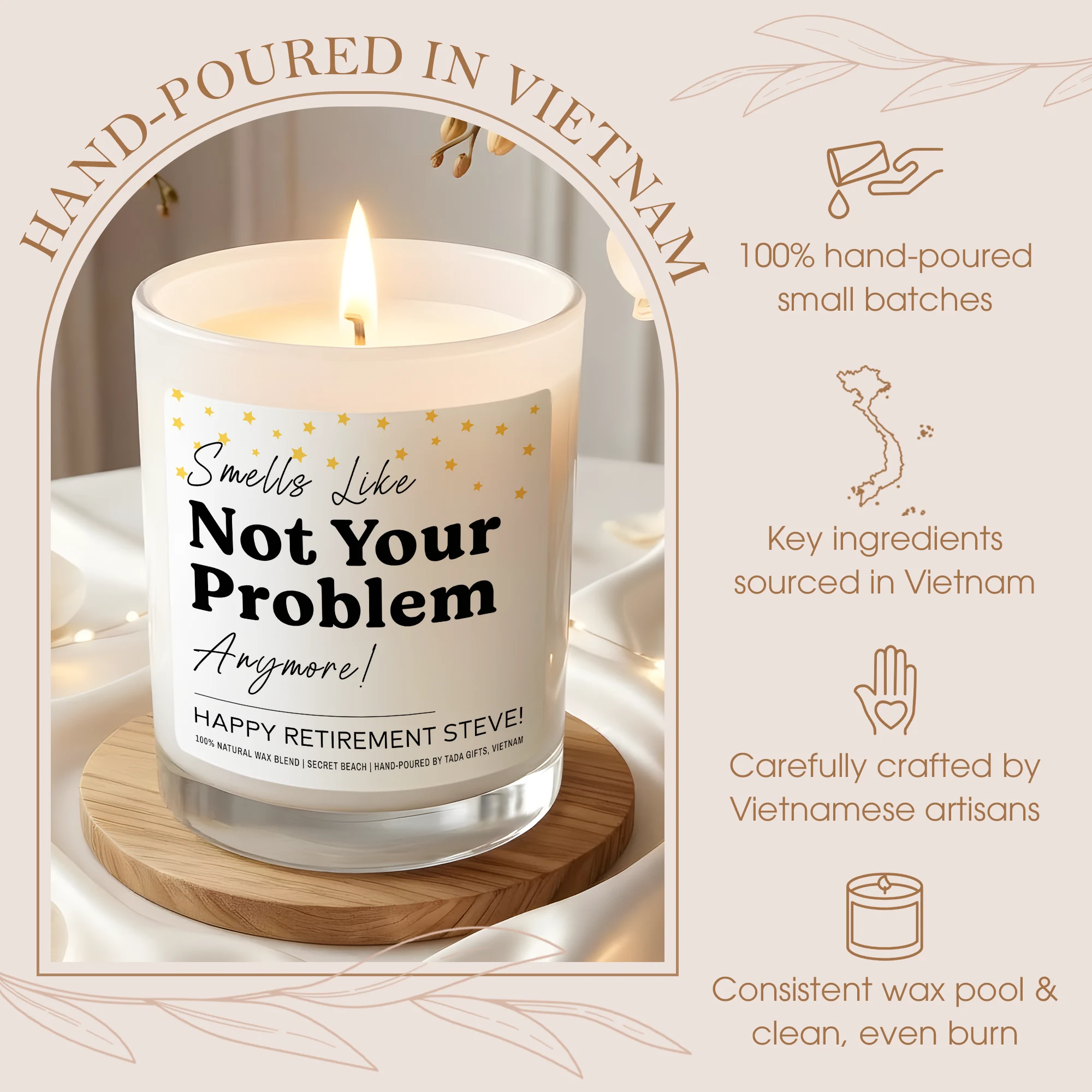 Personalized Retirement Candle – Smells Like Not Your Problem Anymore – Custom Name Gift for Retiree, Funny Coworker Leaving Gift