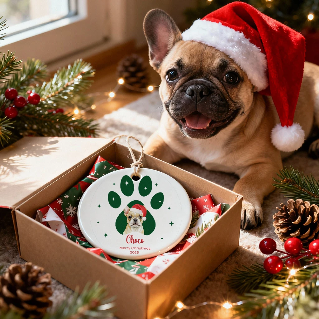 Personalized Santa Dog Paw Ornament | Custom Pet Christmas Gift 2025 | Perfect for Dog Lovers