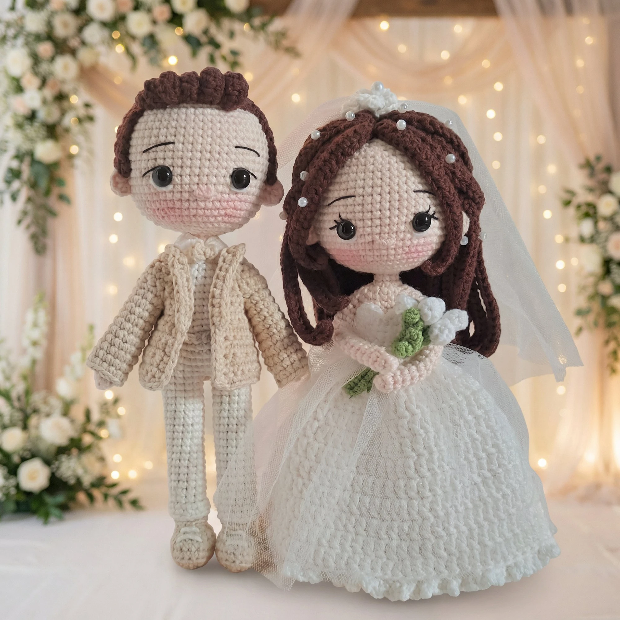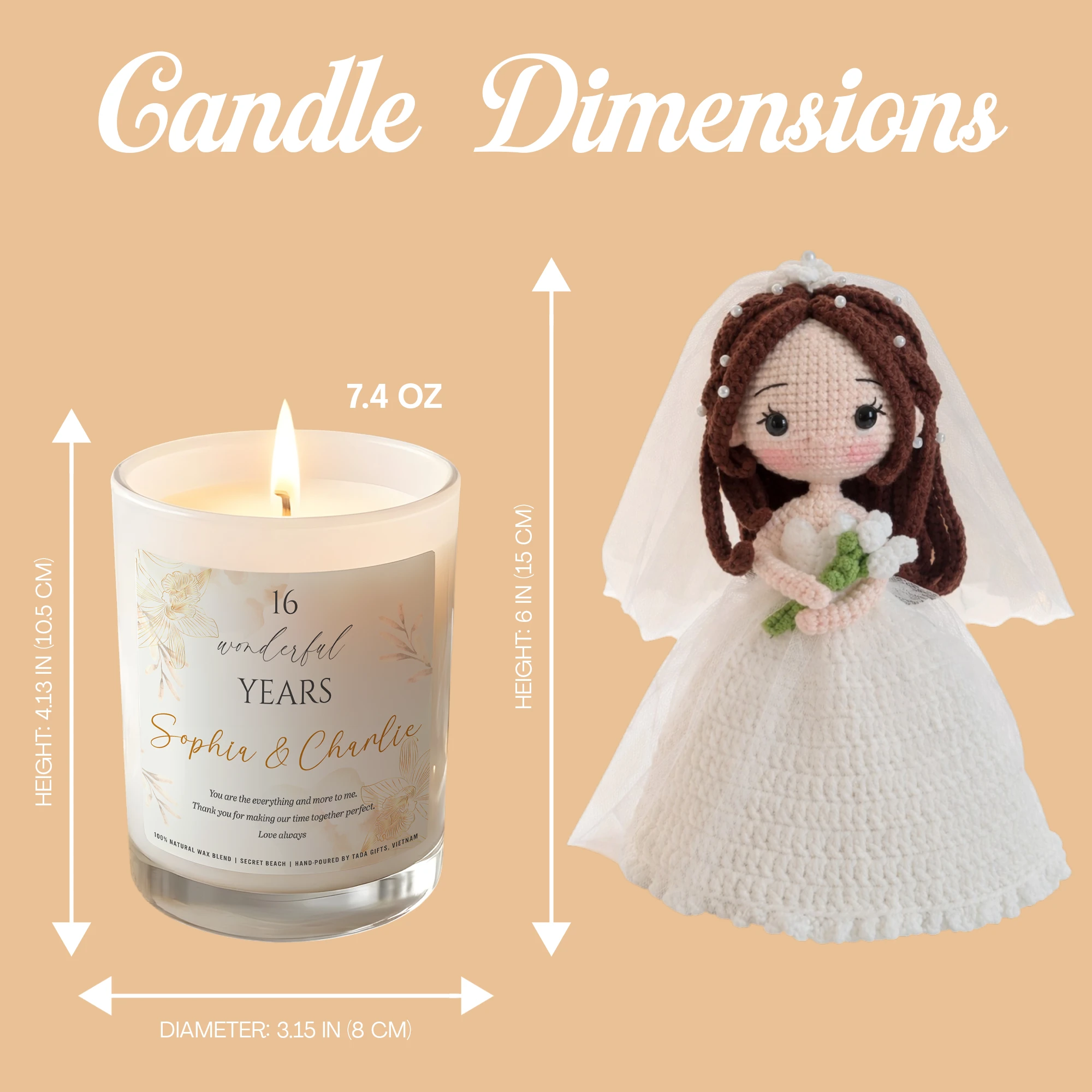 Personalized Wedding Anniversary Gift Box – Custom Couple Crochet Dolls & Scented Candle Set – 16 Years Anniversary Gift for Wife or Husband – Unique Wedding Keepsake Box – Handmade Amigurumi Bride & Groom