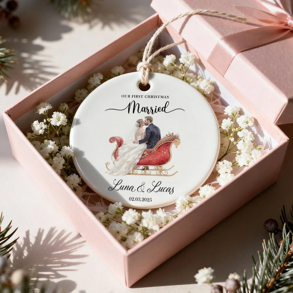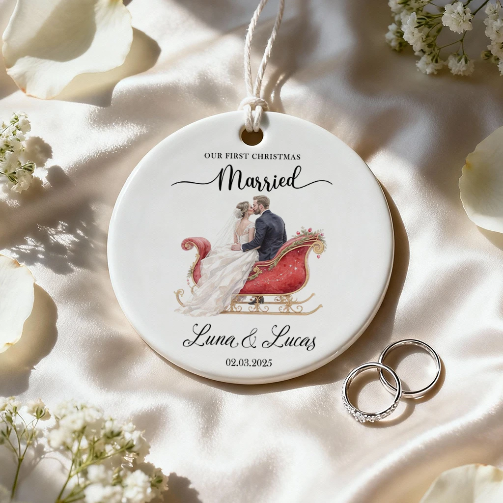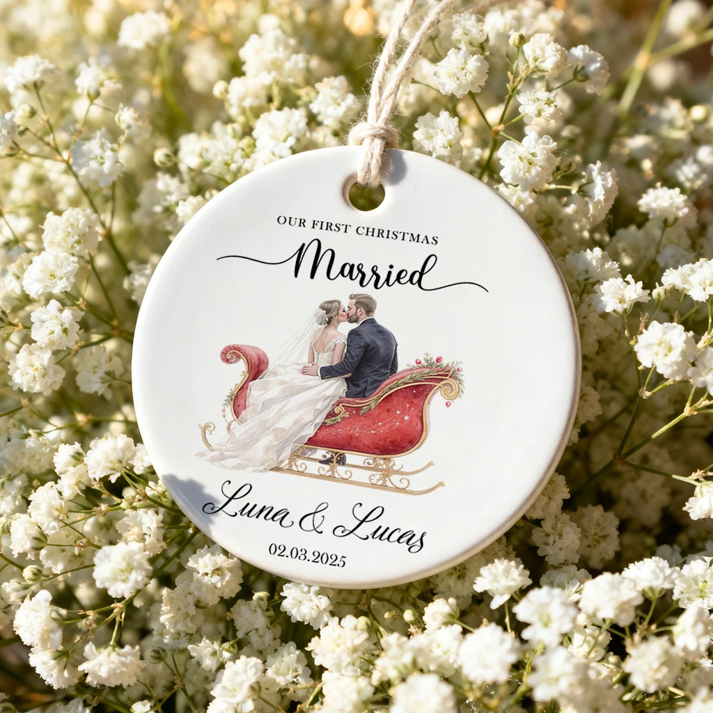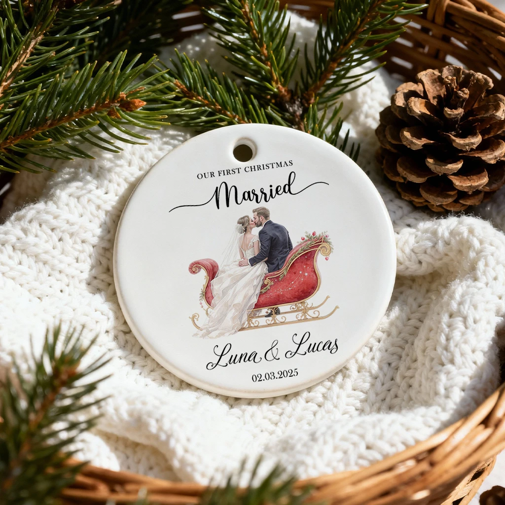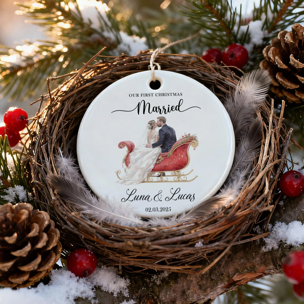 Personalized Wedding Sleigh Ornament | Romantic First Christmas Keepsake 2025 | Unique For Couples