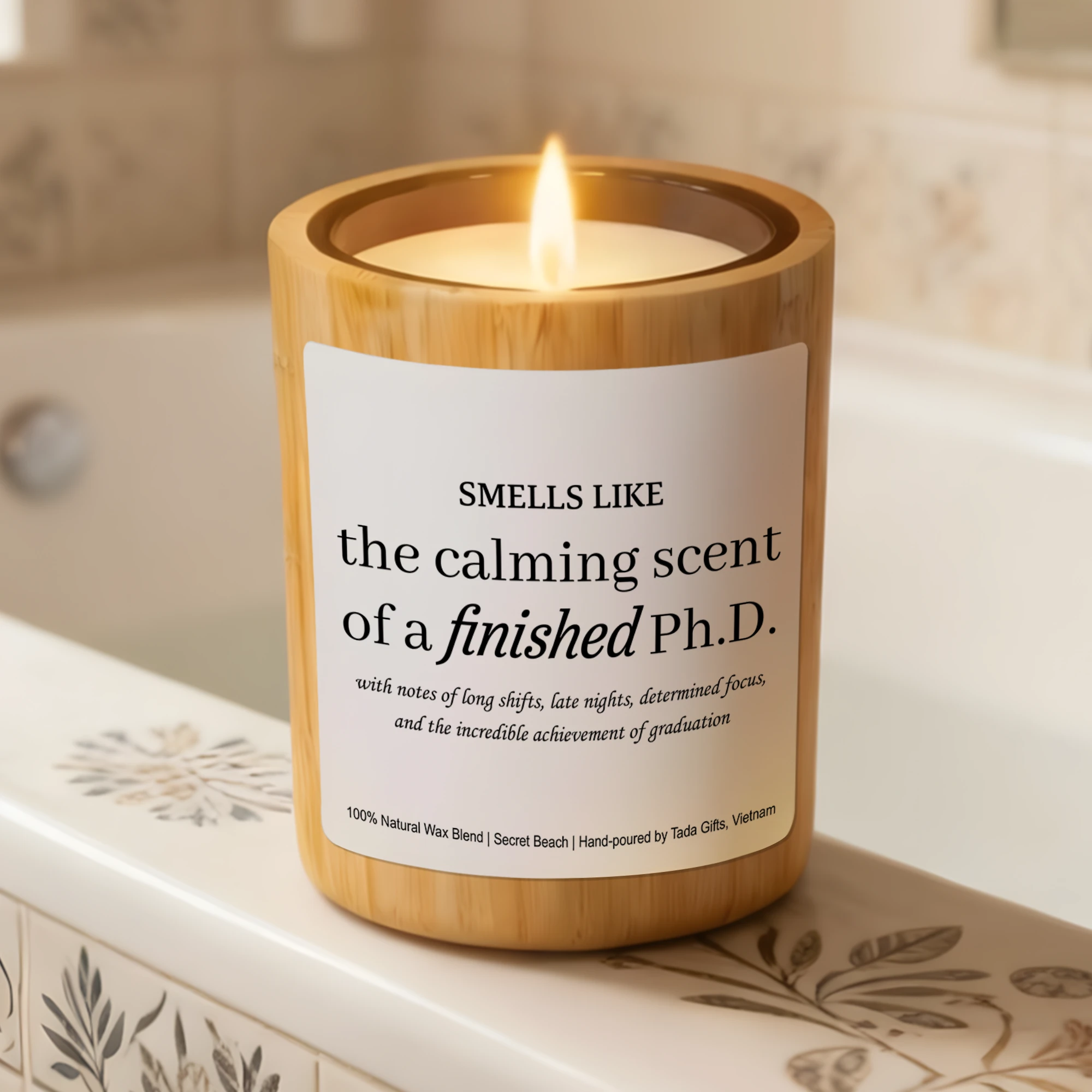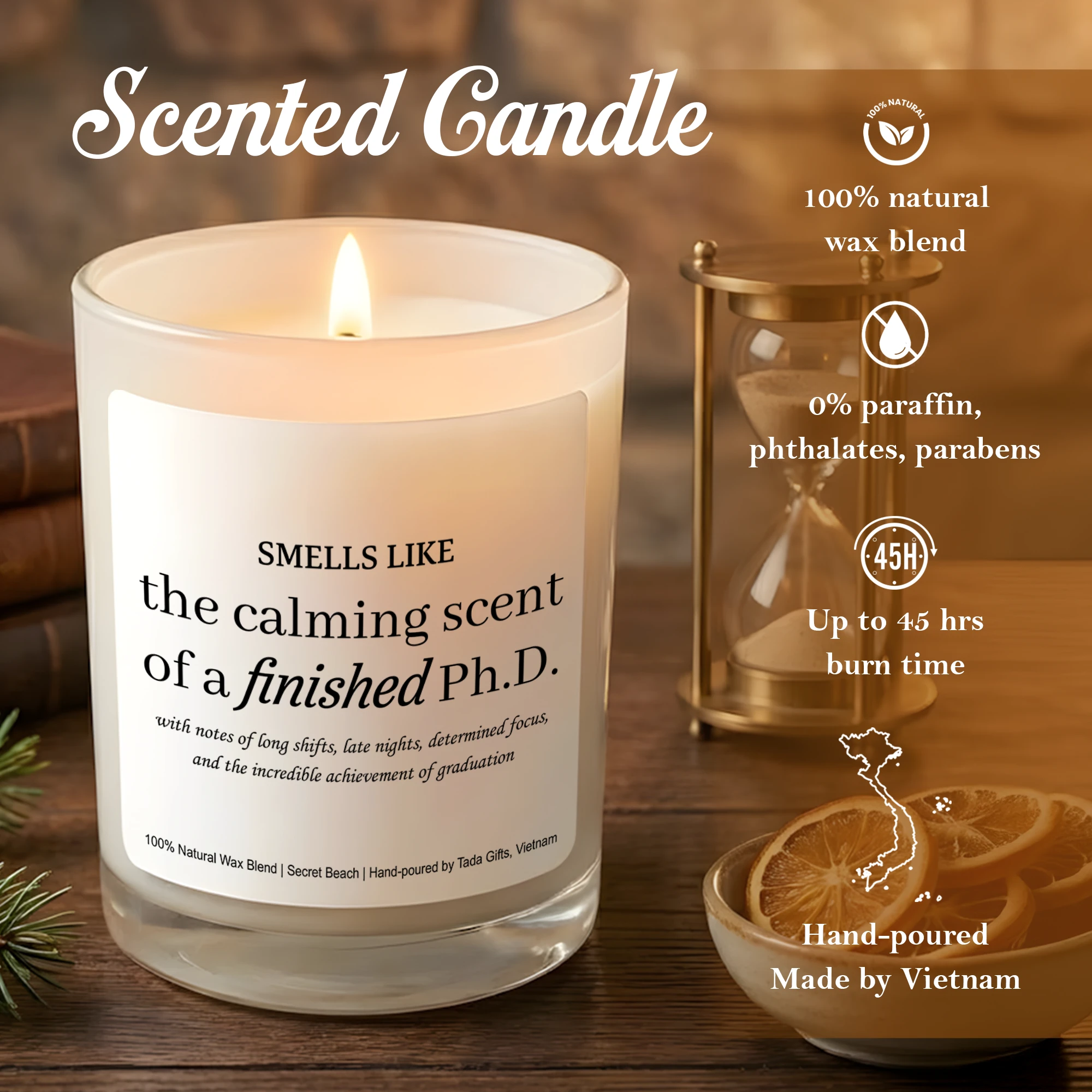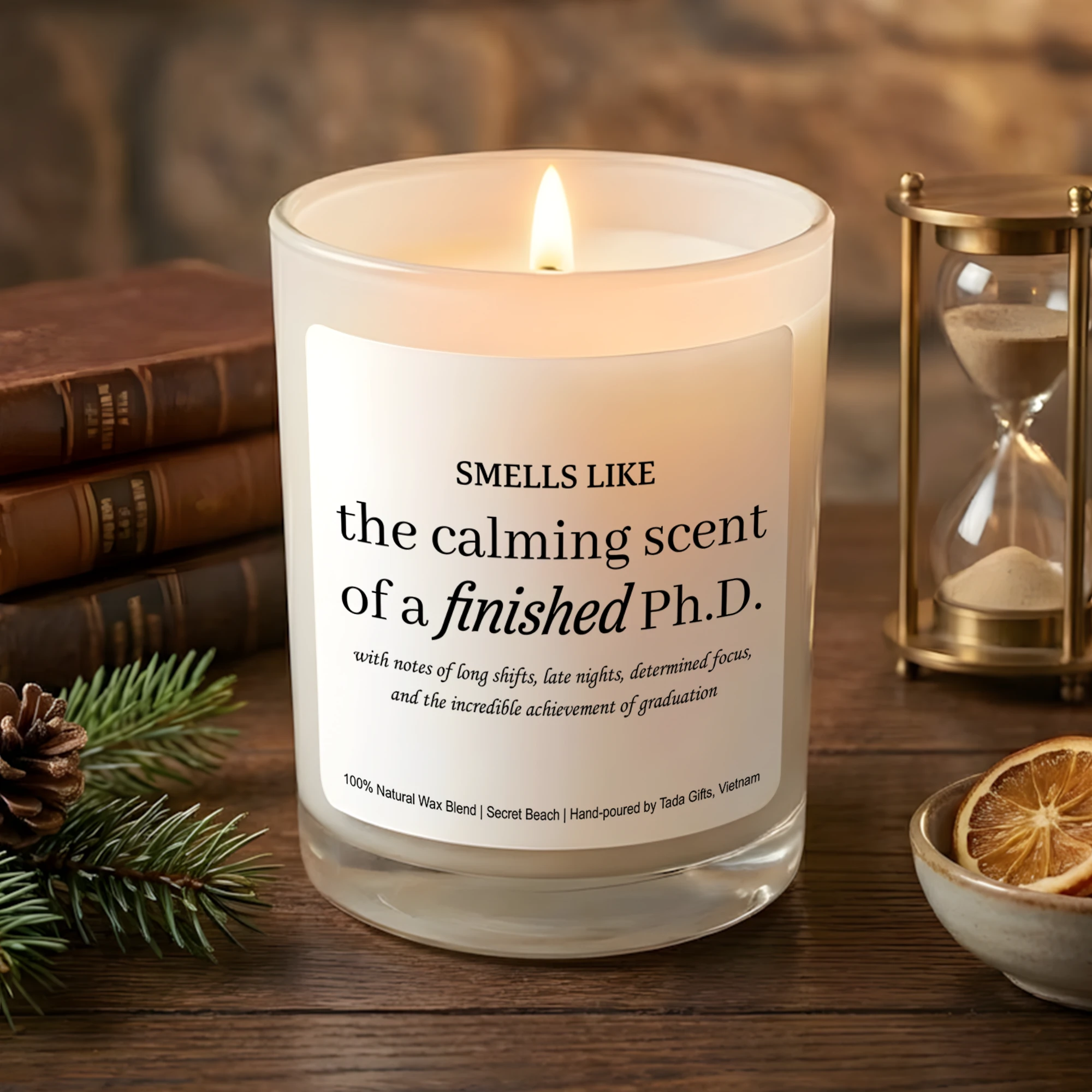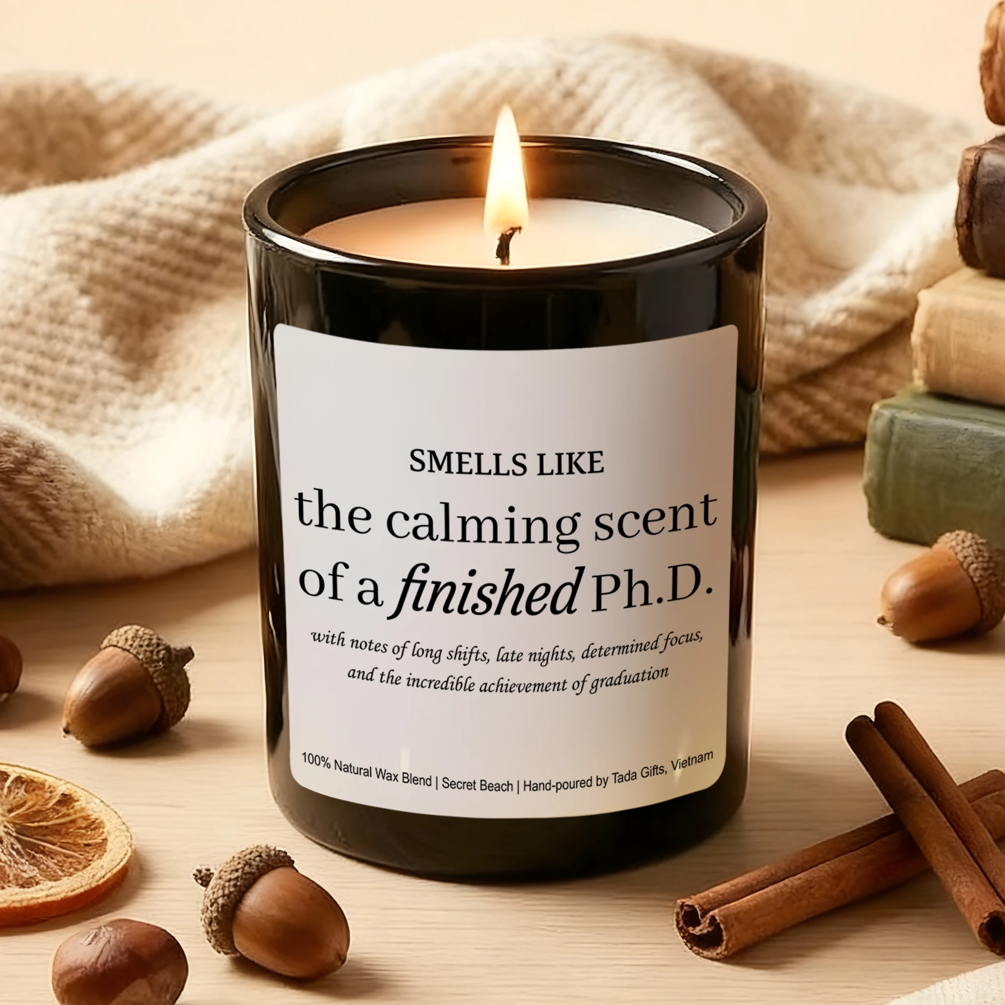 PhD Graduation Candle, Smells Like a Finished Ph.D. Candle, Personalized Doctor of Philosophy Gift, Dissertation Defense Gift, New PhD Gift