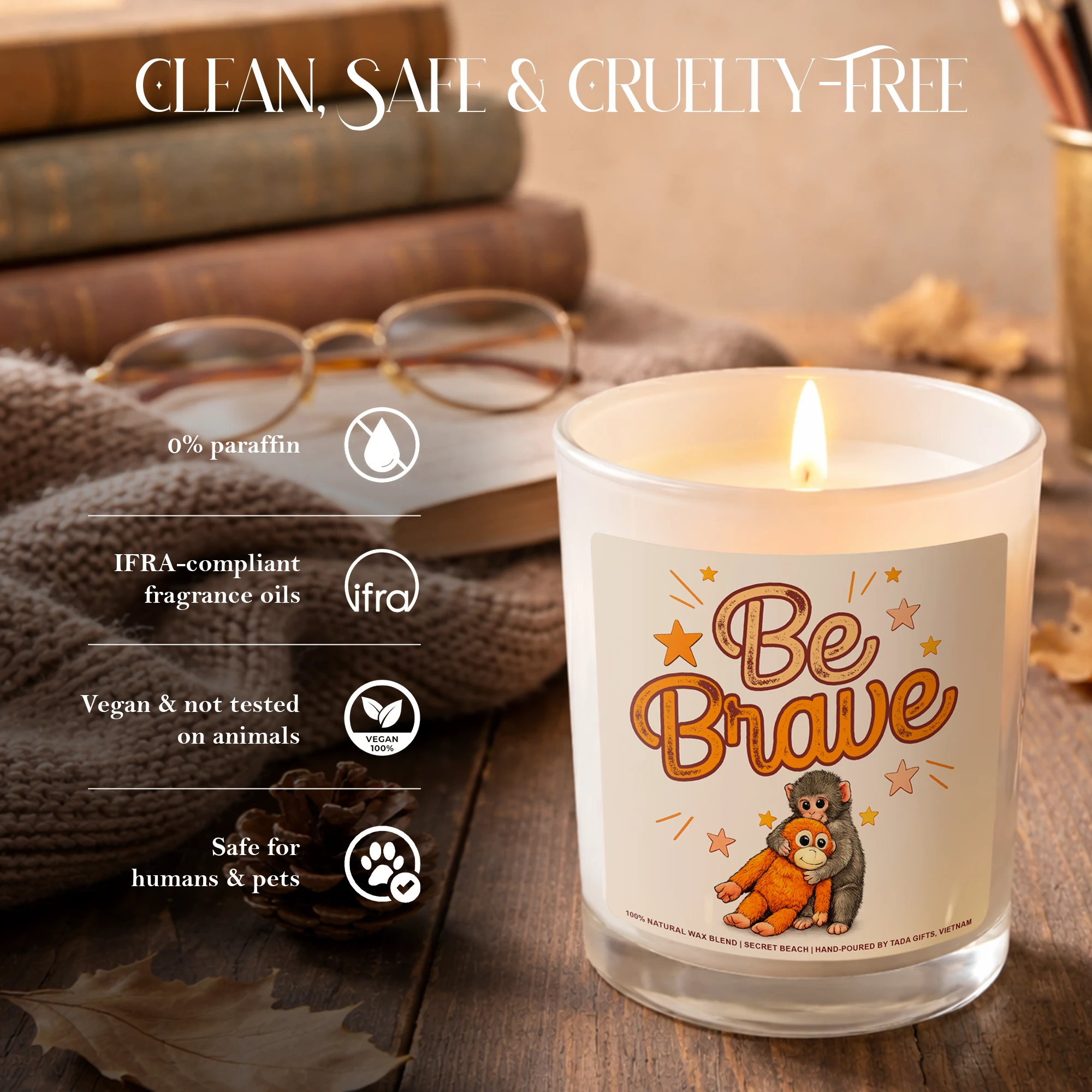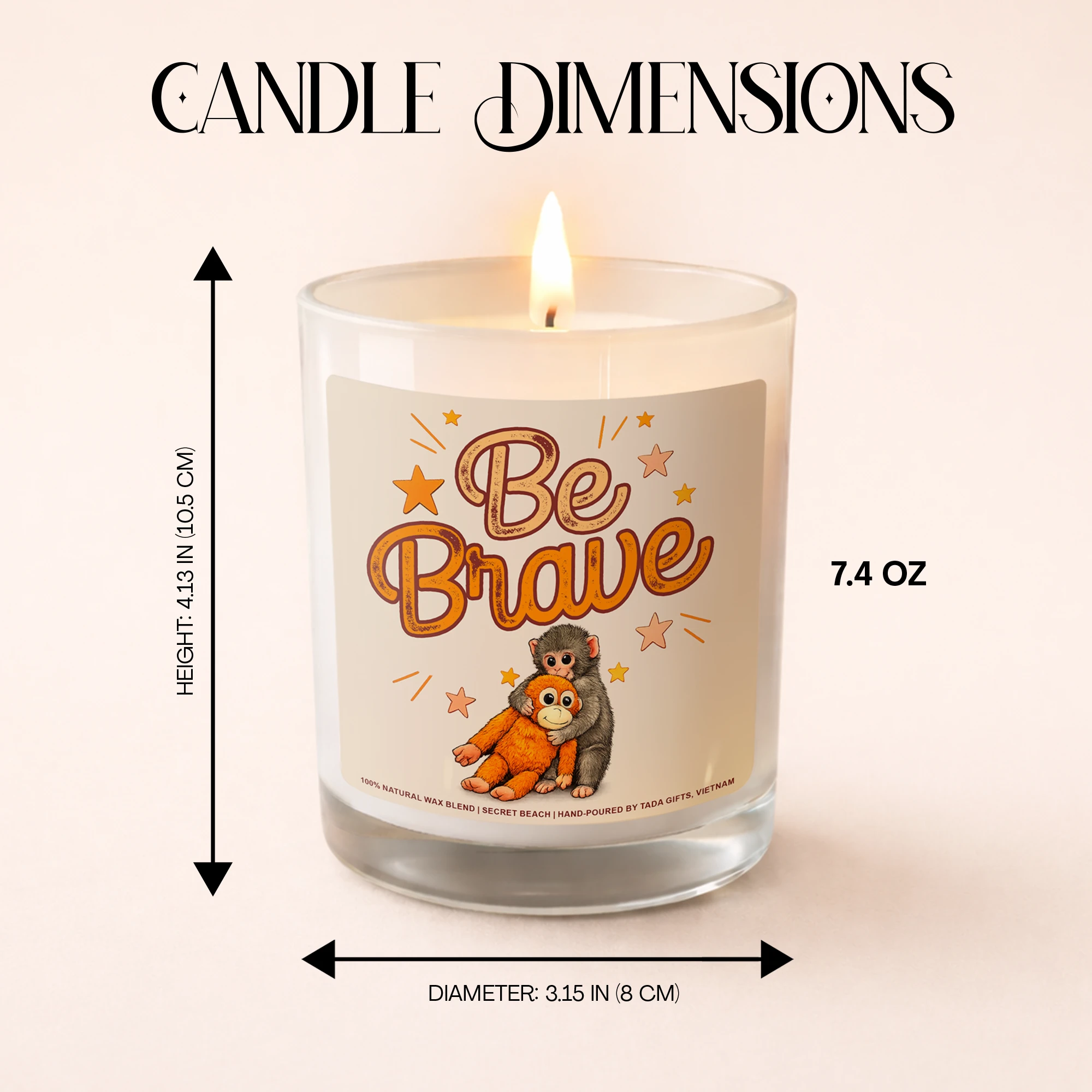 Be Brave Monkey Candle, Encouragement Gift, Emotional Support Gift, Cute Monkey Candle, Monkey Lover Gift, Inspirational Candle