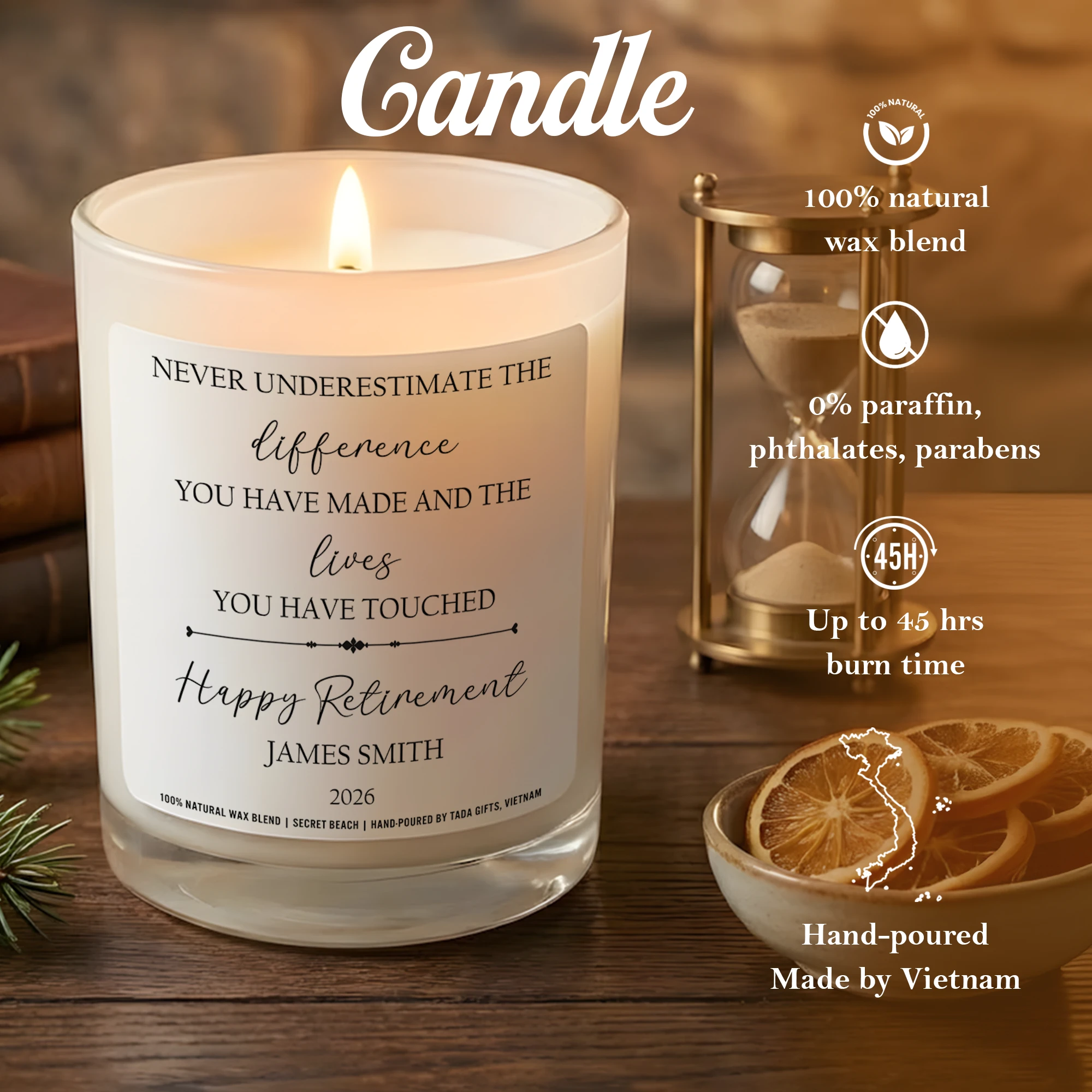 Retirement Gift Candle, Personalized Happy Retirement Candle, Farewell Gift for Coworker, Going Away Gift, Retirement Gifts for Women