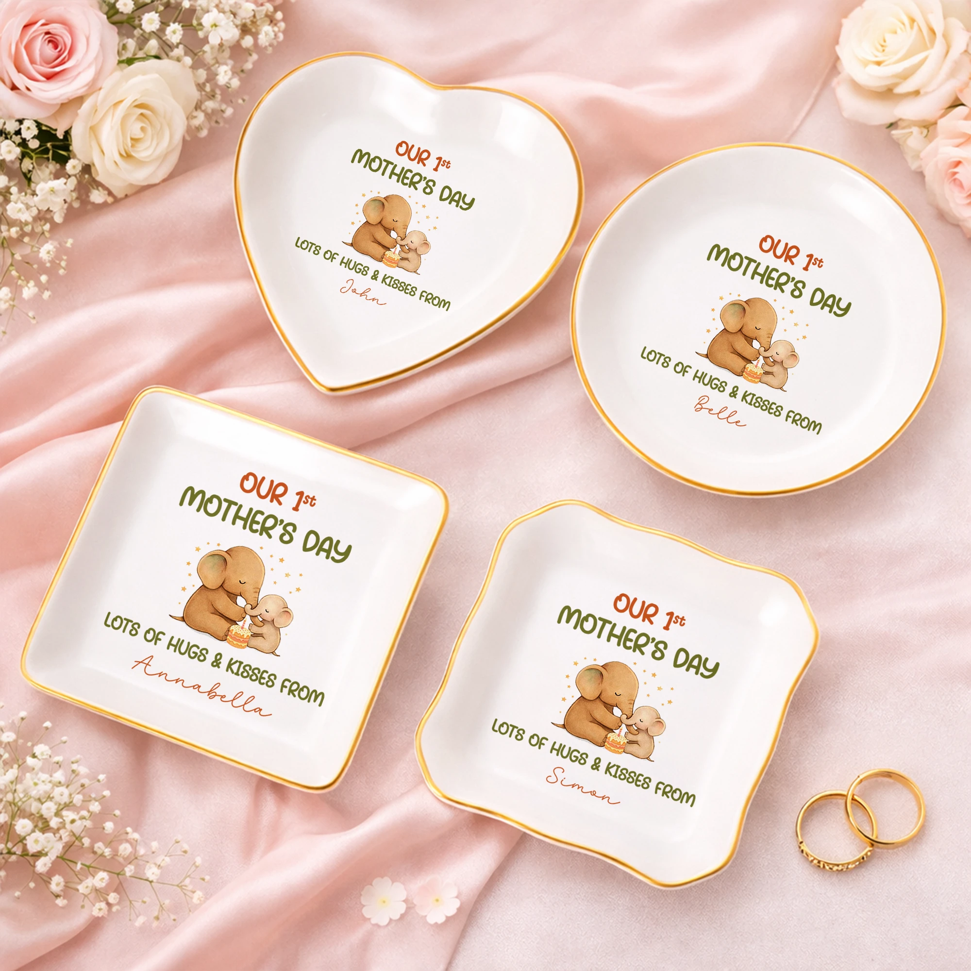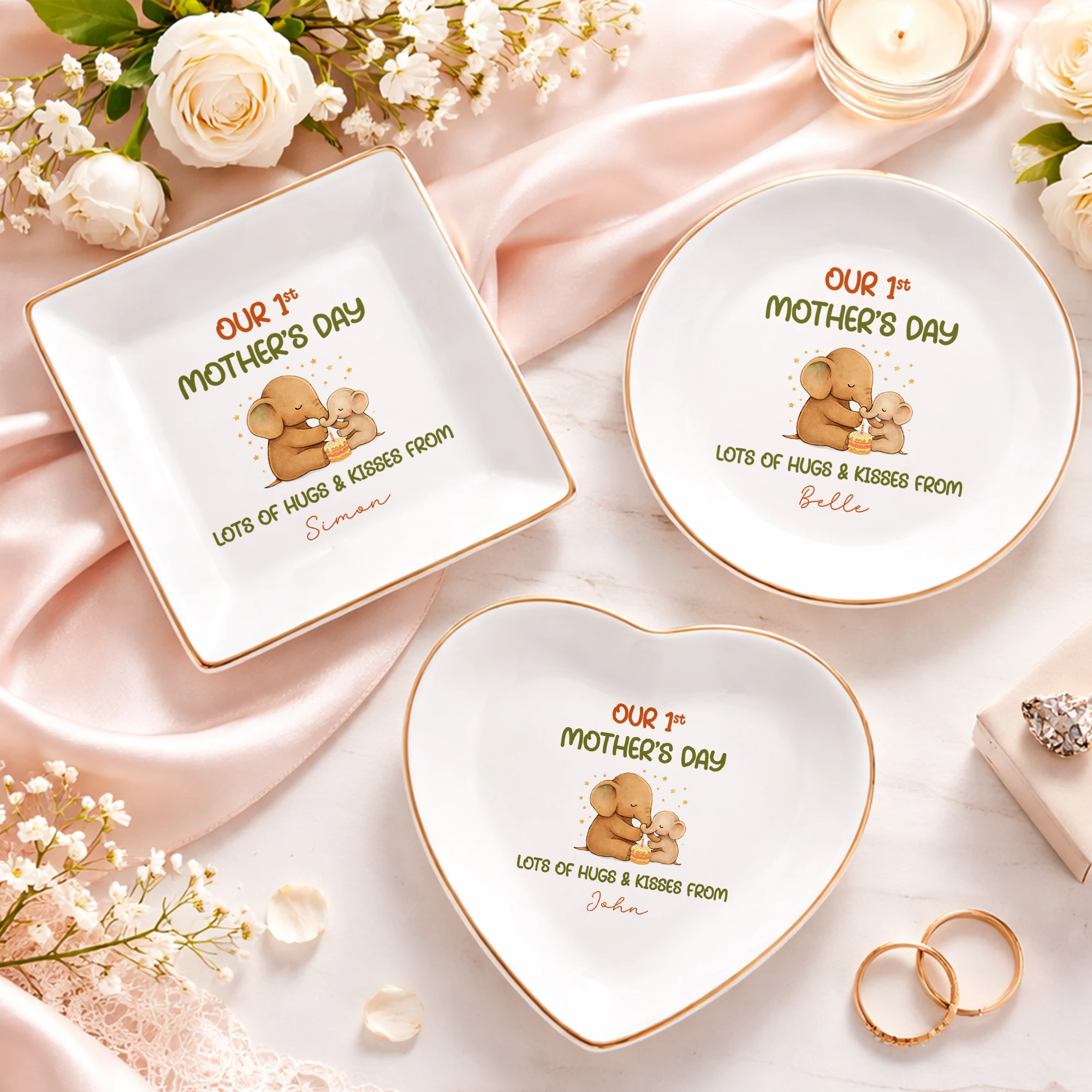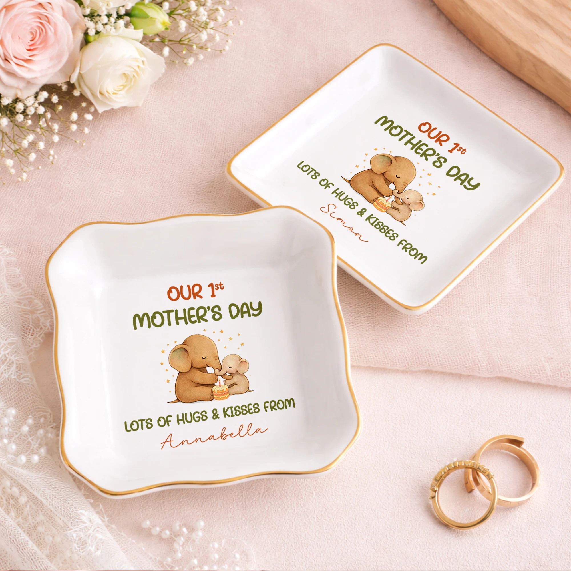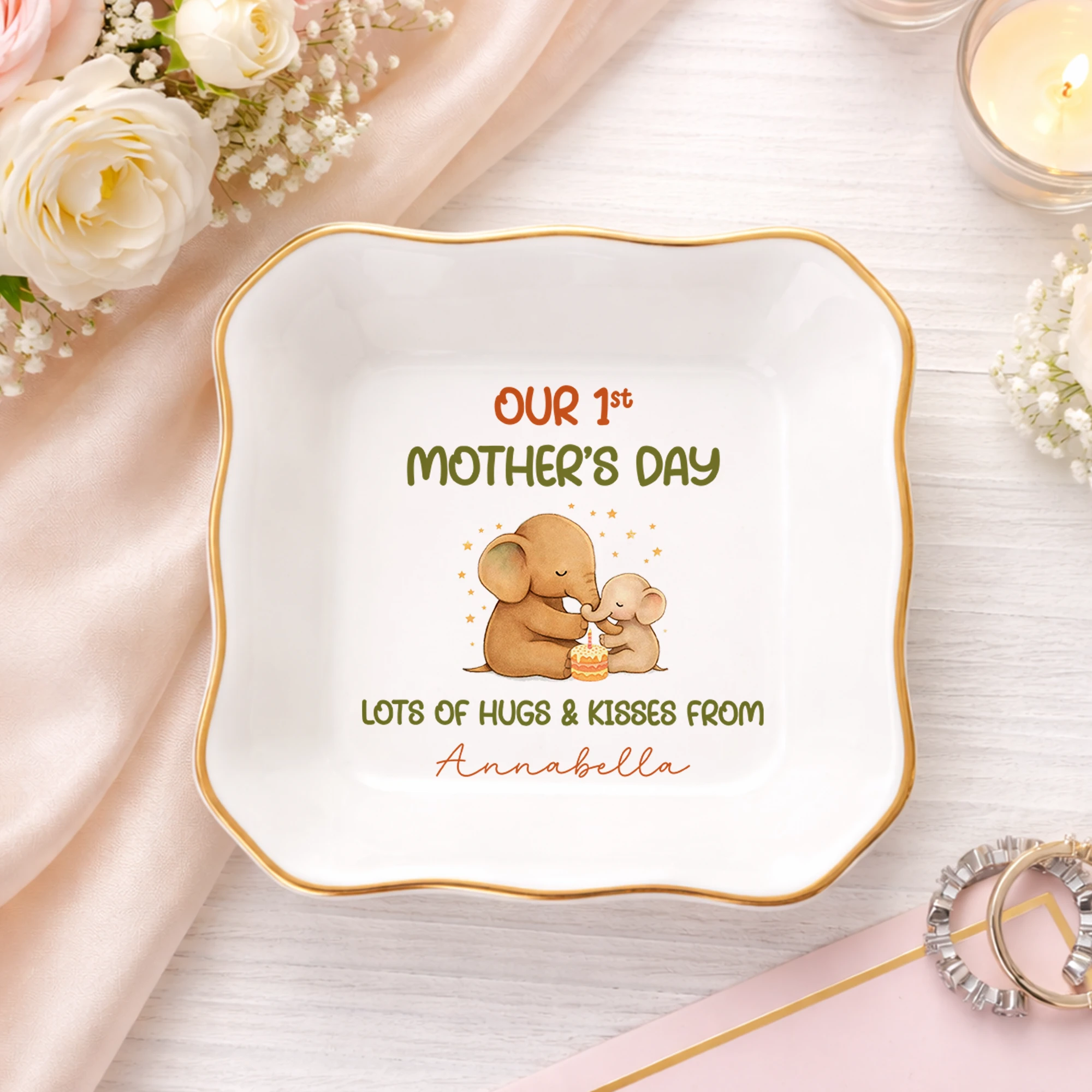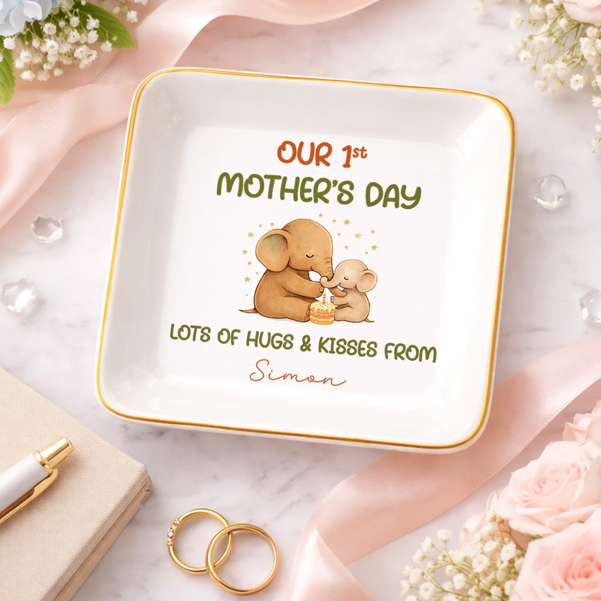 Ring Dish, First Mother’s Day Gift, Mom To Be Keepsake, Gold Rim Jewelry Holder