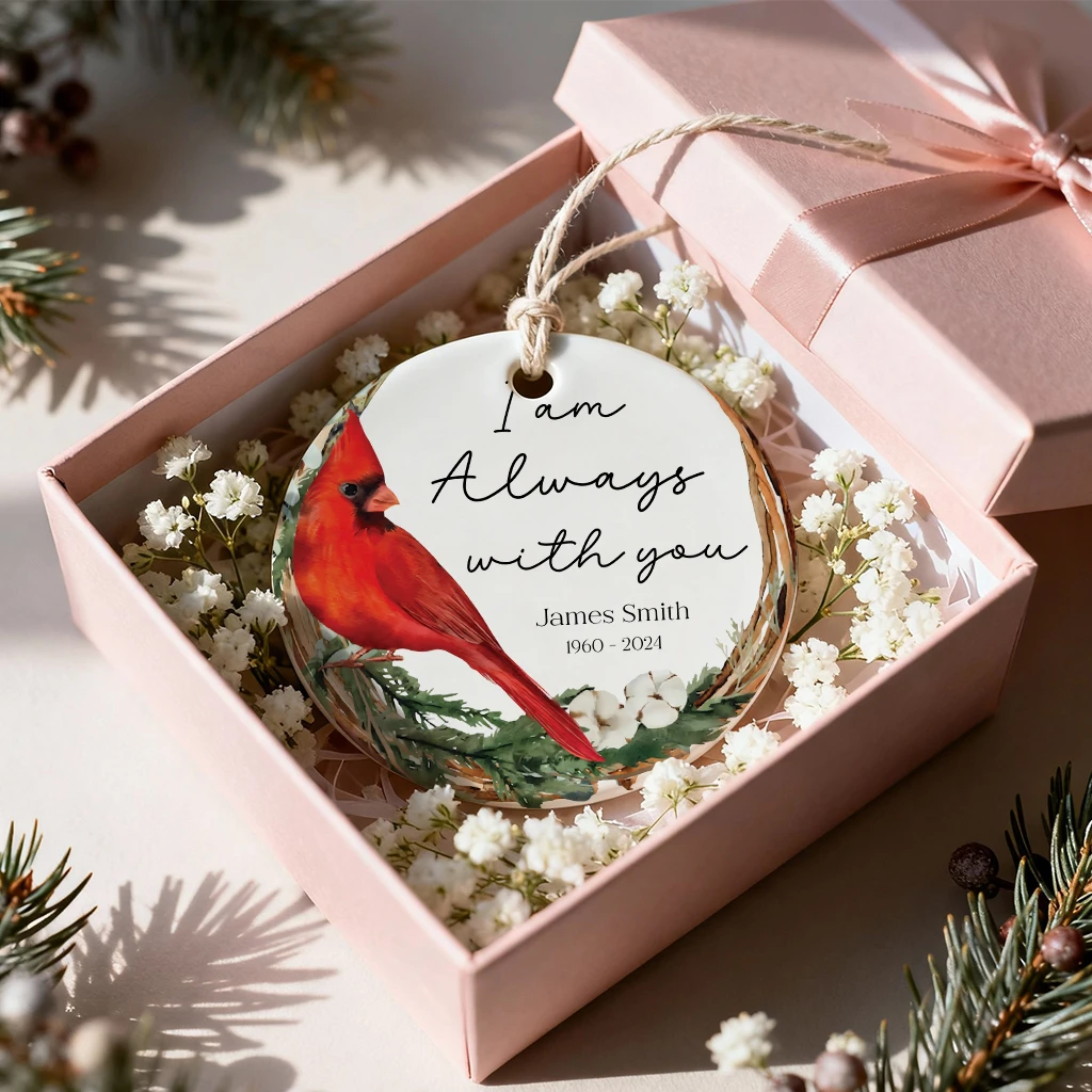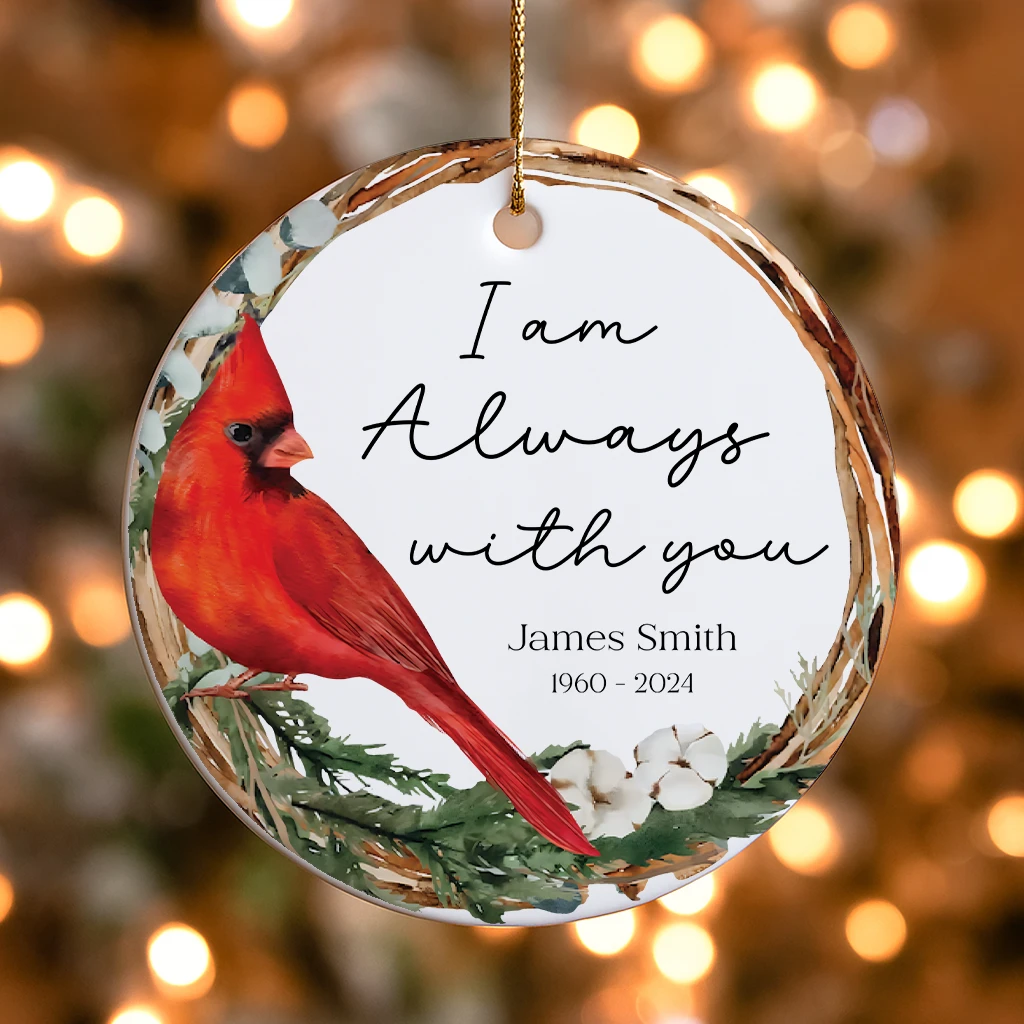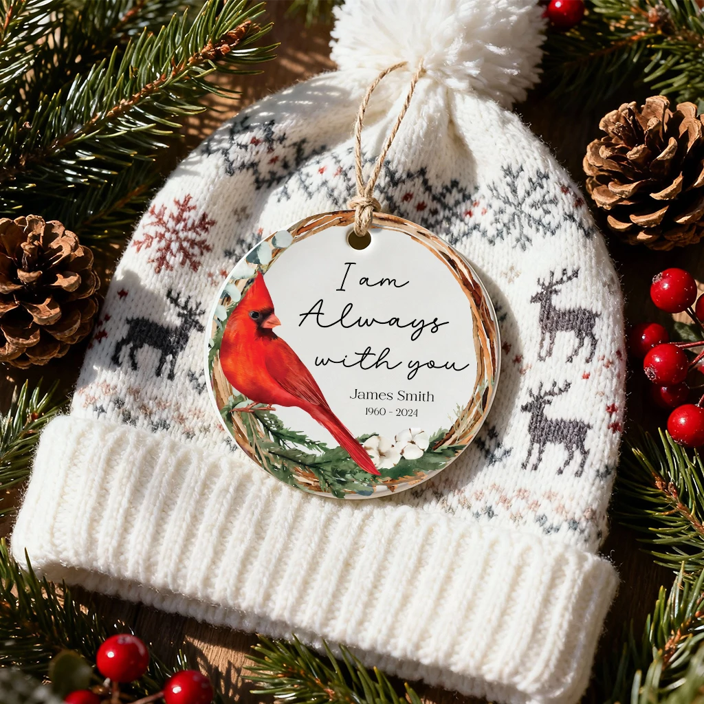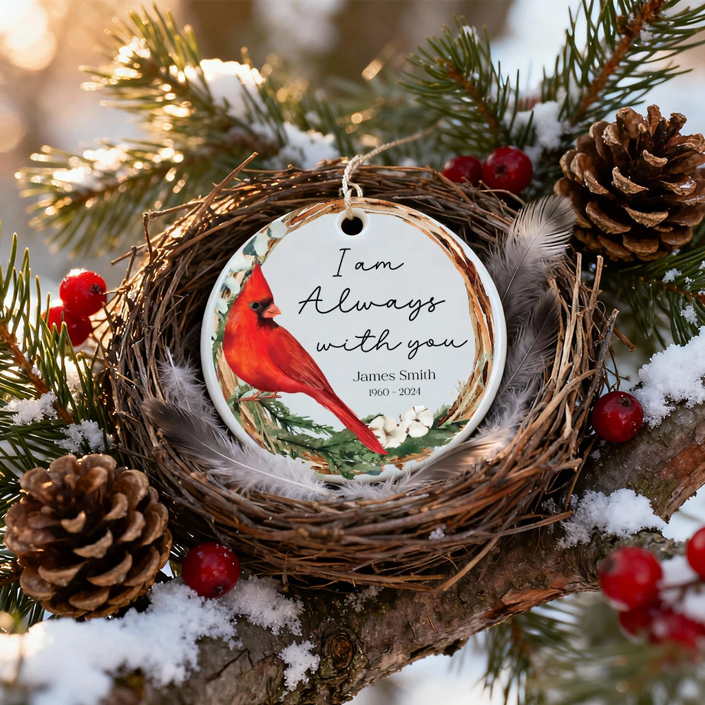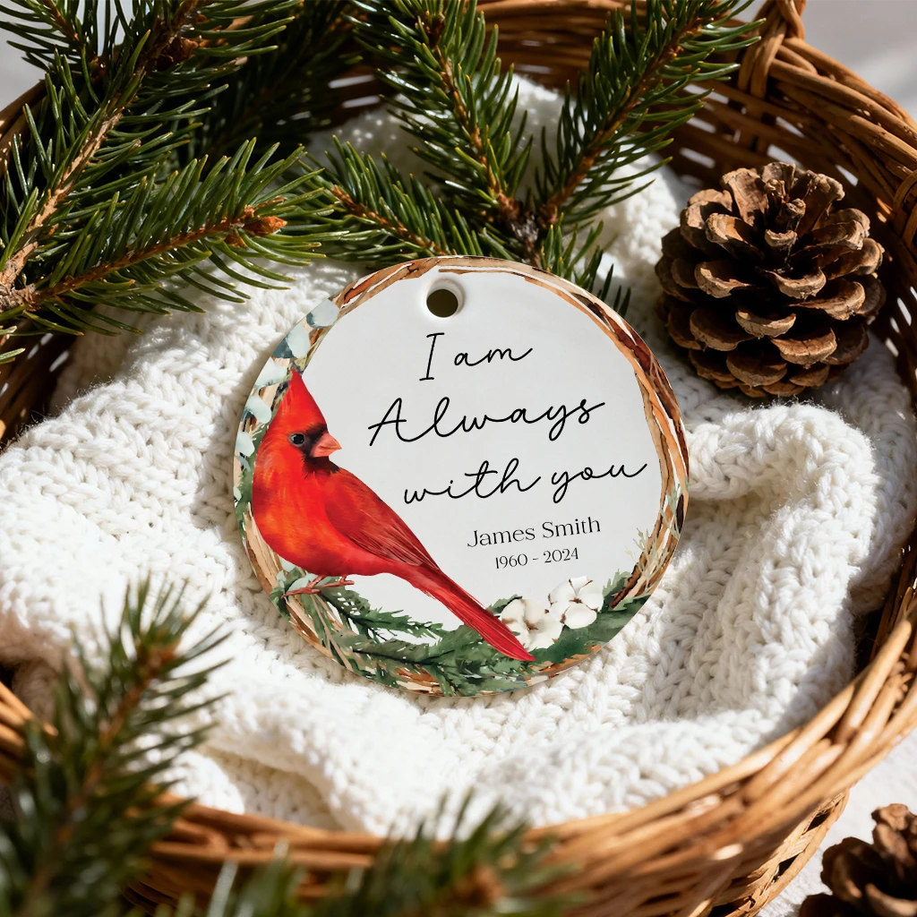 Round Ceramic Cardinal Keepsake 2025 | Custom Name & Year Keepsake | “I Am Always With You” Sympathy Gift