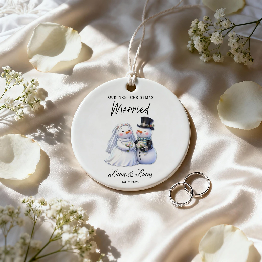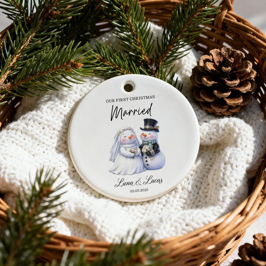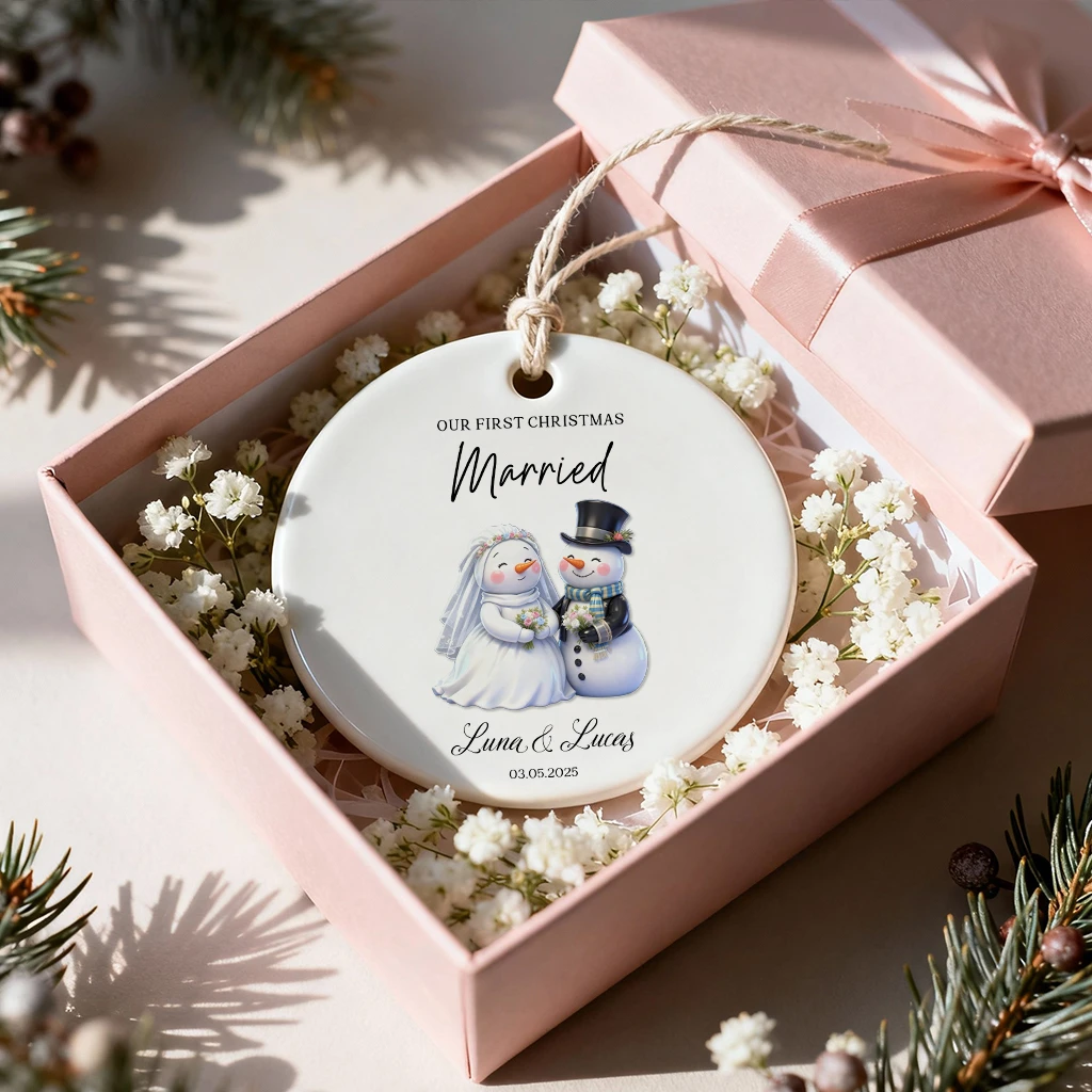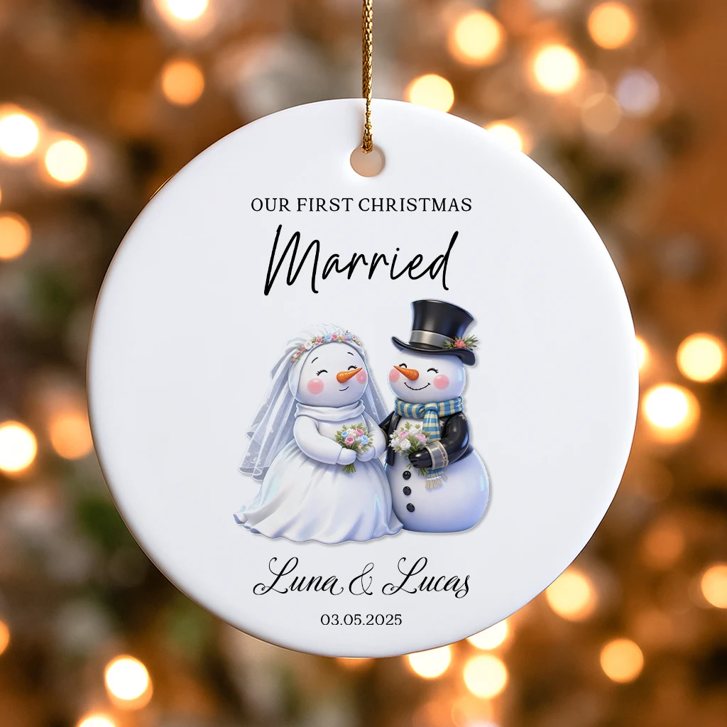 Snowman Wedding Dress Ornament | First Christmas as Mr. & Mrs. 2025 Decor | Personalized Bride and Groom Keepsake for Couple