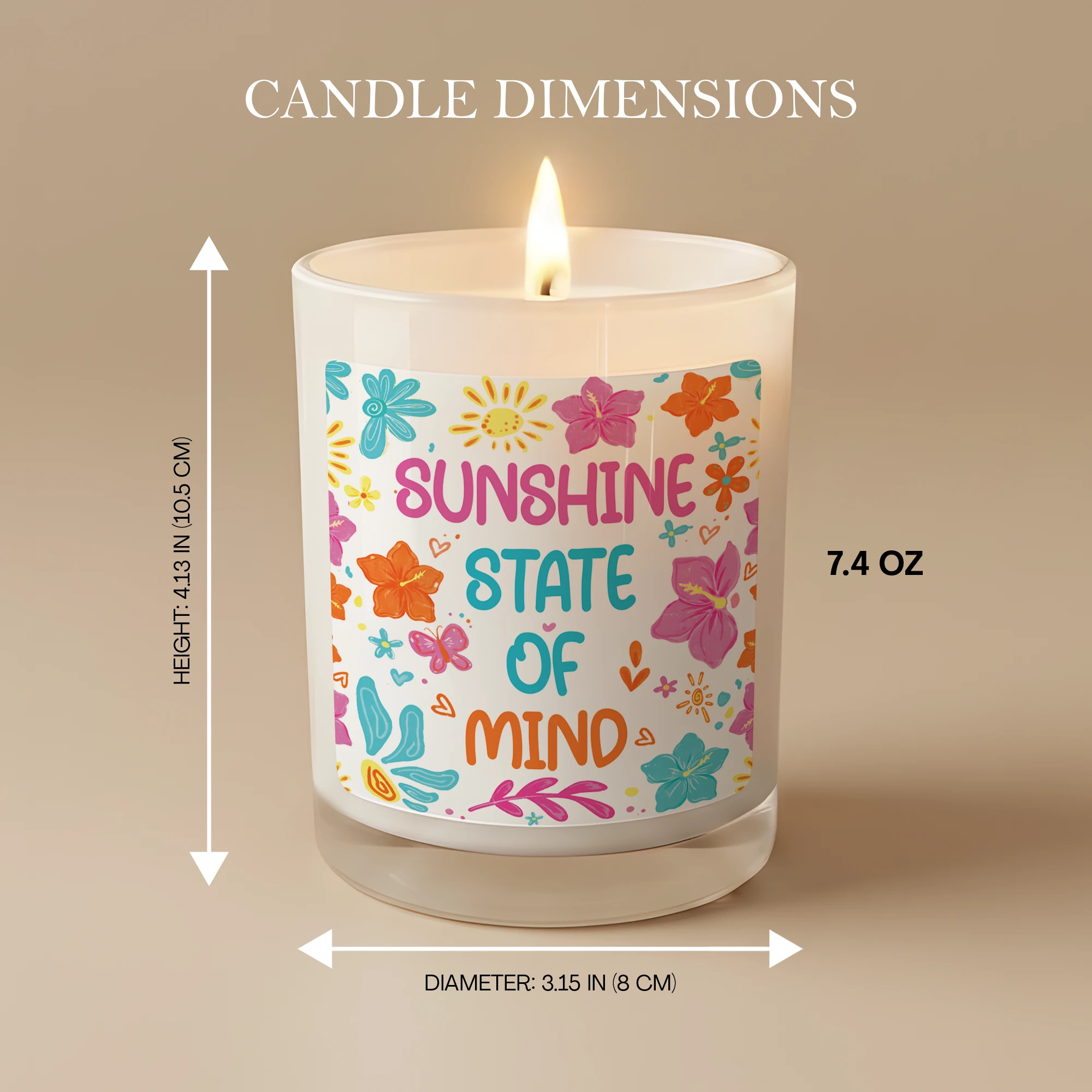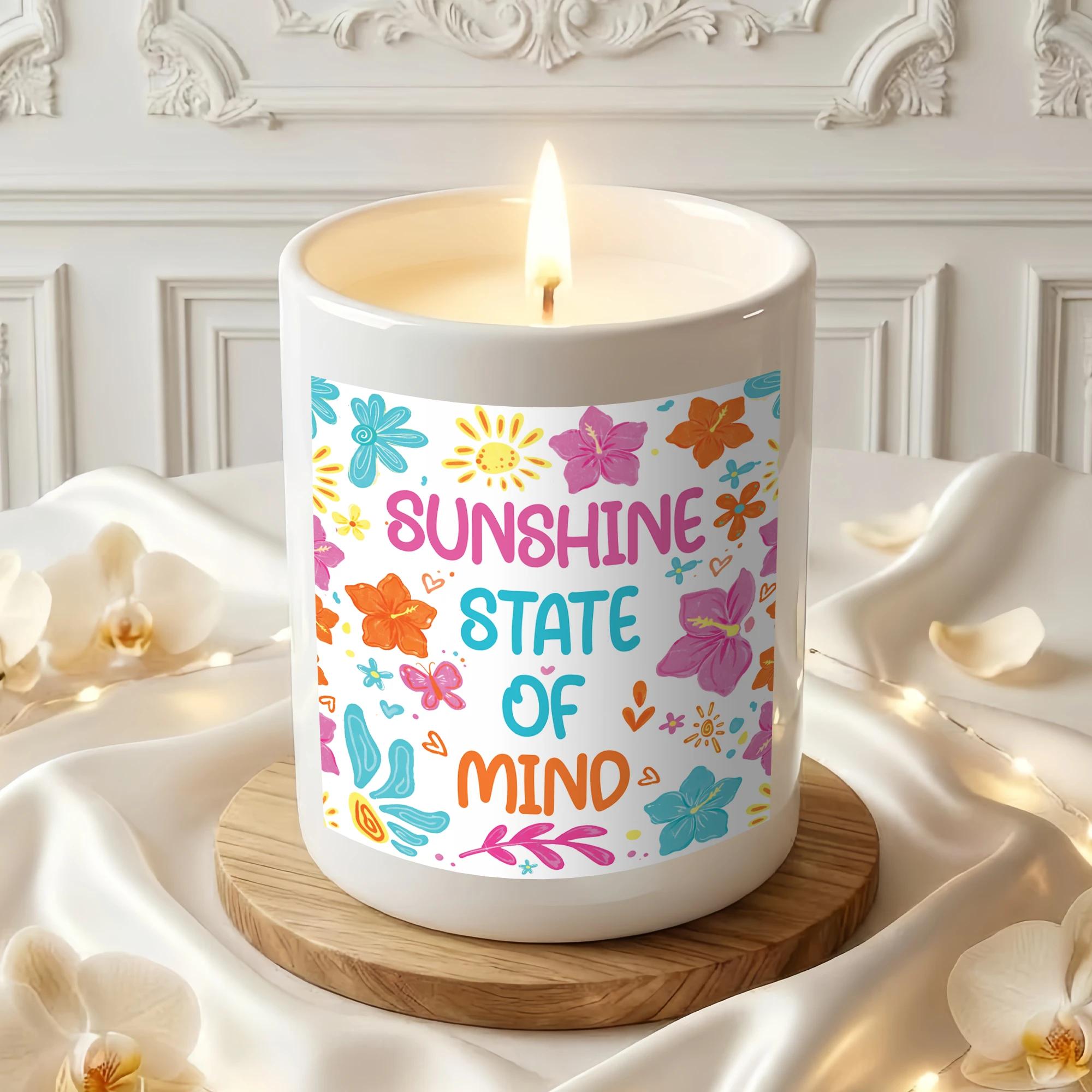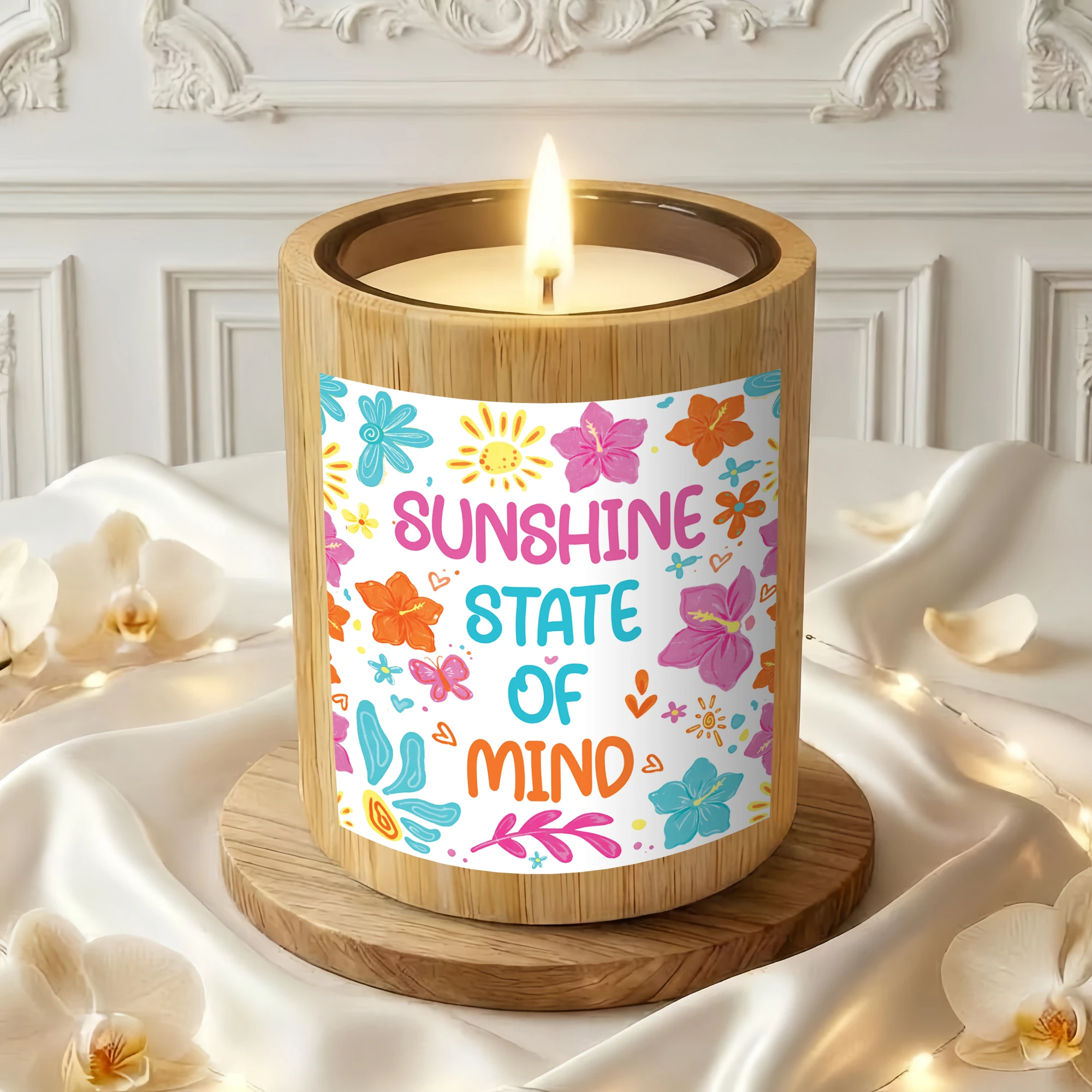 Sunshine State of Mind Candle – Tropical Flower Aesthetic Decor – Positive Quote Gift for Her – Summer Vibes Scented Candle – Bright Floral Gift
