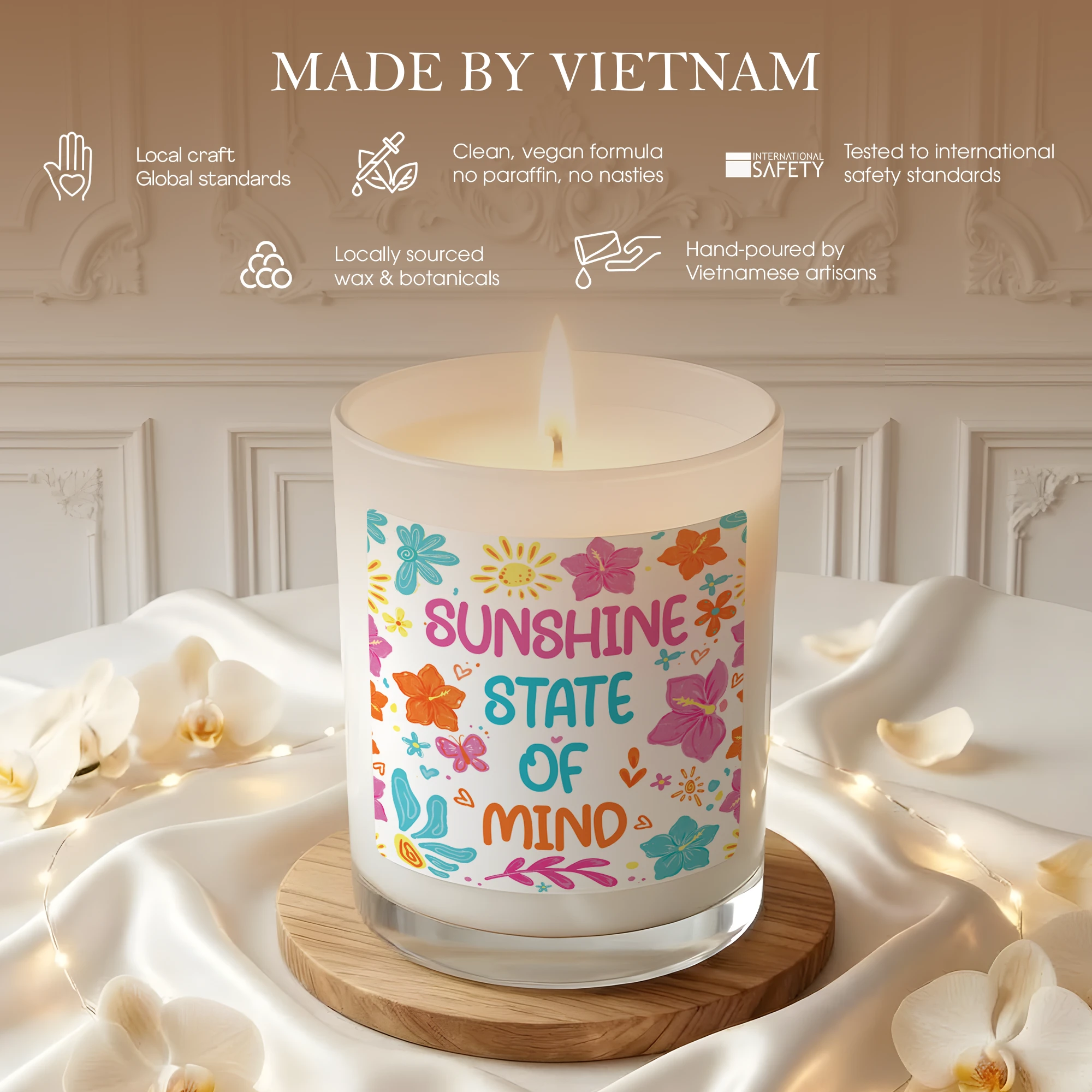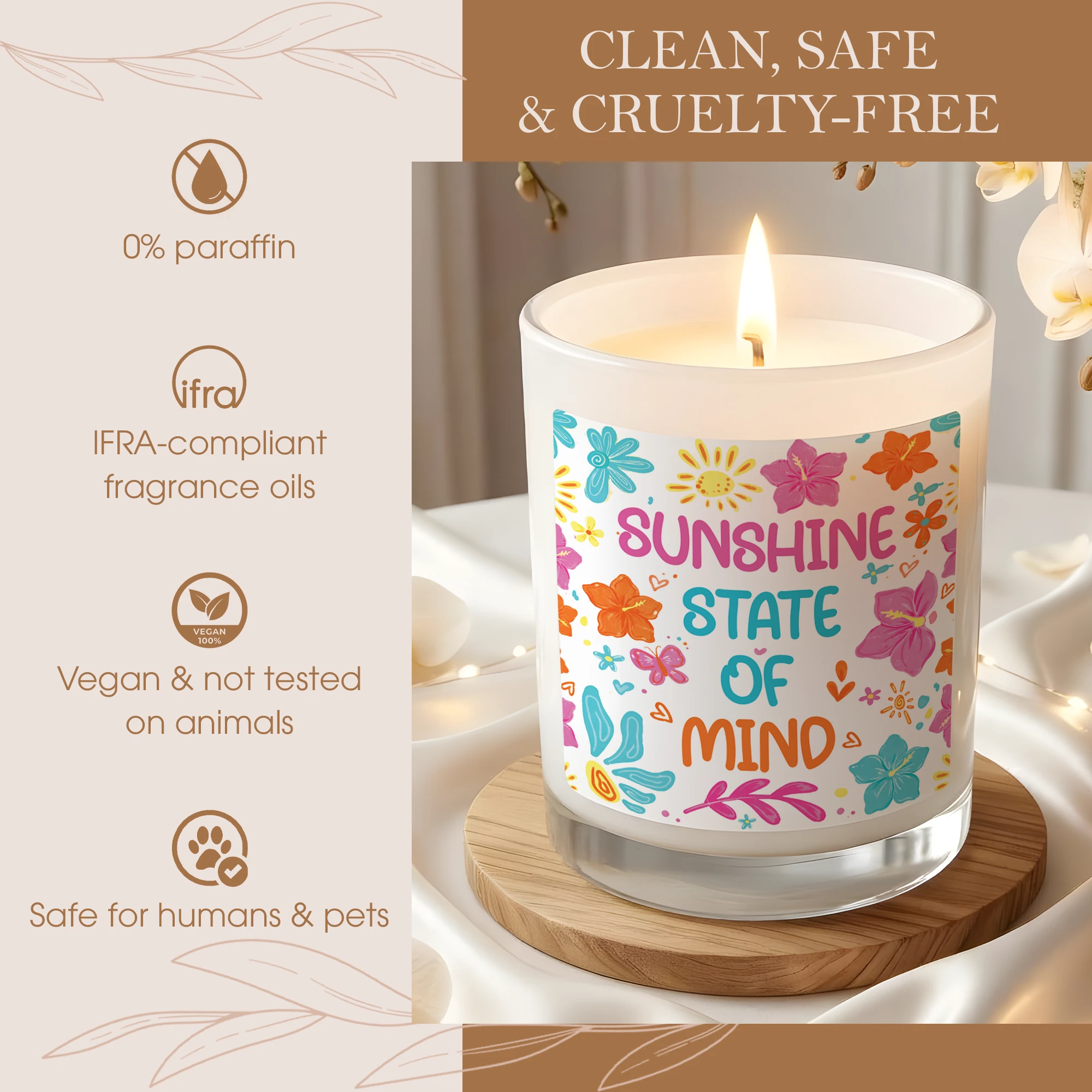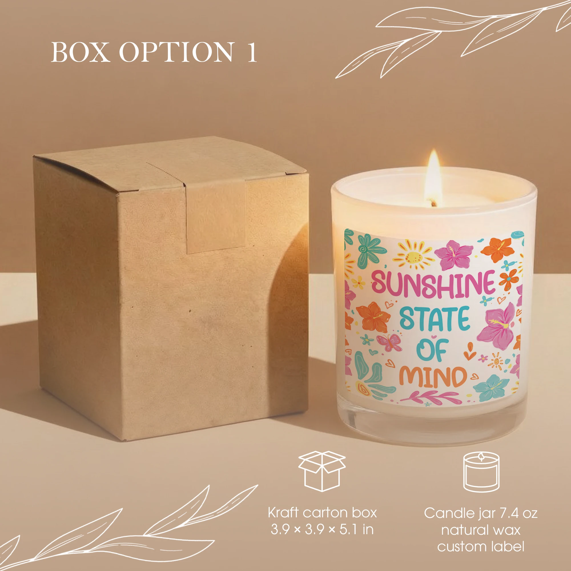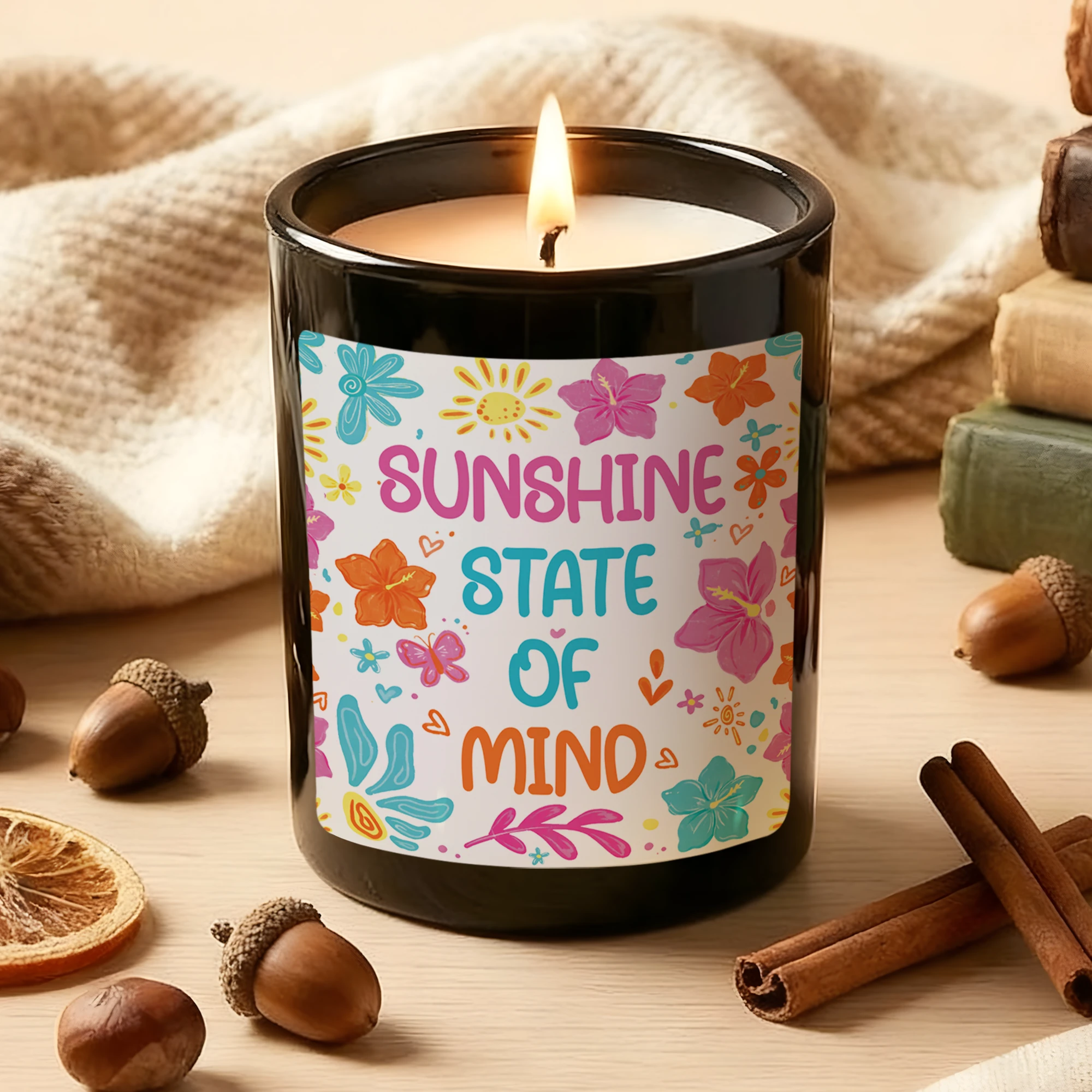 Sunshine State of Mind Candle – Tropical Flower Aesthetic Decor – Positive Quote Gift for Her – Summer Vibes Scented Candle – Bright Floral Gift