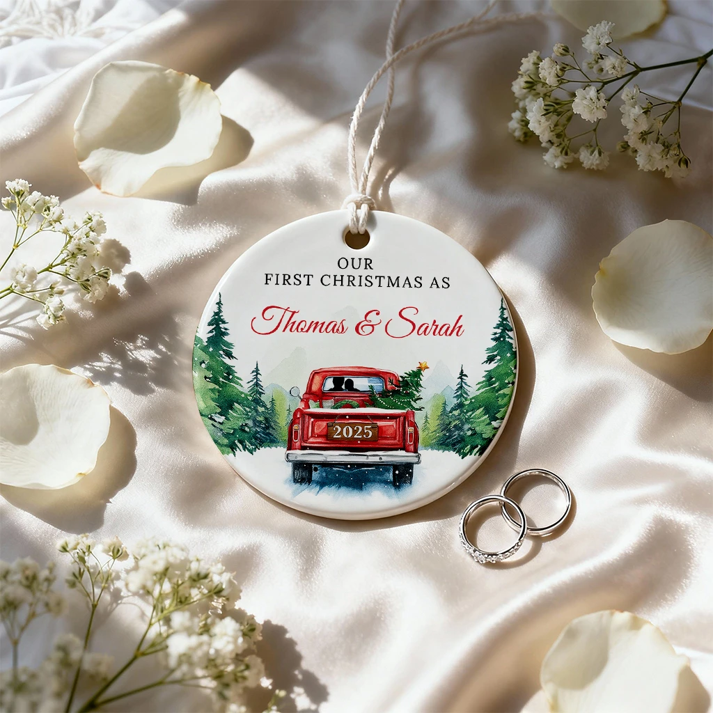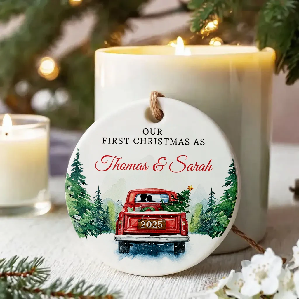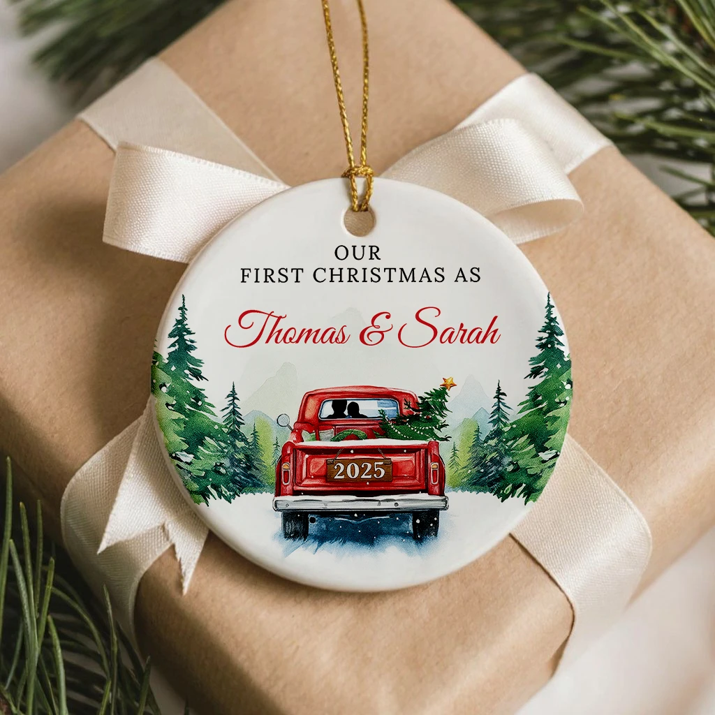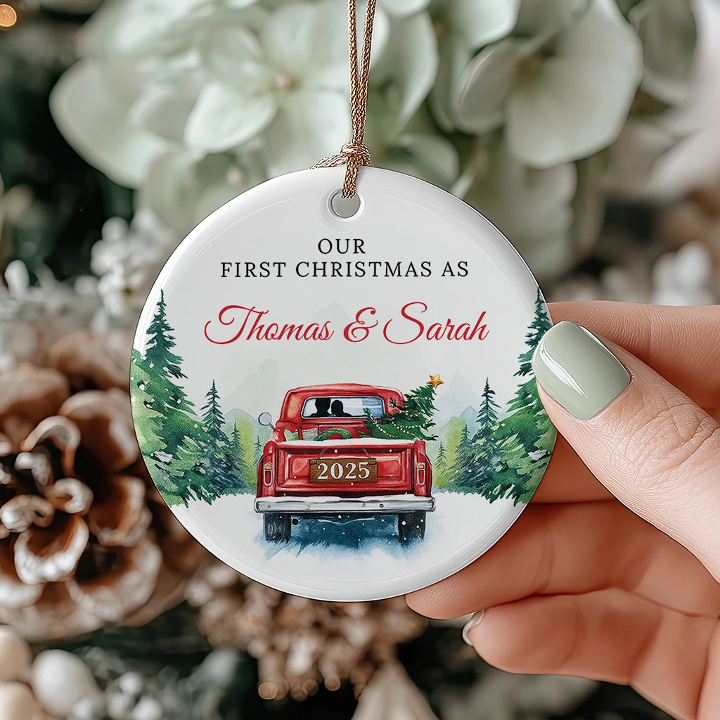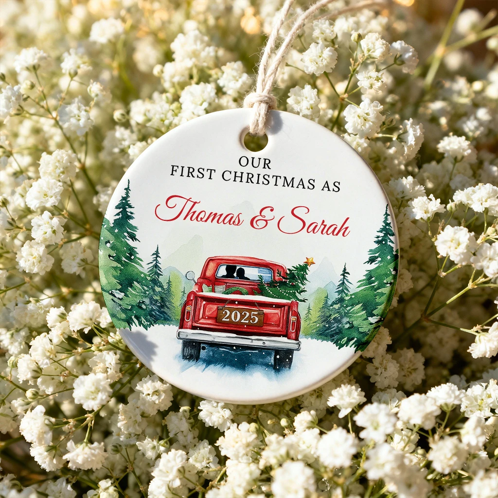 Vintage Christmas Truck Ornament 2025 | Personalized Holiday Farmhouse Decor | Our First Christmas as Thomas & Sarah 2025