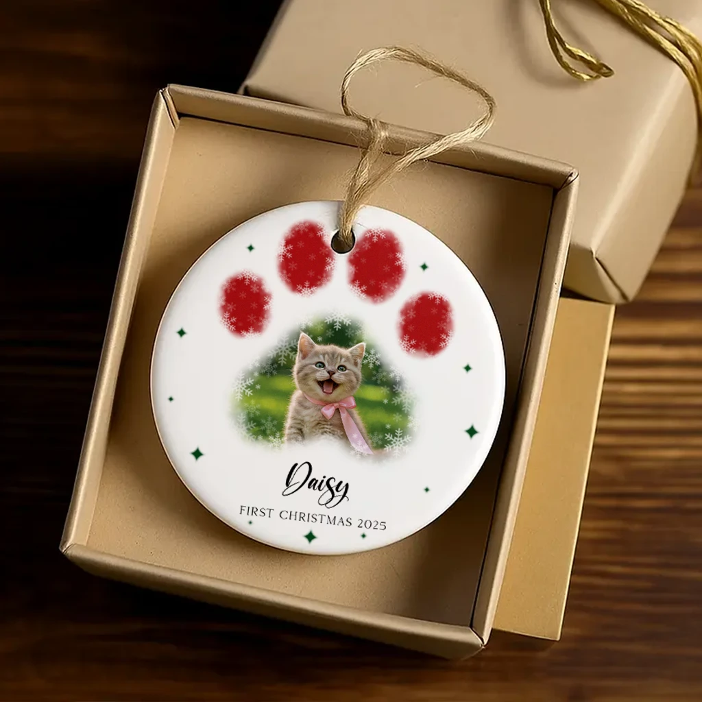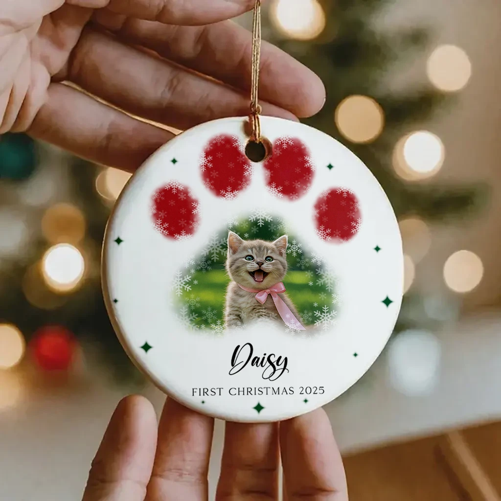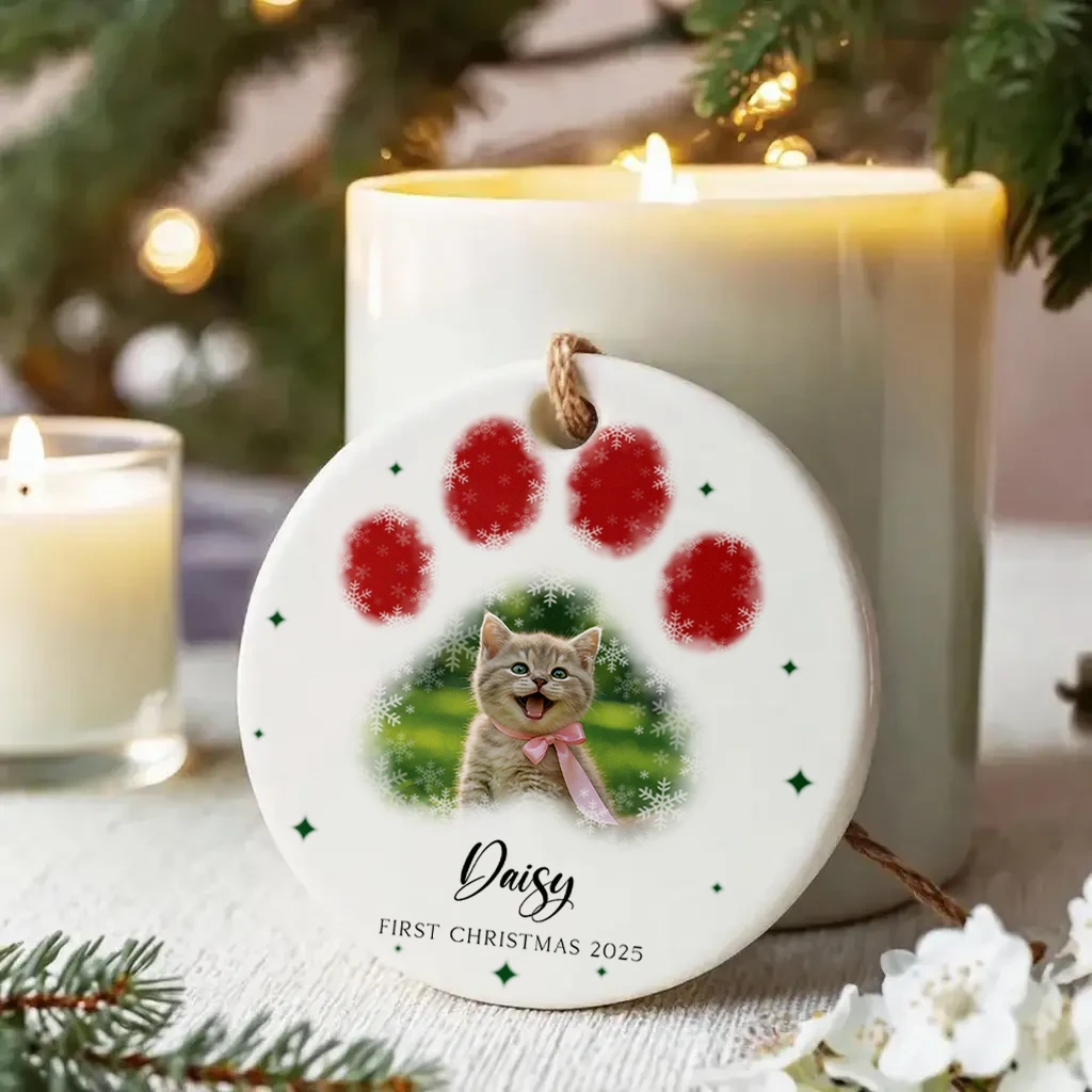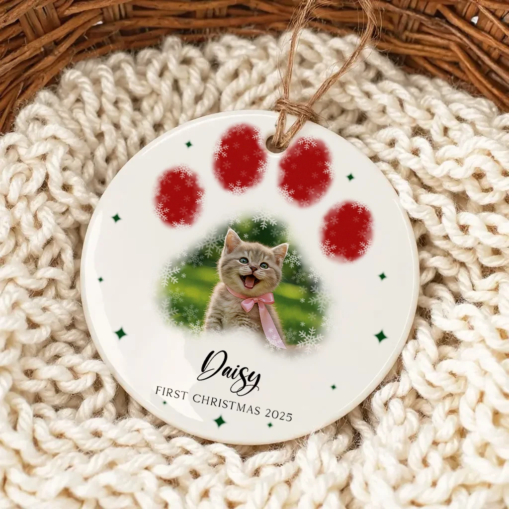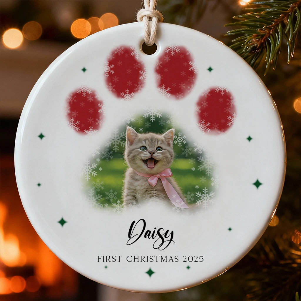Handcrafted Watercolor Cat Paw Print Ornament | Unique Christmas Gift for Pet Lovers | Perfect Christmas Ornament