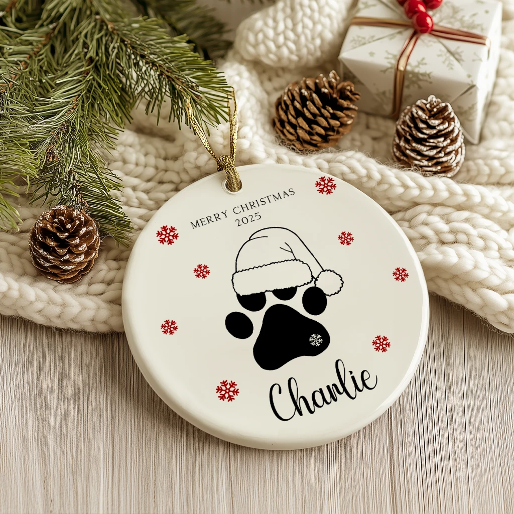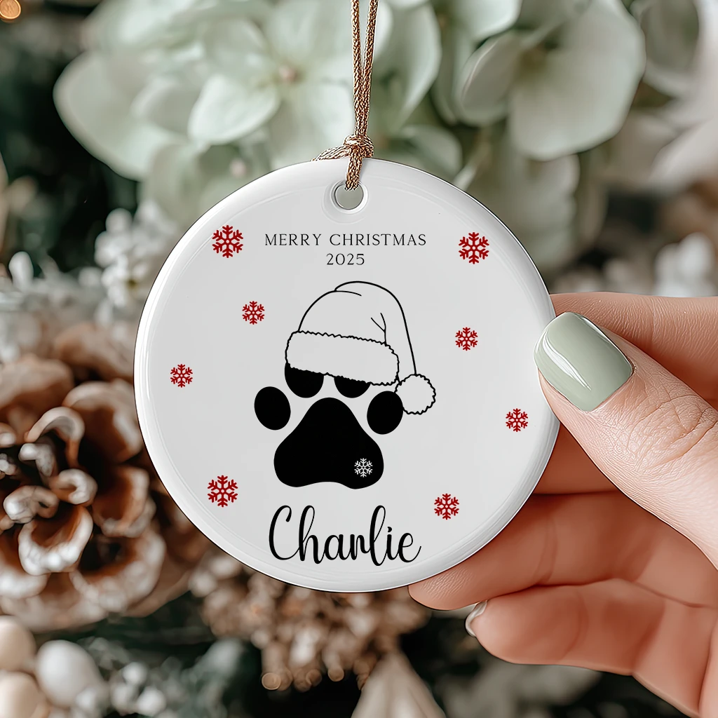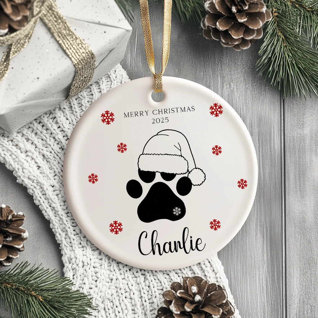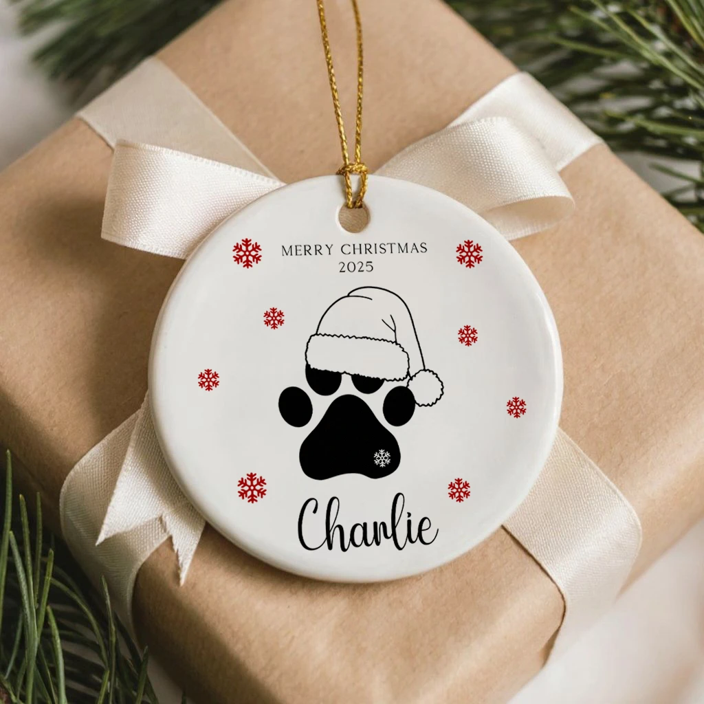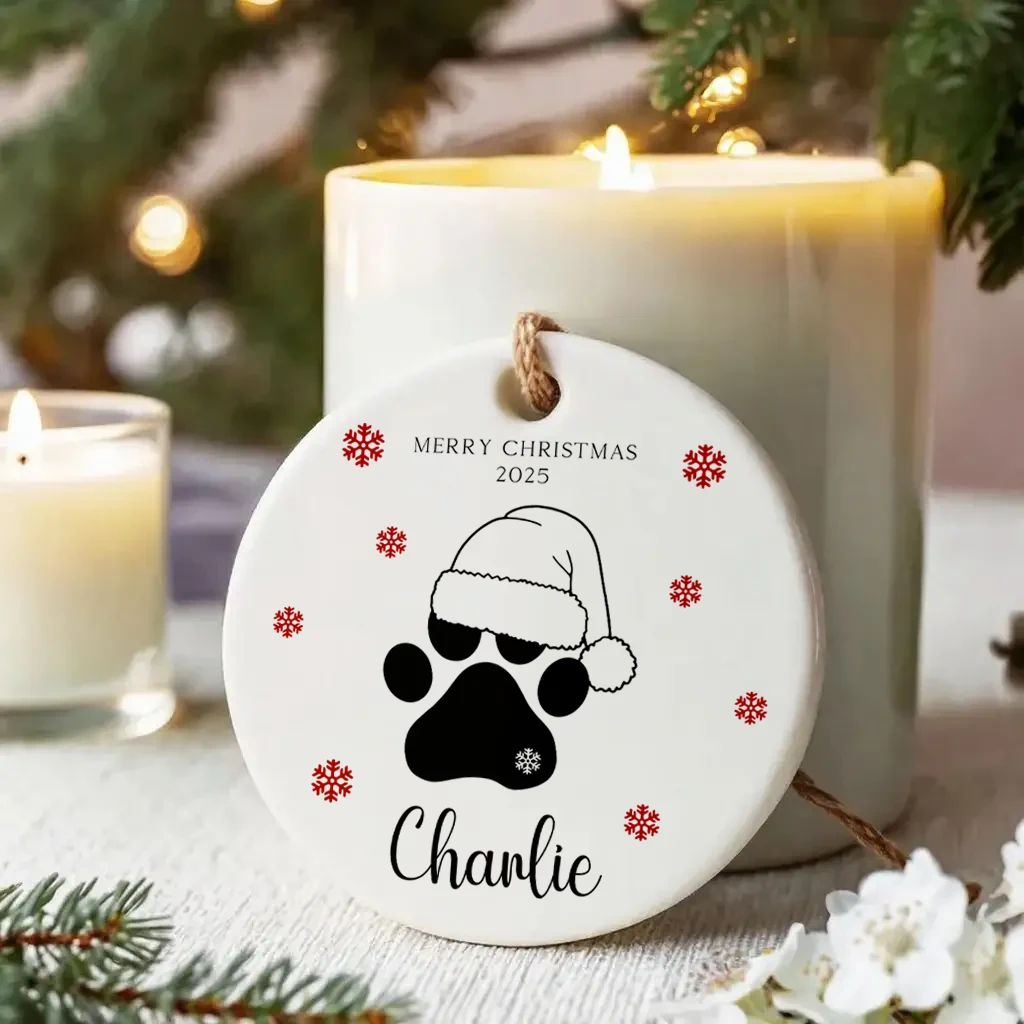 White Ceramic Cat Paw Print Ornament | Custom Christmas Gift for Cat Parents