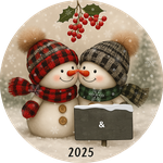 Winter Snowman Couple Ornament | Plaid Hat and Scarf Christmas Decoration | Personalized Holiday Gift
