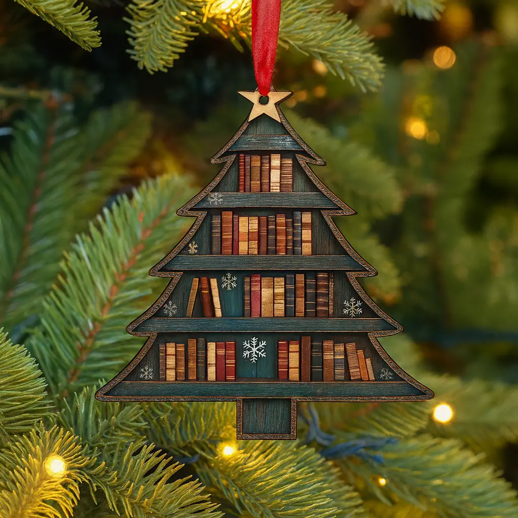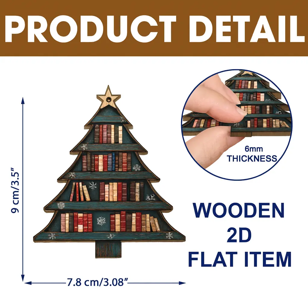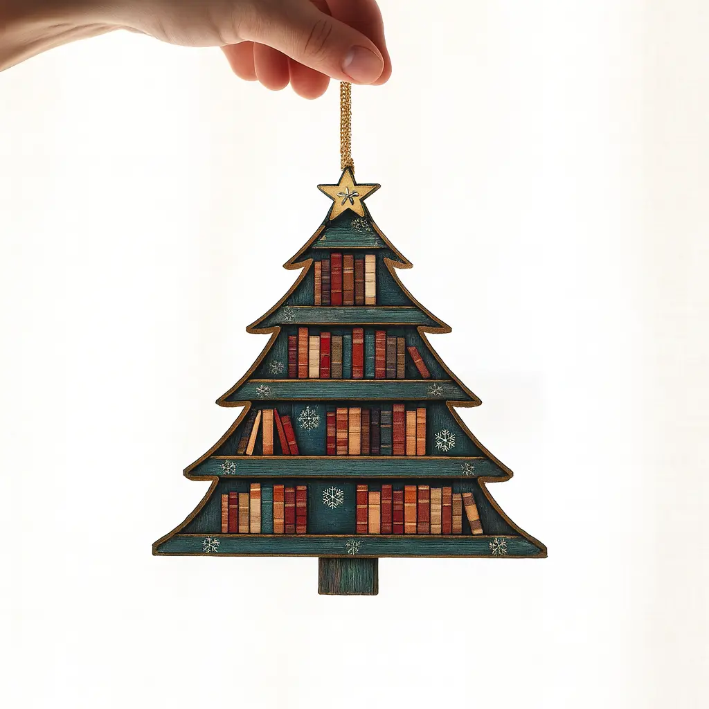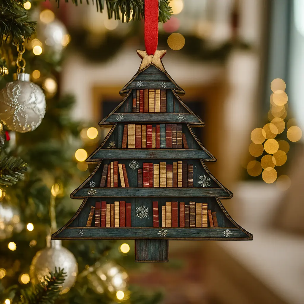 Wooden Book Tree Ornament | Book Lover Christmas Gift | Bookish Decor for Reader, Librarian | Book Club, Book Exchange Keepsake